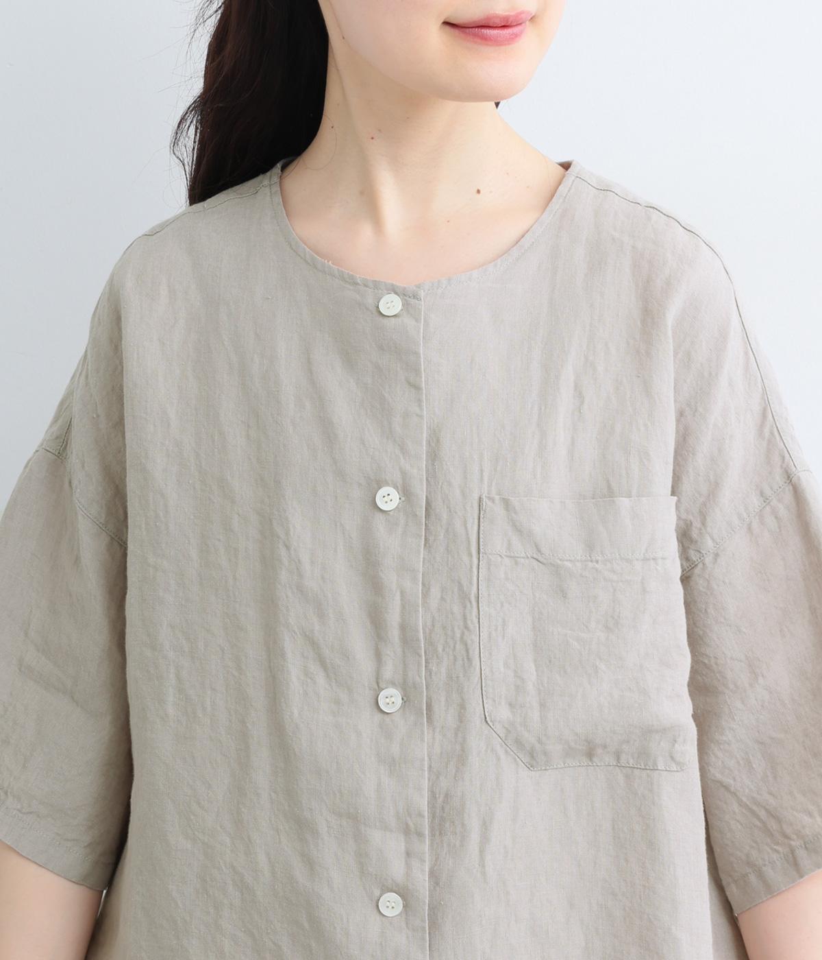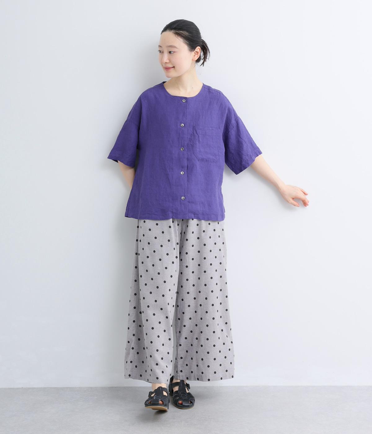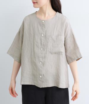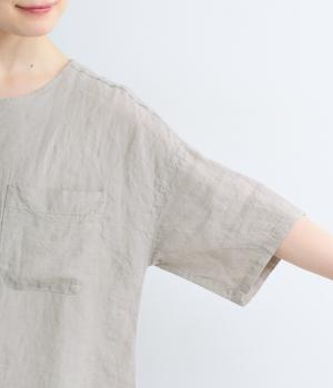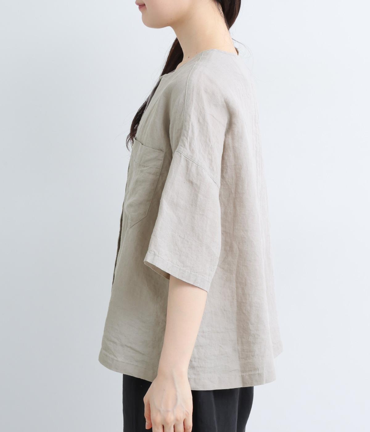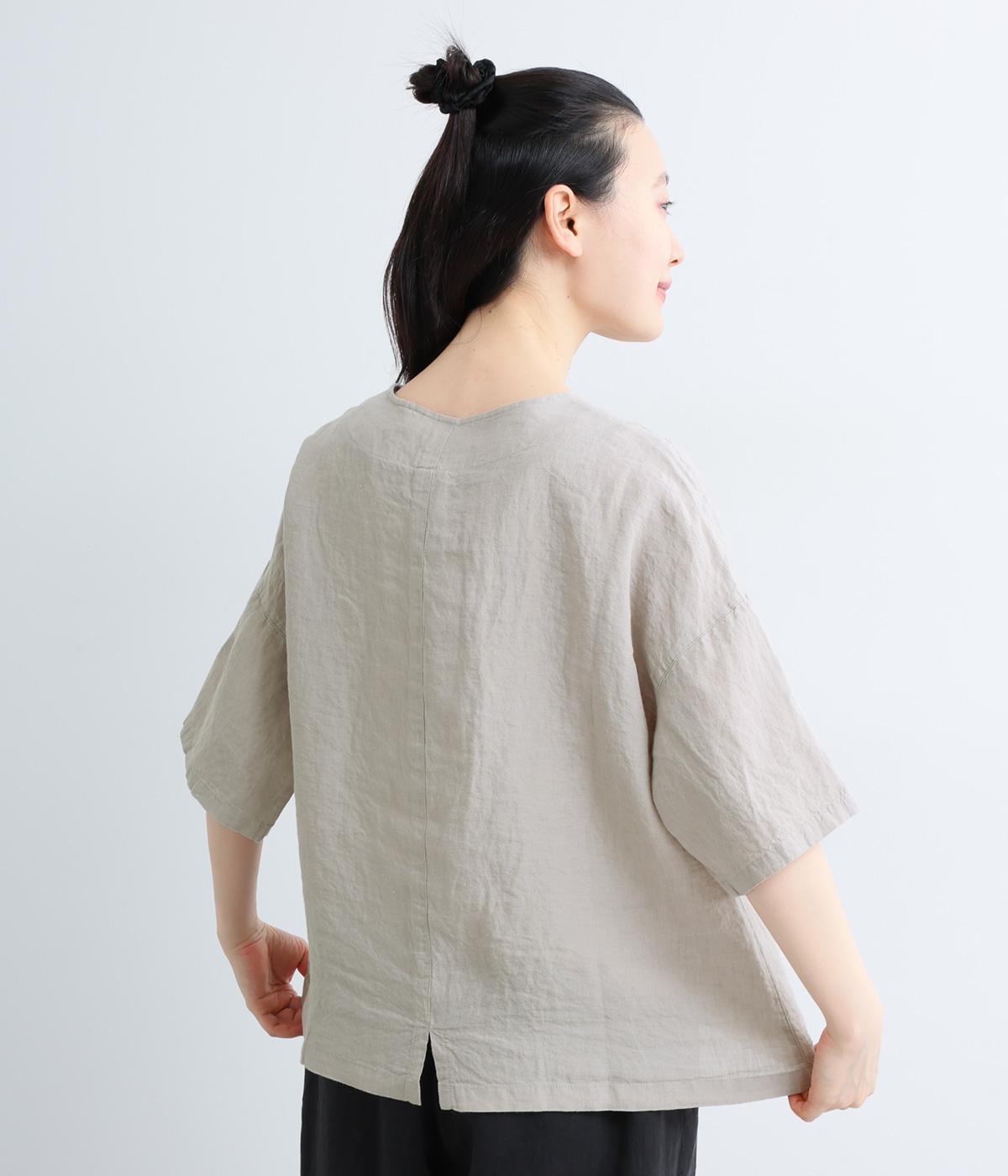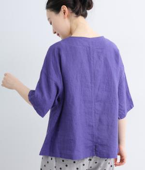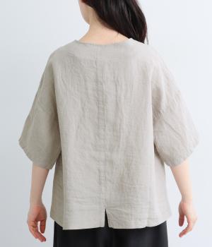 コットンリネン 後ろギャザー7分袖ブラウス