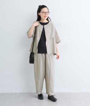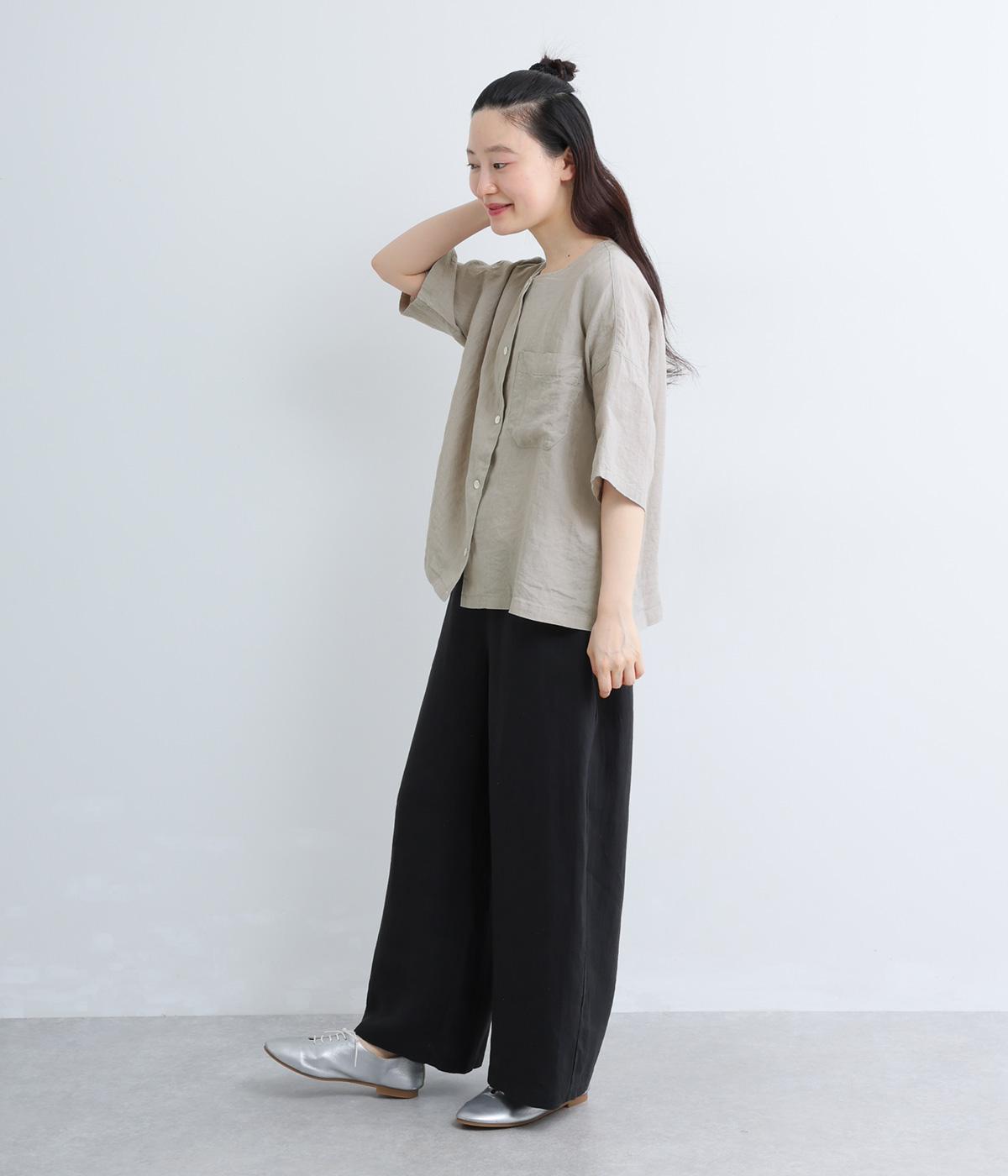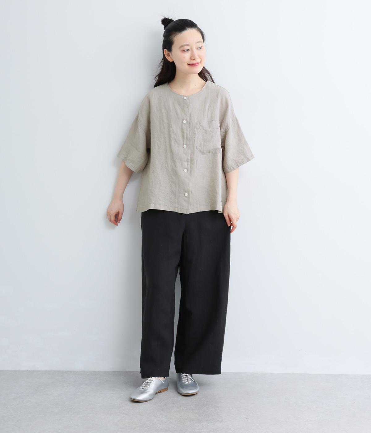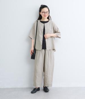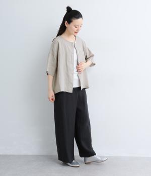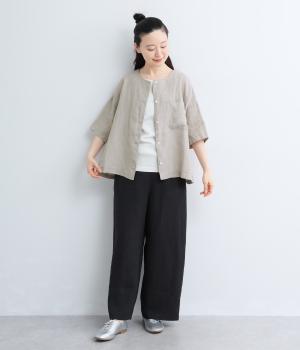 フレンチリネン ウエストデザインパンツ(ブラック)