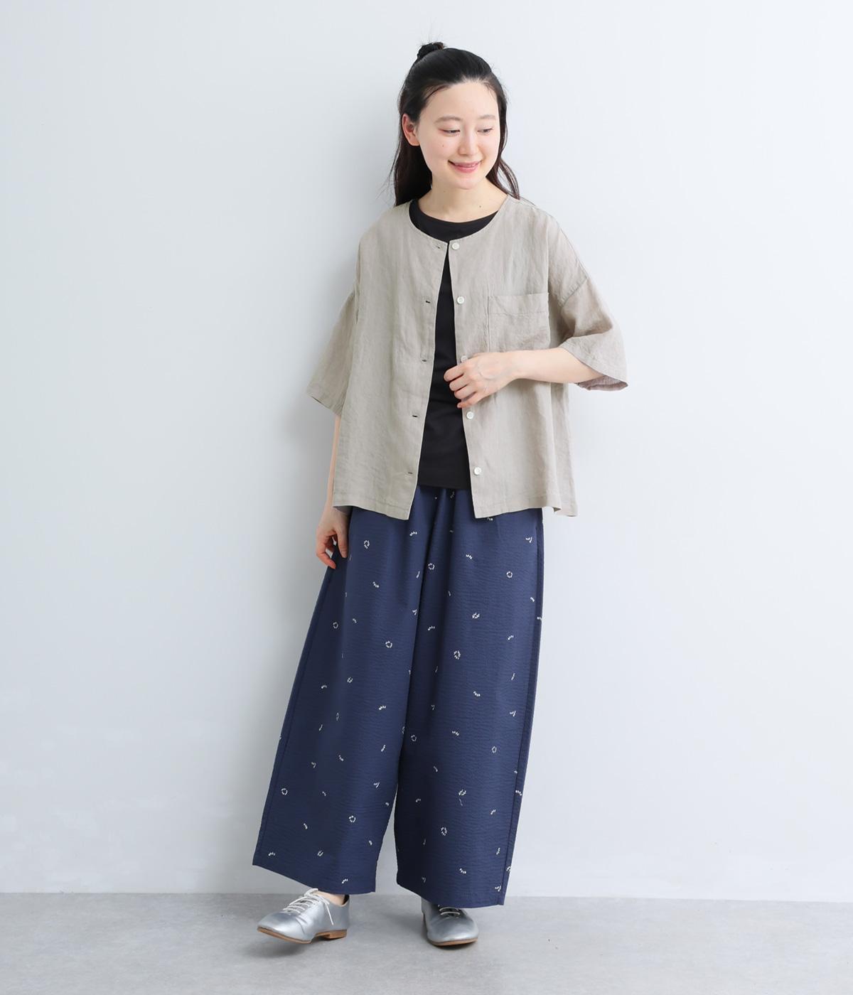 コットン柄アソート ヨーク刺繍7分袖ブラウス