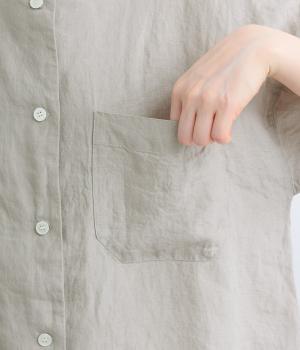リネンコットンデニムフード付き前あきブラウス