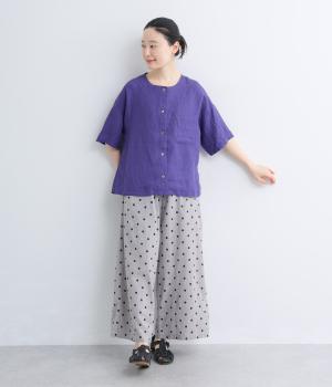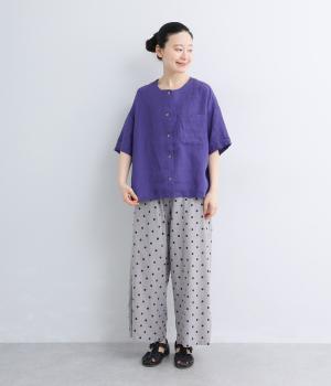 先染めコットン裾ゴム入り前あきブラウス