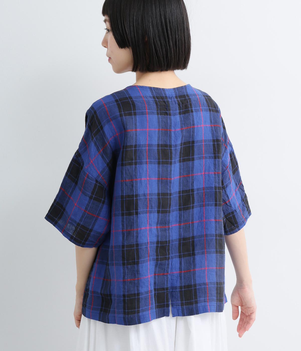 コットンリネンレーヨンチェック柄ブラウス