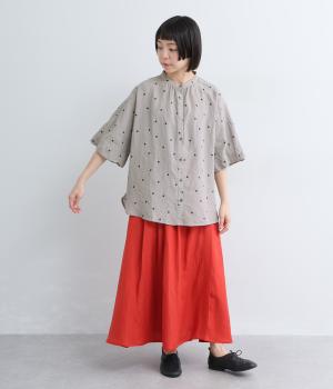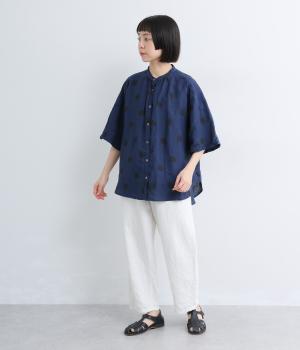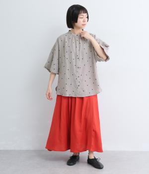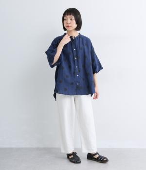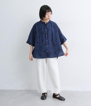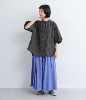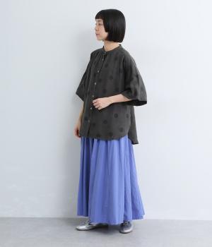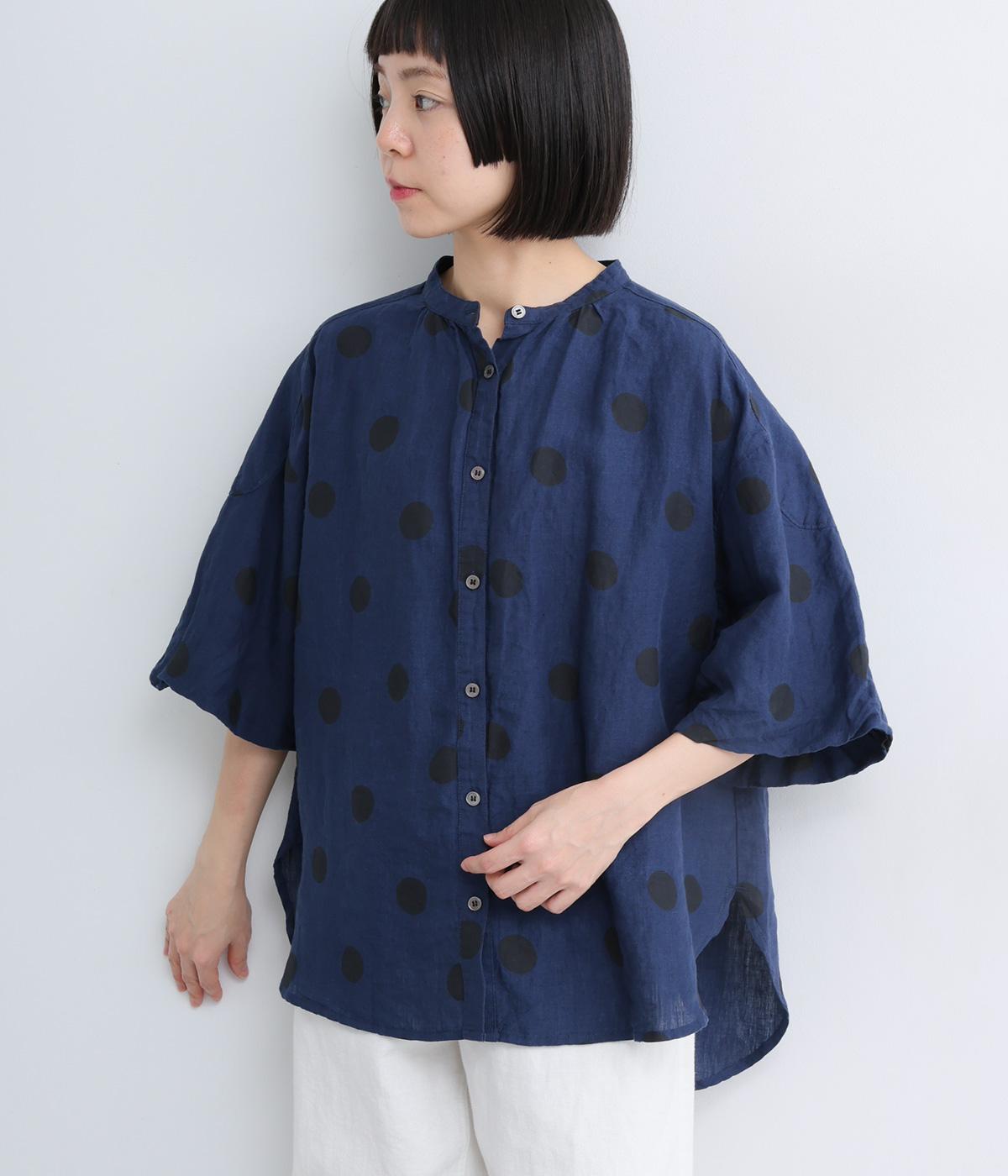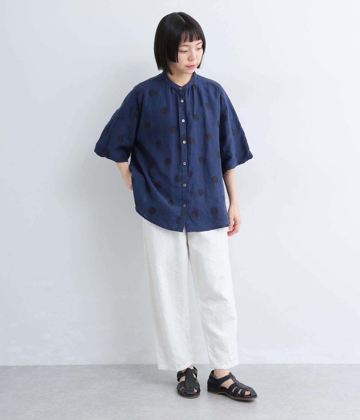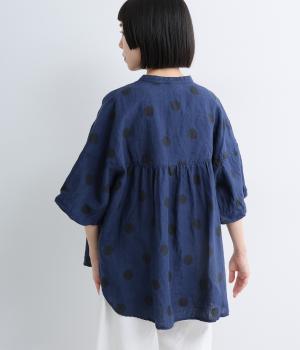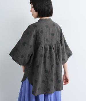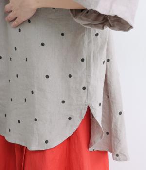 【cloudnine pure】リネンランダムドットプリント バルーン袖ブラウス