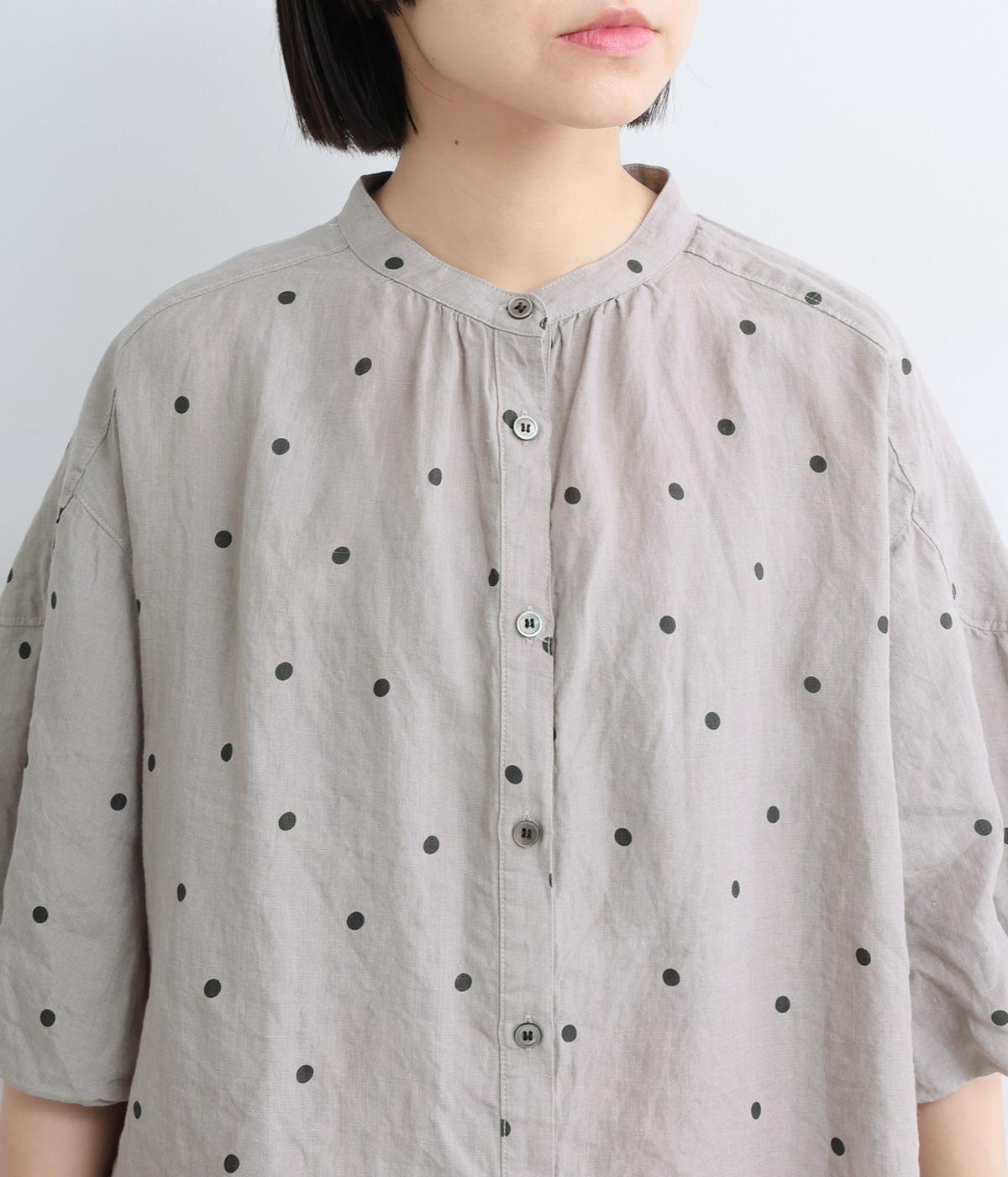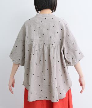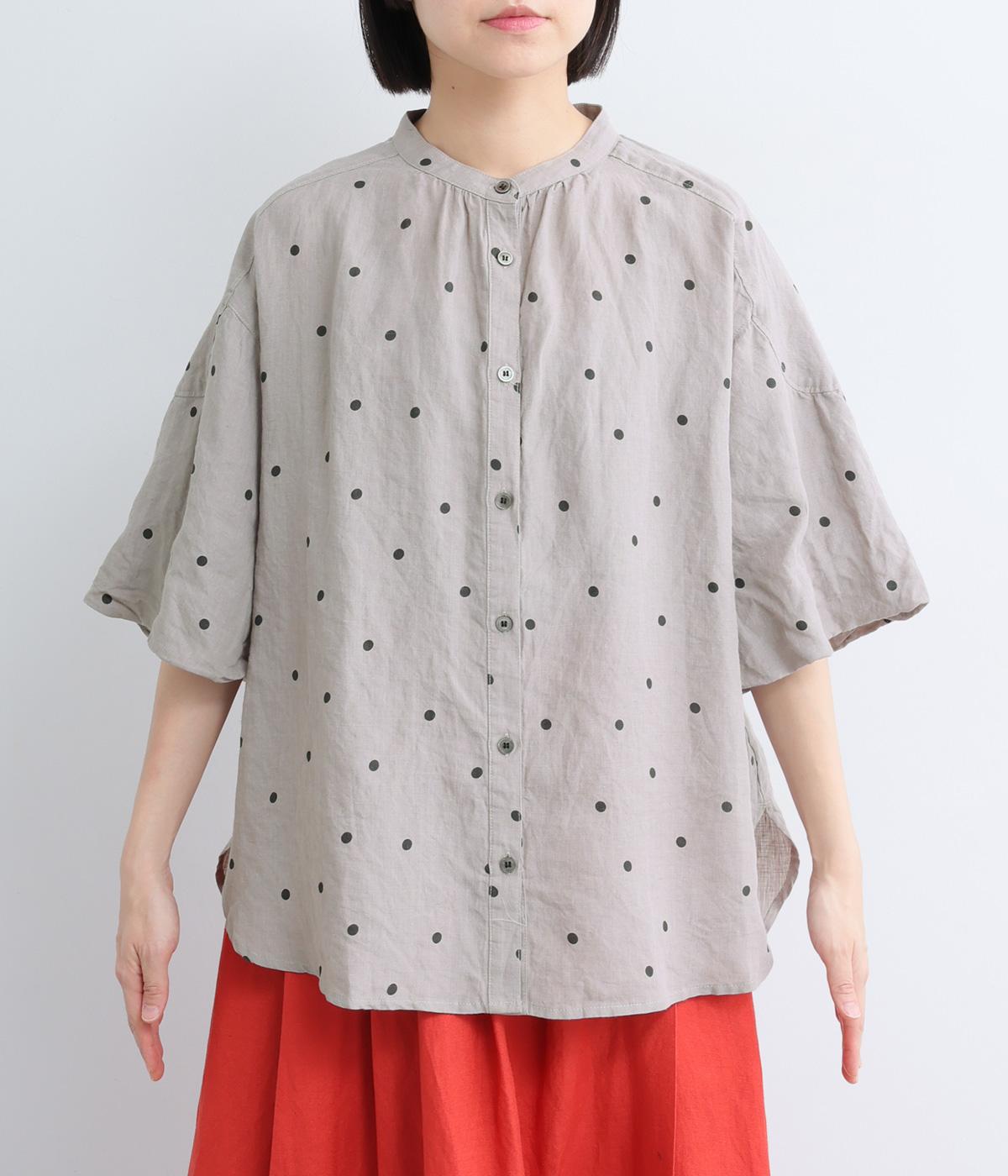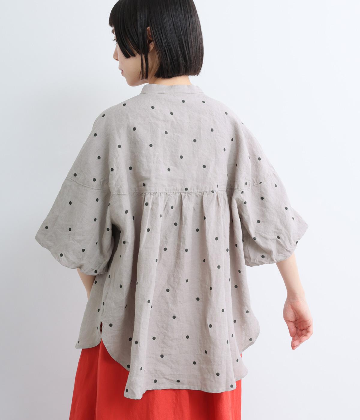 【cloudnine pure】リネンランダムドットプリント バルーン袖ブラウス(グレー-F)