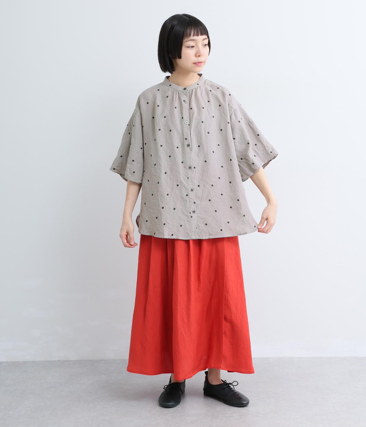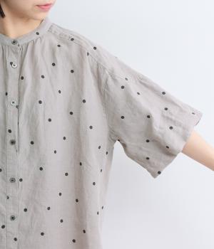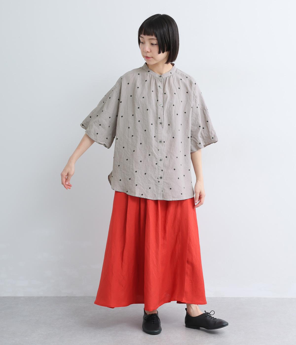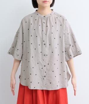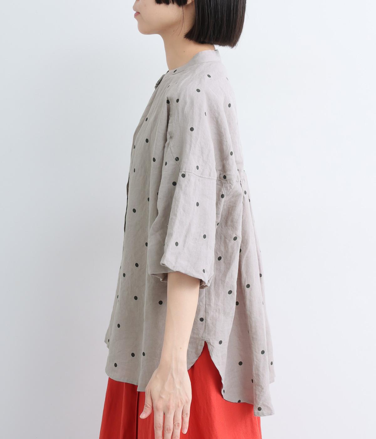 【cloudnine pure】リネンランダムドットプリント バルーン袖ブラウス(グレー-F)