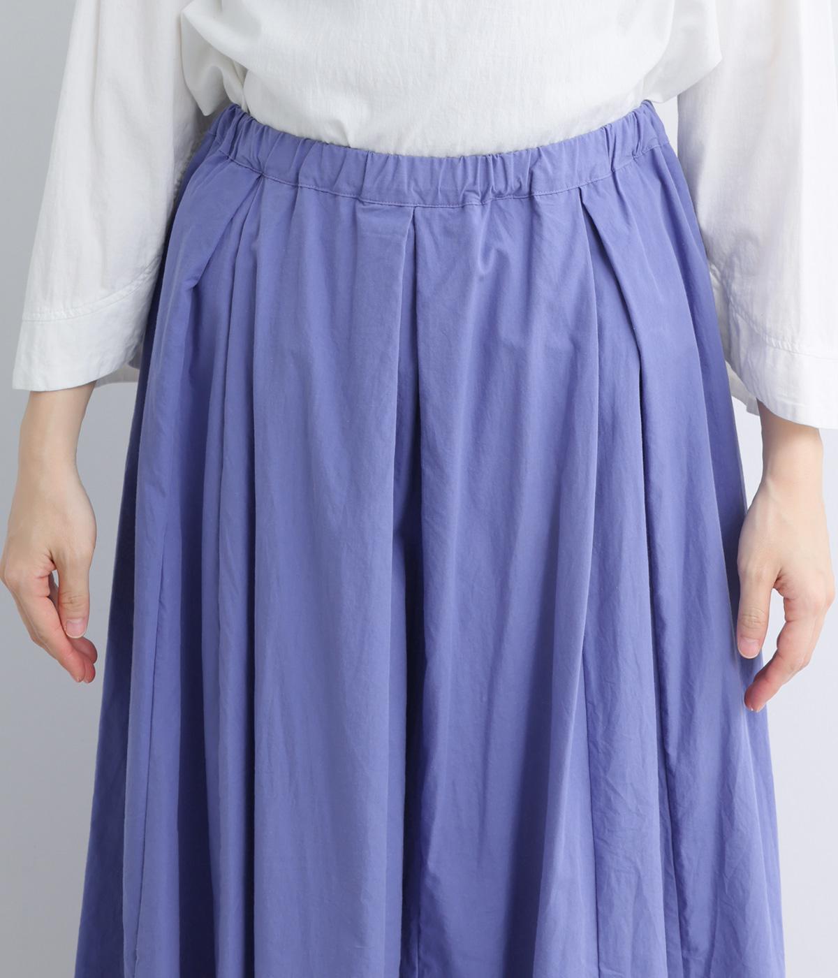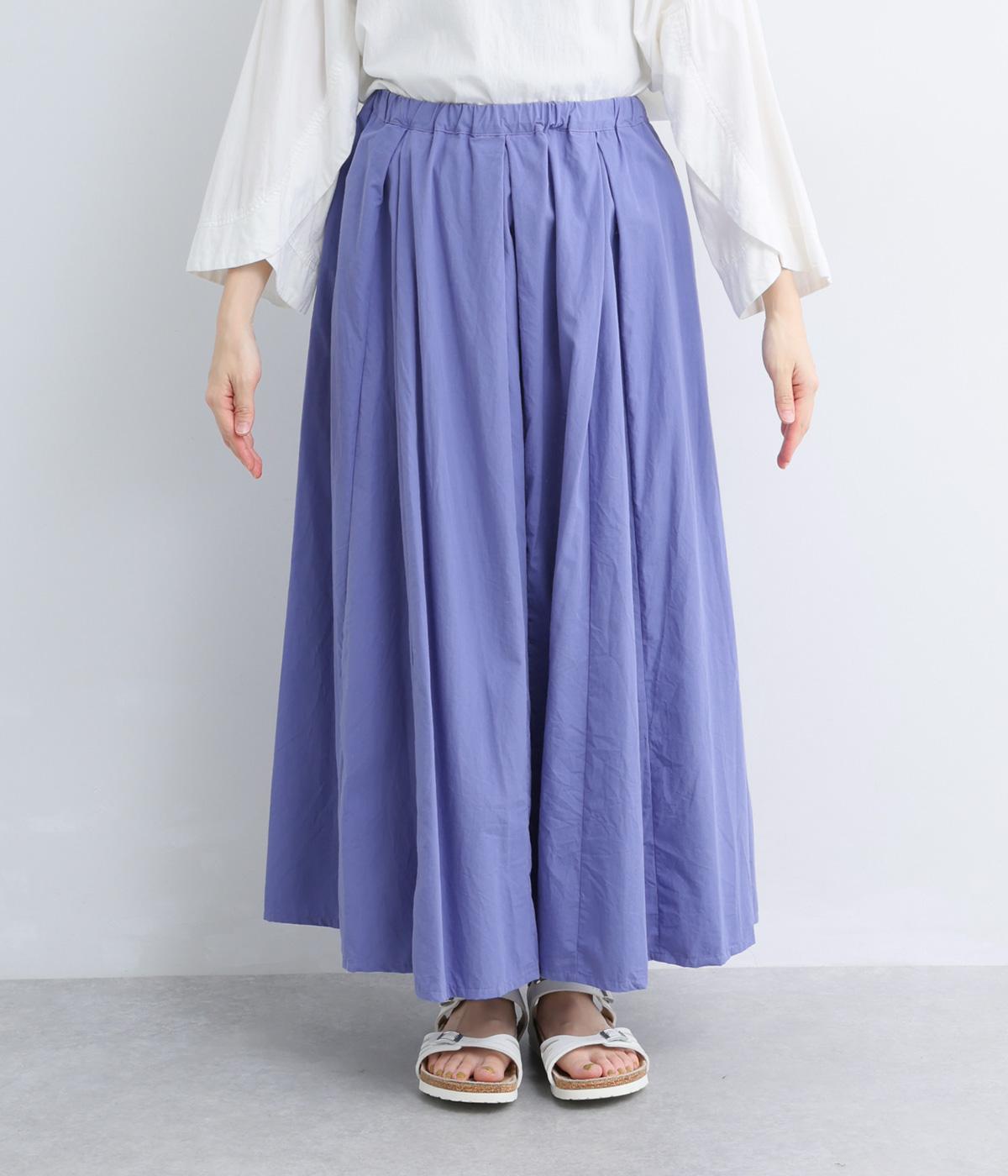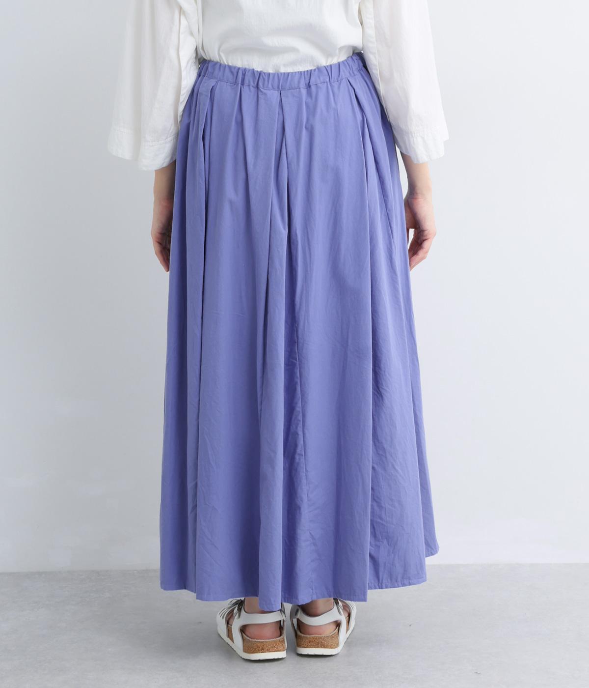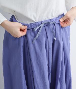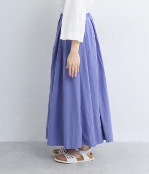 ウエストにたっぷりと施したギャザーが、やわらかな立体感を生み出すロングスカートです。三角マチを入れることで、動きに合わせて裾がふわりと広がり、軽やかなシルエットを描きます。ウエストは総ゴム仕様で快適なはき心地に。カジュアルにもフェミニンスタイルにも合わせやすい、万能な一枚です。