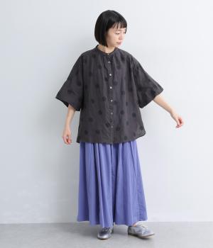 高密度に織られたコットンブロードは、なめらかさとほどよいハリをあわせ持つ素材です。やわらかくしなやかな風合いに、ほんのりとしたシワが加わり、奥行きのある表情に。空気をふくむように軽やかで、汗ばむ季節も快適な着用感を叶えます。