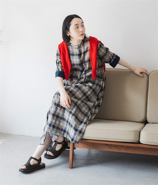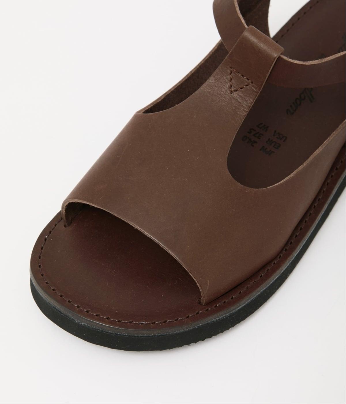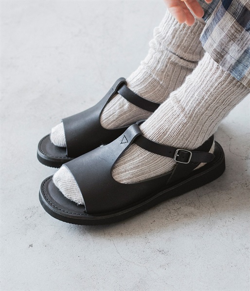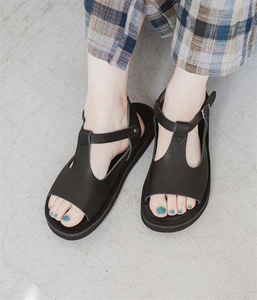 足元を印象的に演出するTストラップ仕様。足をしっかりとホールドしてくれるので歩きやすくなっています。ソールが発泡ラバーなのでボリュームがありつつも軽い仕上がり。素足ではくのはもちろん、ソックスとコーディネートするのもおすすめです。