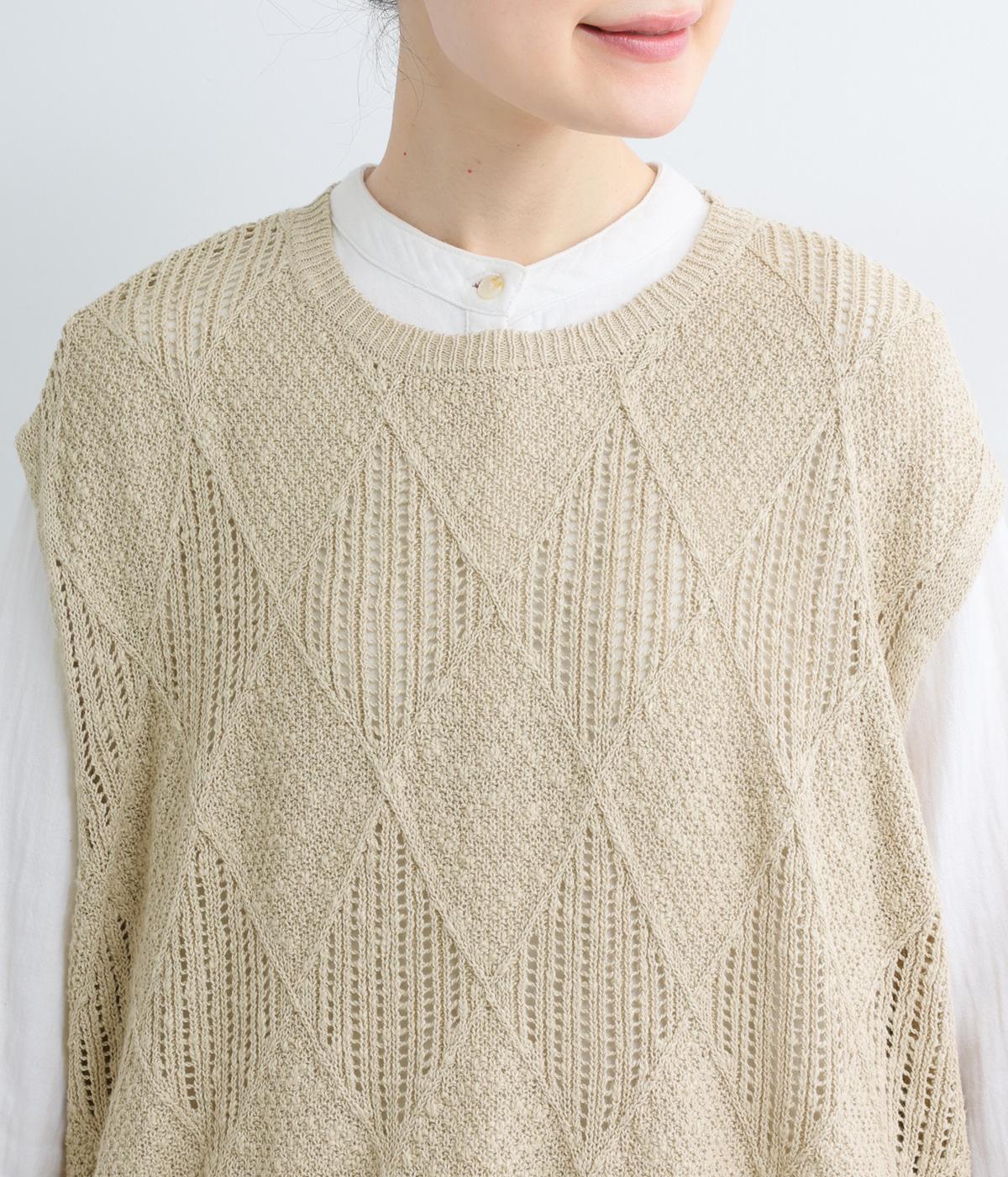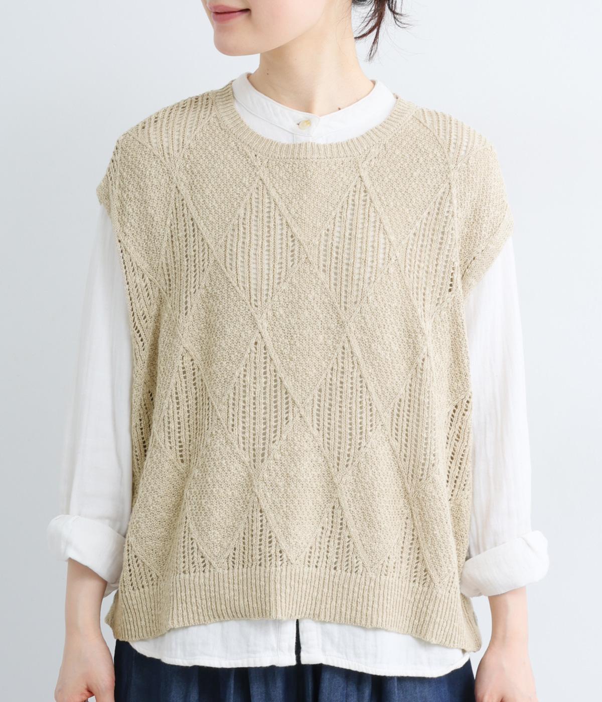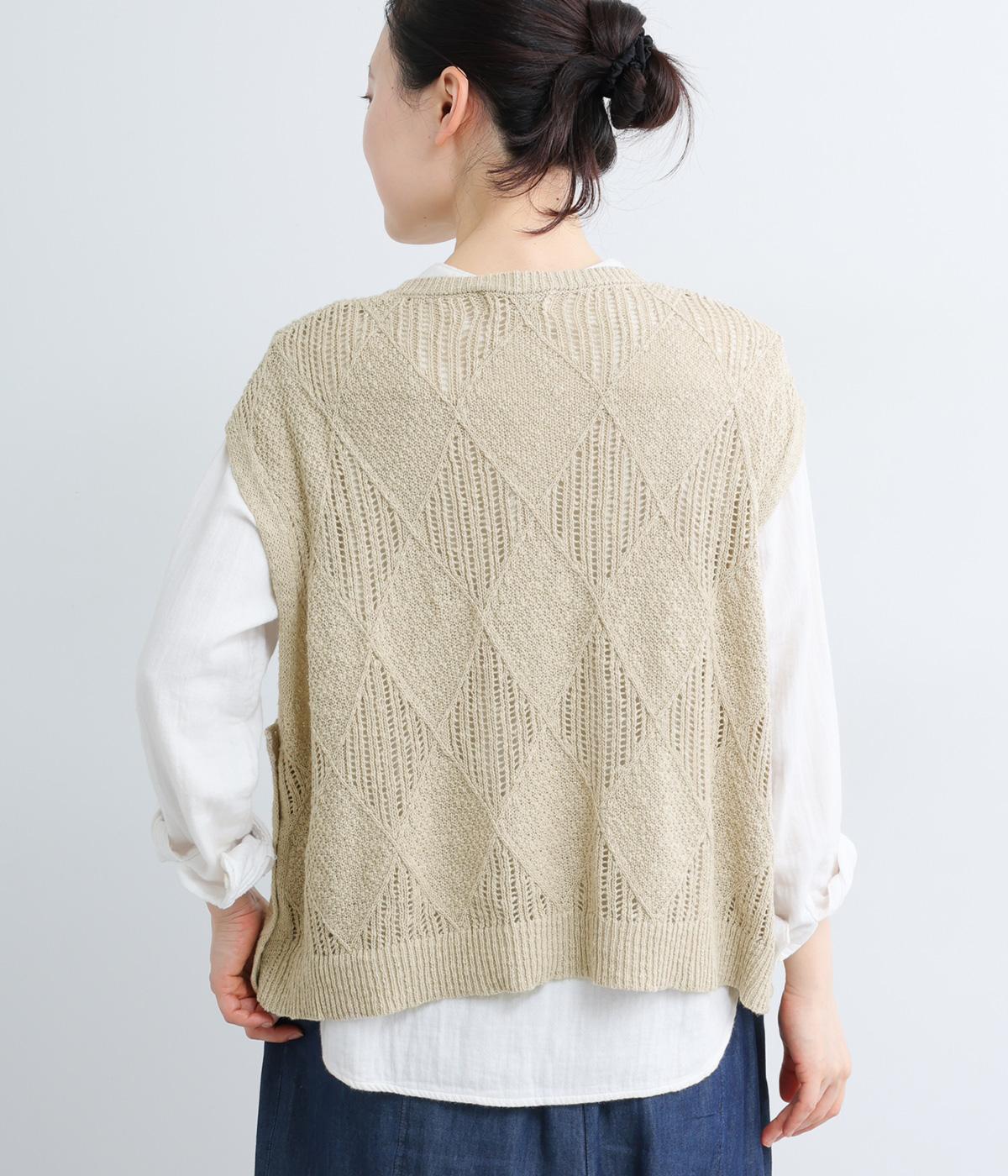 リーフ柄編みニットベスト