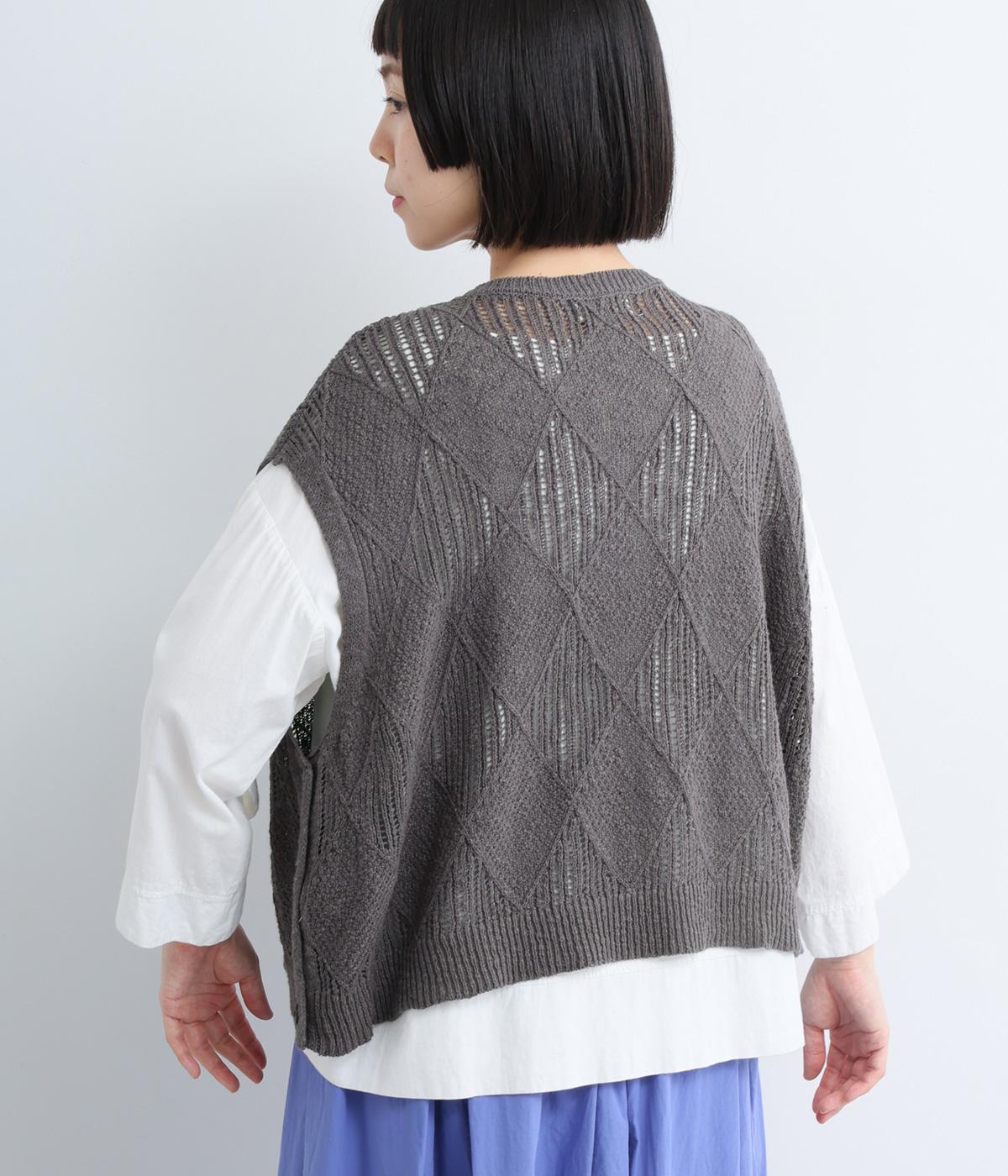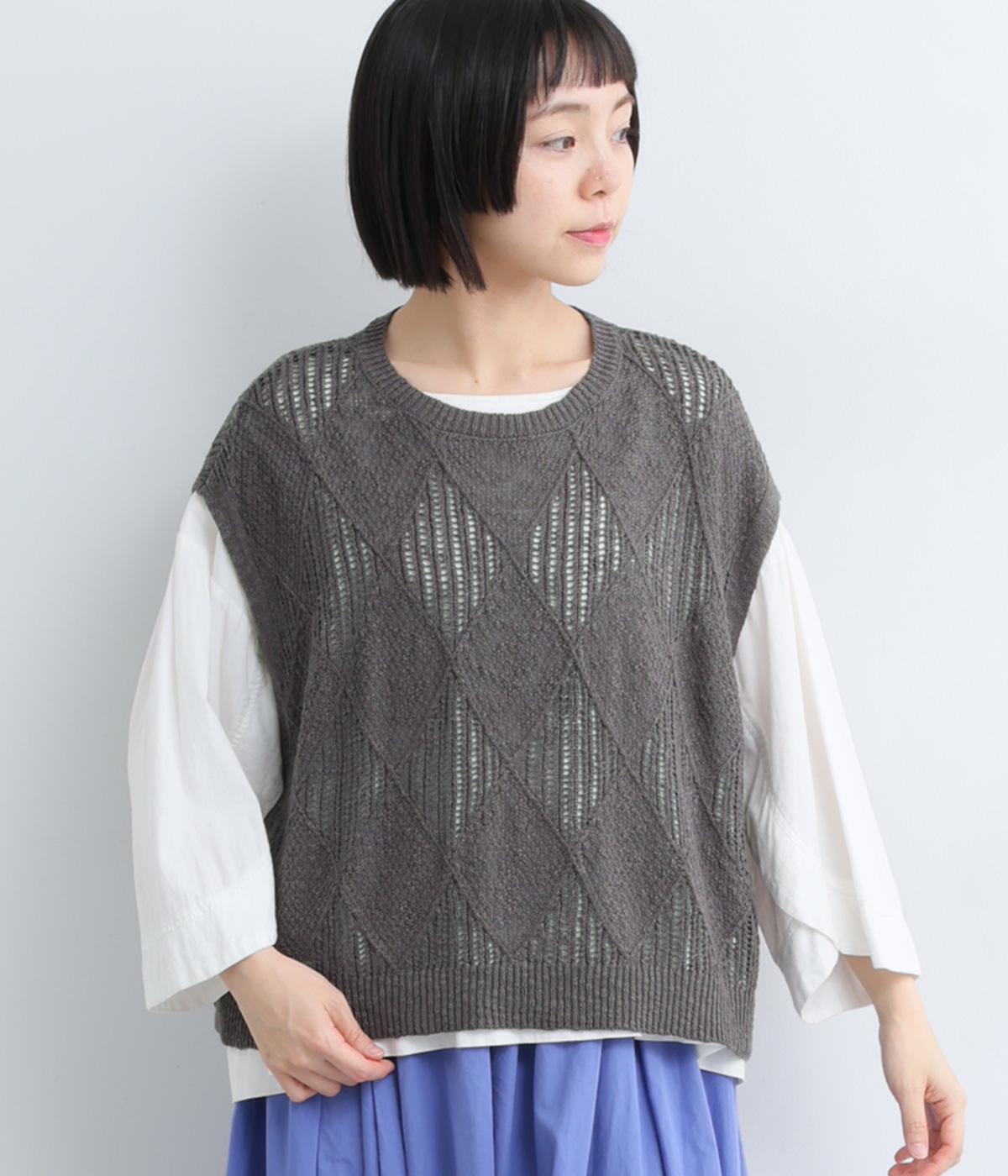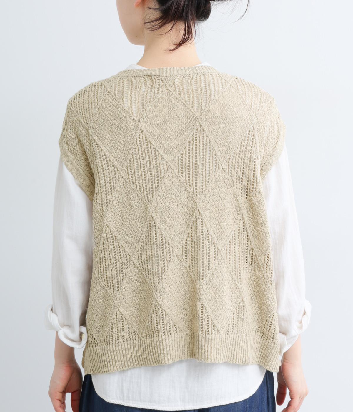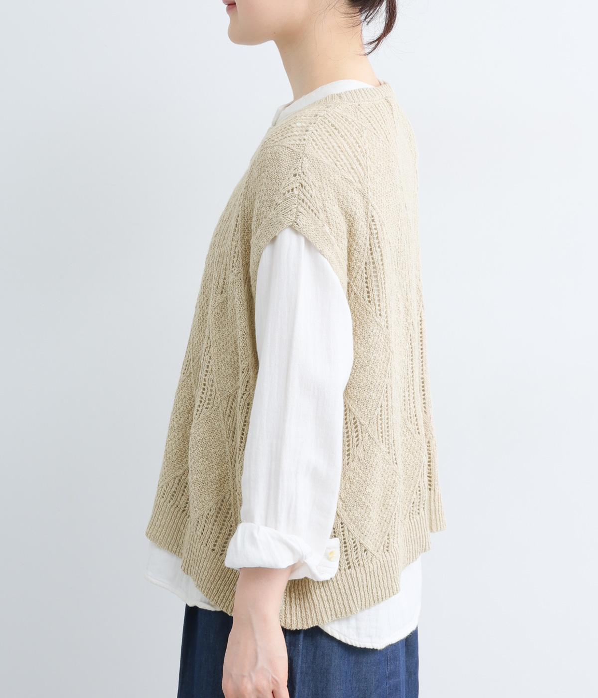 リーフ柄編みニットベスト