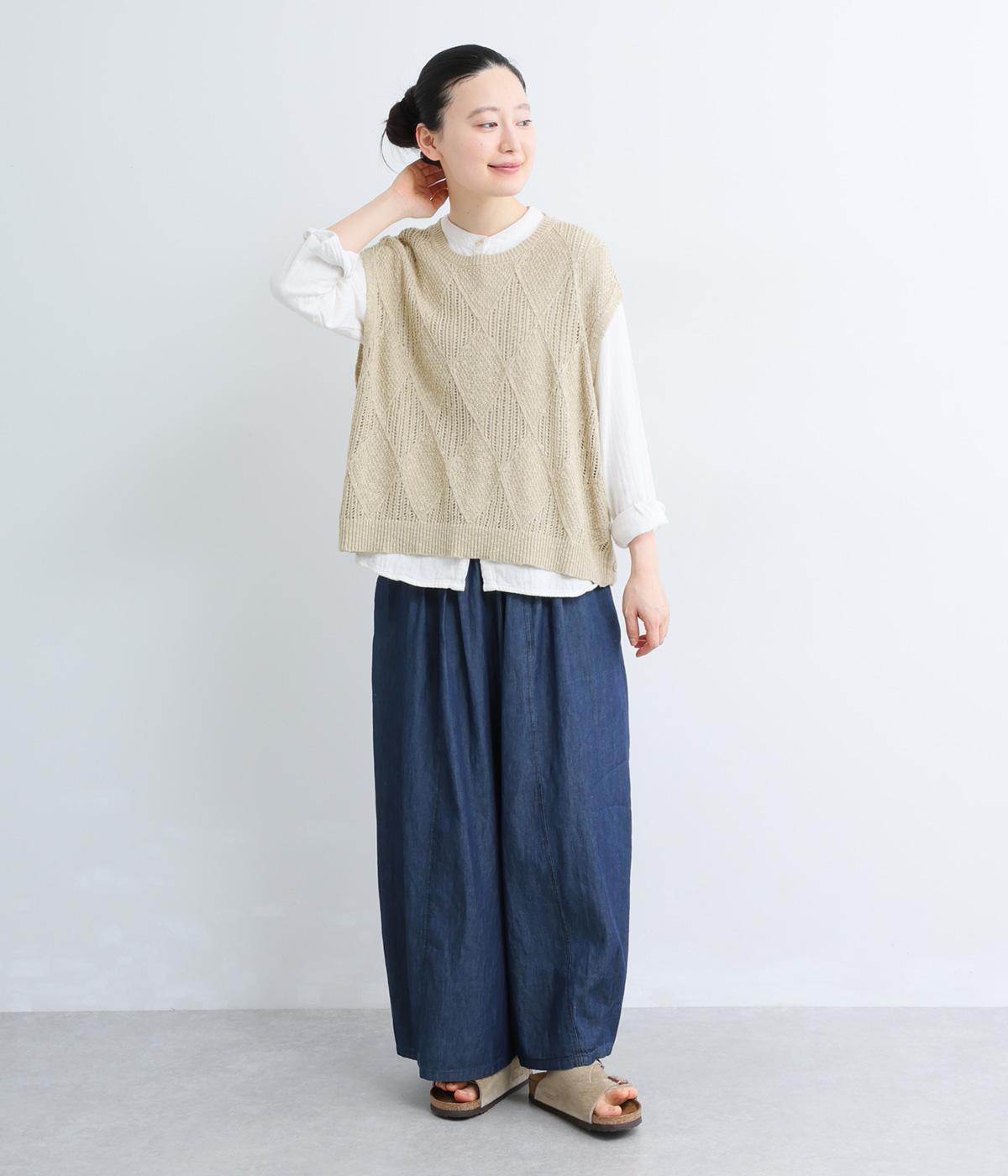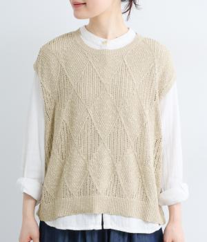 コンニャク加工 コットン透かし編み2wayベスト