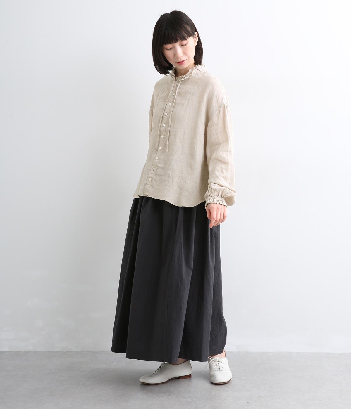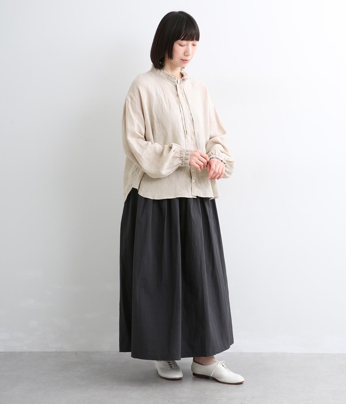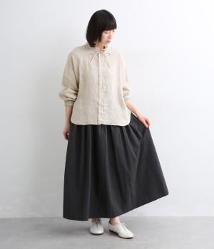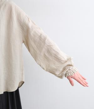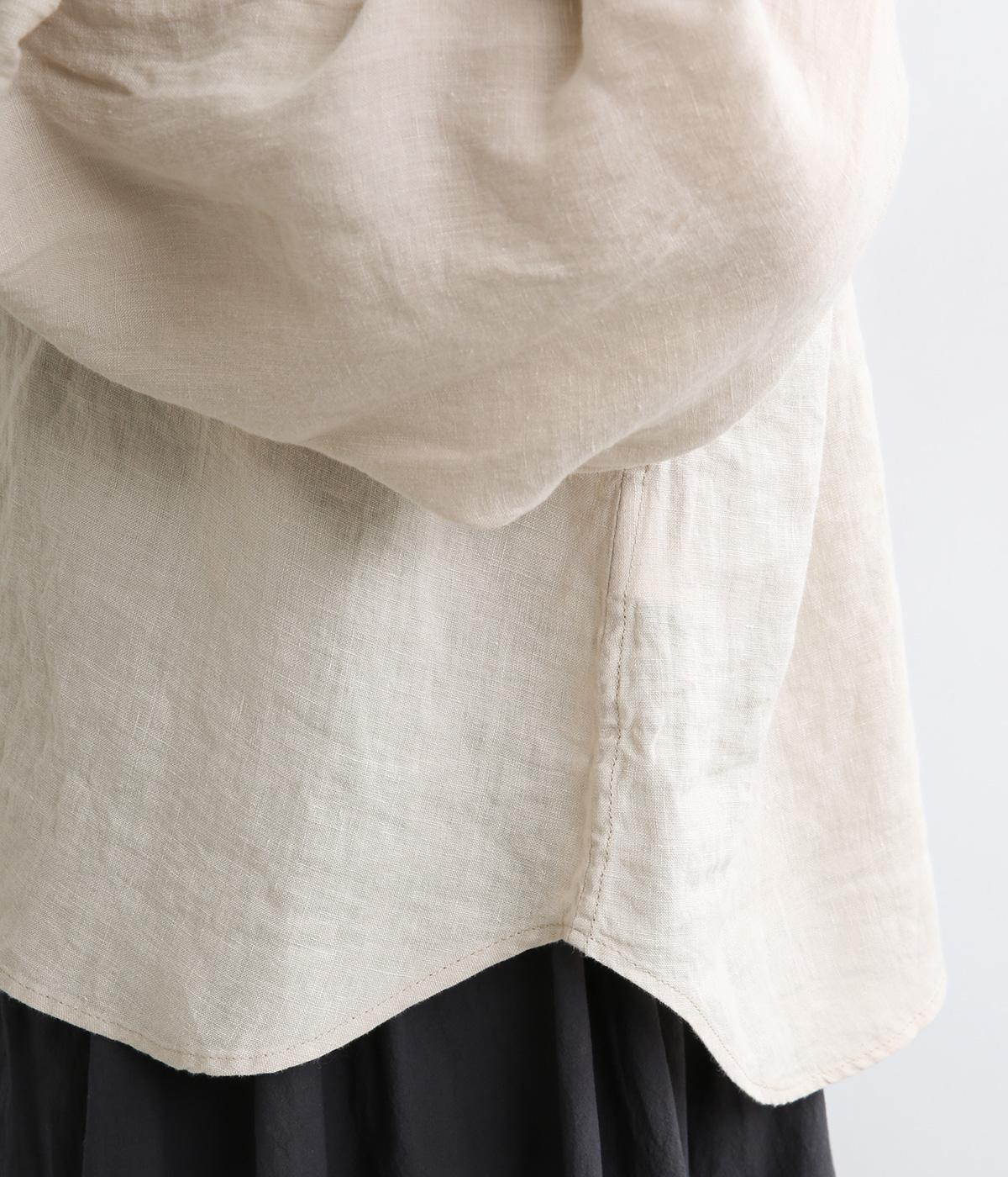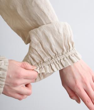 リネンらしいほのかなコシと空気を含むような軽やかさが魅力のリネンキャンバスを採用。薄手でやや透け感があり、肌になじむ繊細なやわらかさが雰囲気のいい仕上がり。