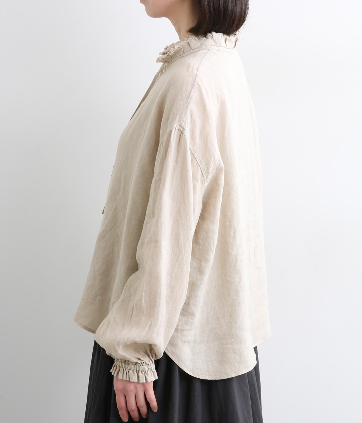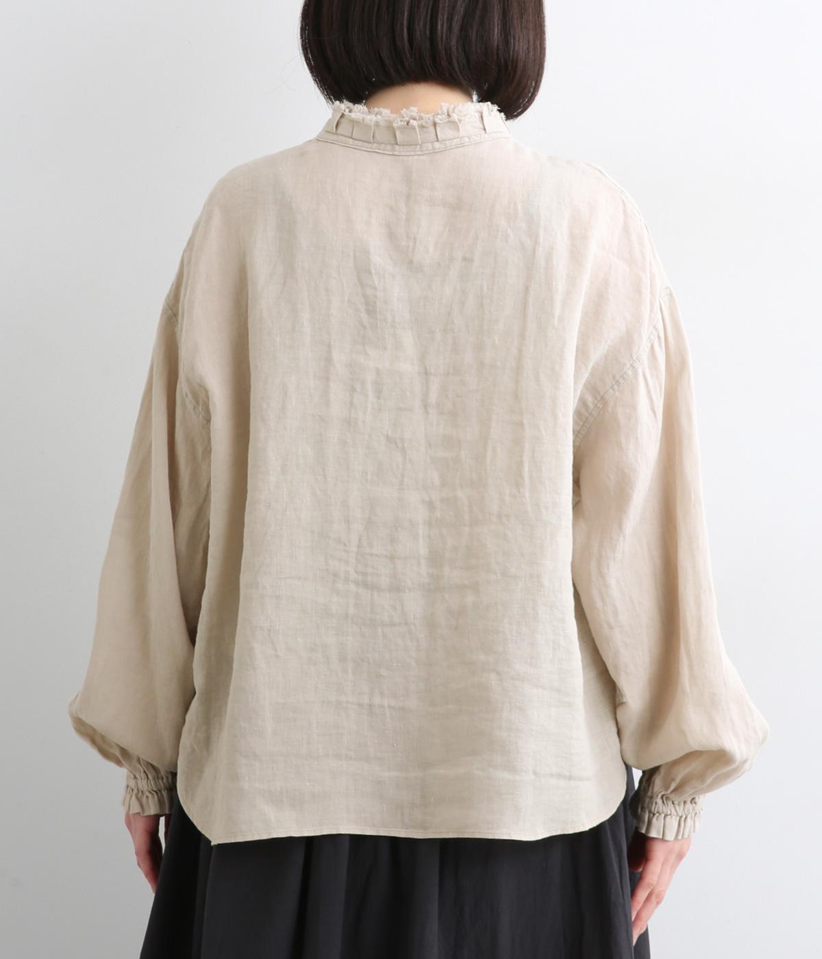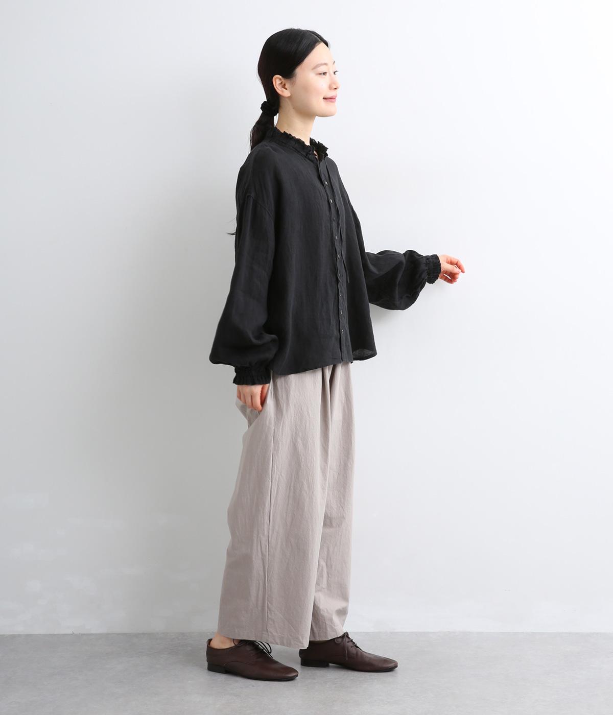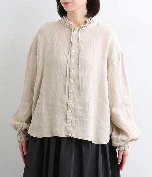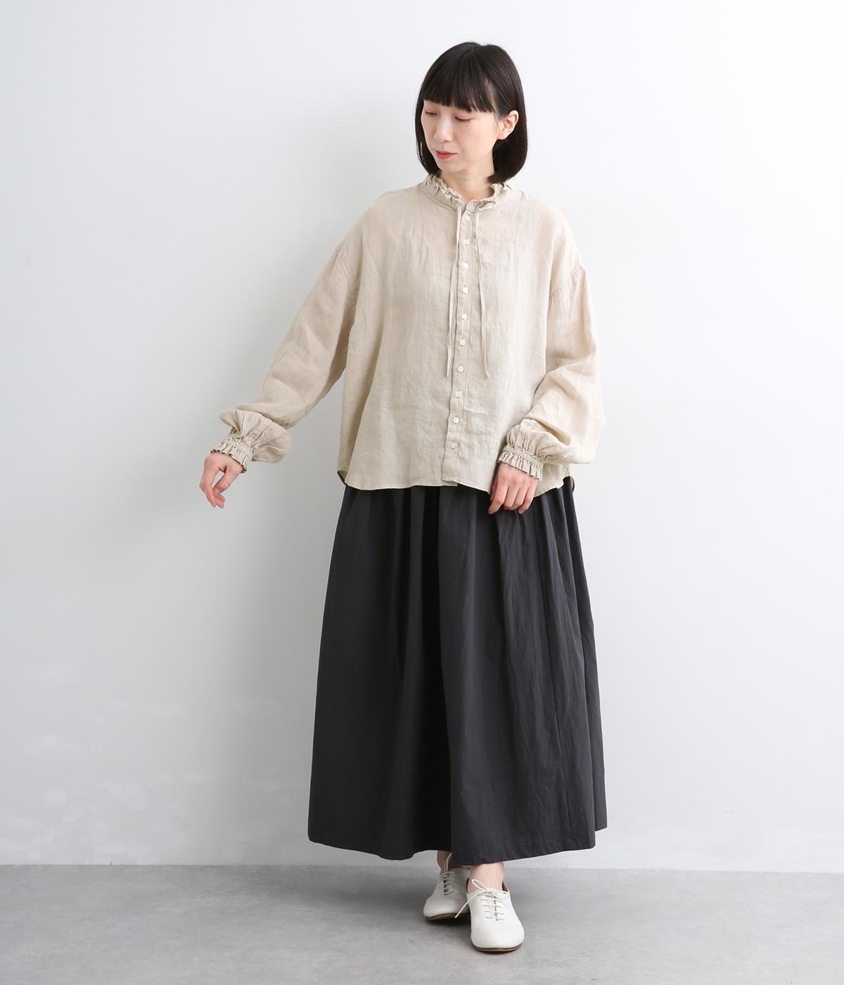 リネンらしいほのかなコシと空気を含むような軽やかさが魅力のリネンキャンバスを採用。薄手でやや透け感があり、肌になじむ繊細なやわらかさが雰囲気のいい仕上がり。