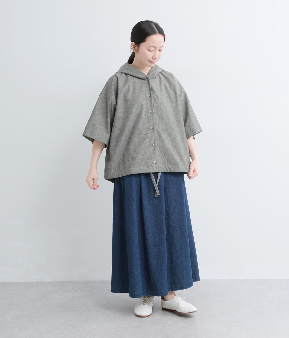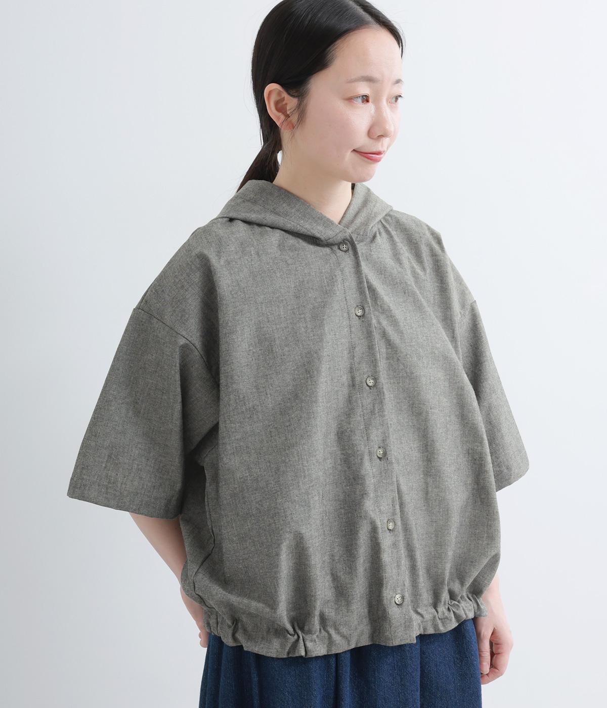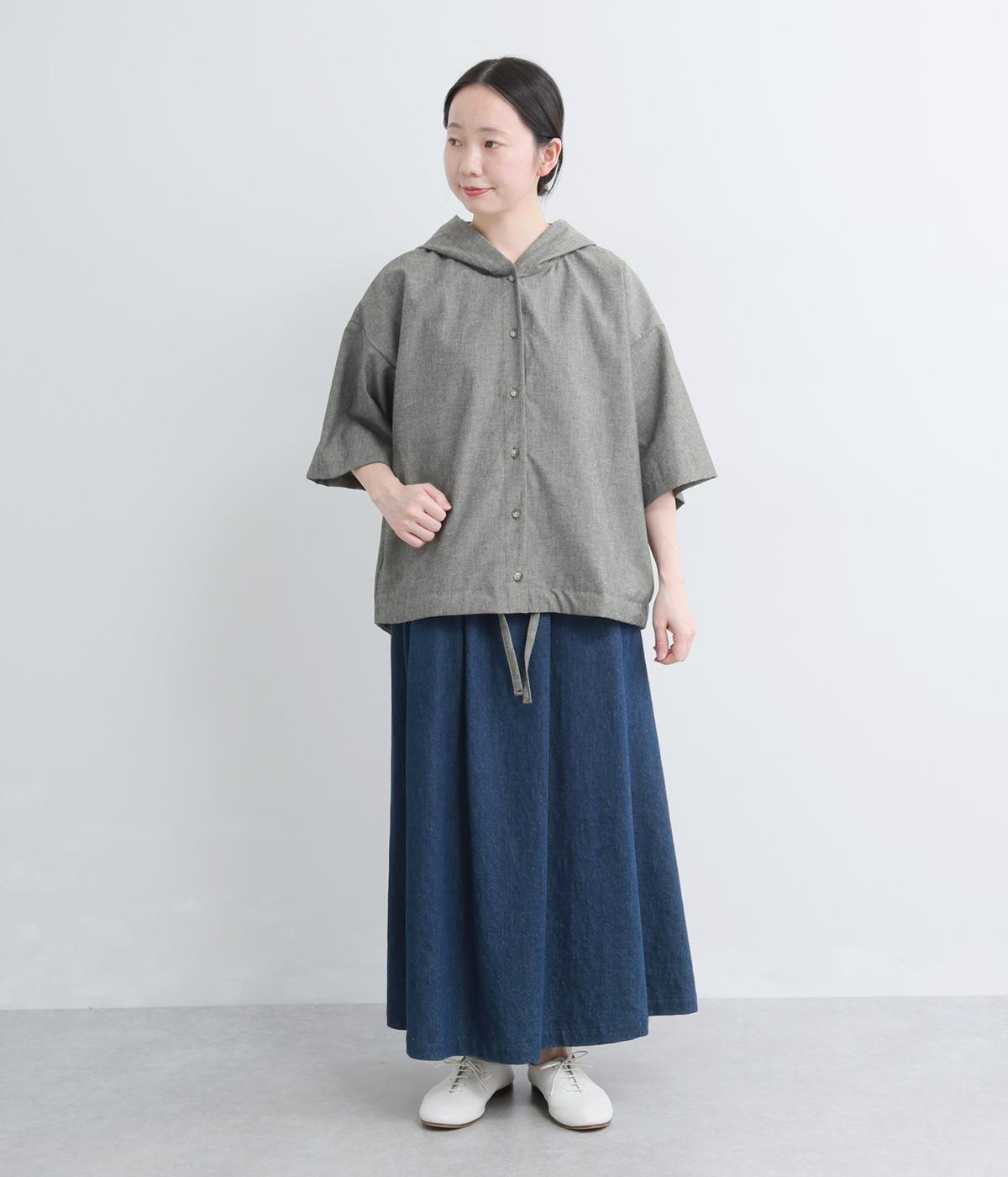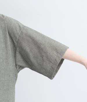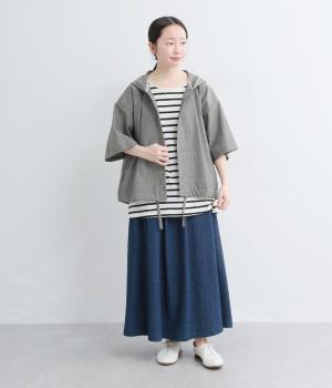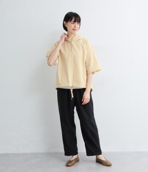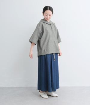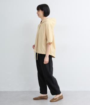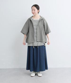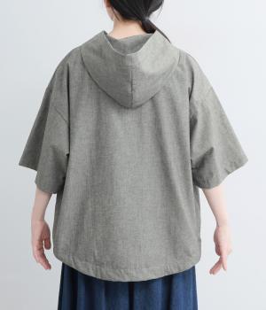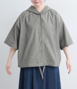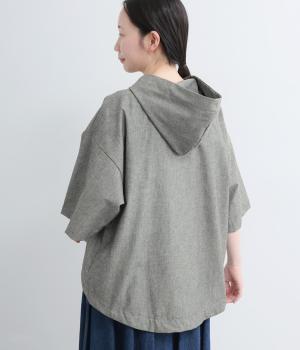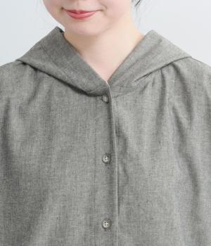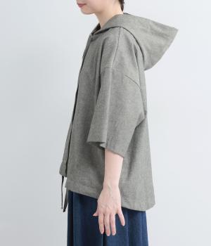 9番手洗いざらしリネン フード付きスコッチ釦テールジャケット
