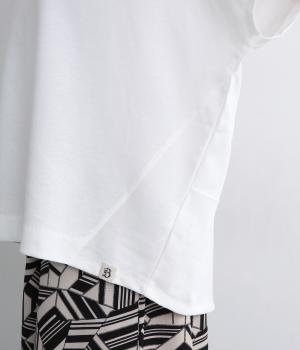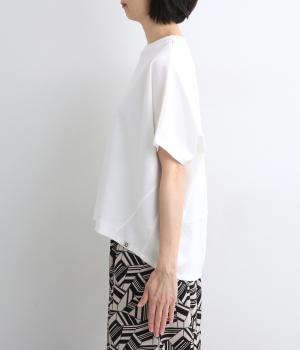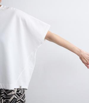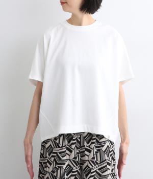 切り替えや曲線を使い立体感を作りだした構築的なデザインのTシャツです。着丈は前後差をつけて丸みを持たせ、包み込むようなシルエットに。流れるようなサイドラインも美しく、カジュアルながらも大人顔な仕上がりで、定番Tシャツも新鮮見え。