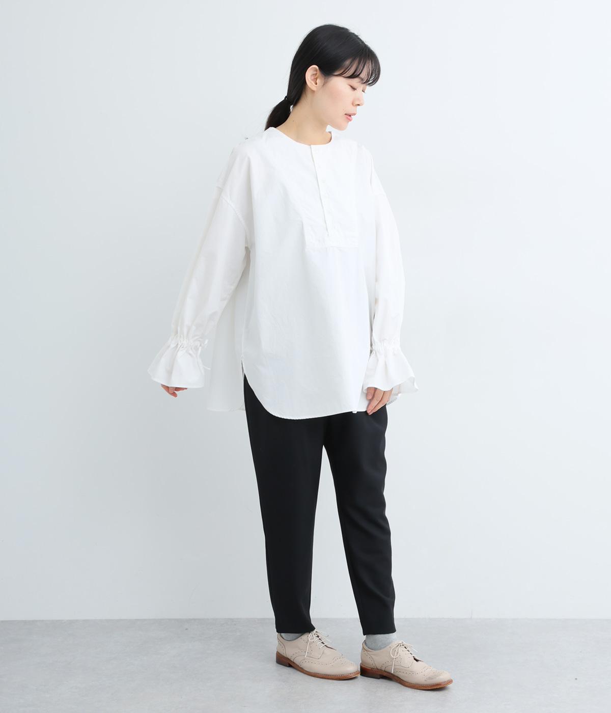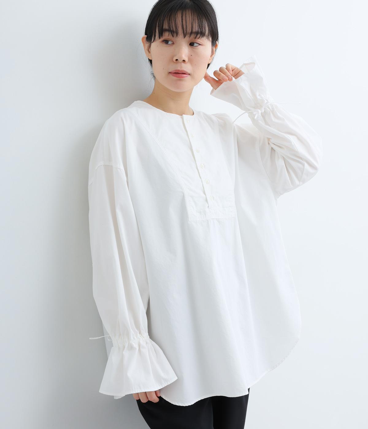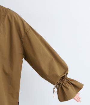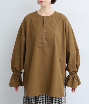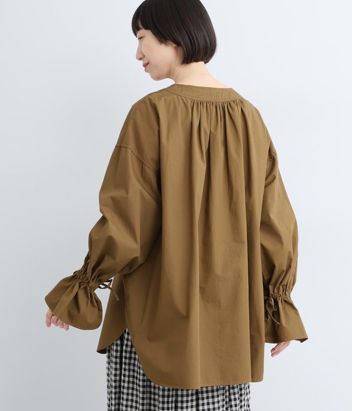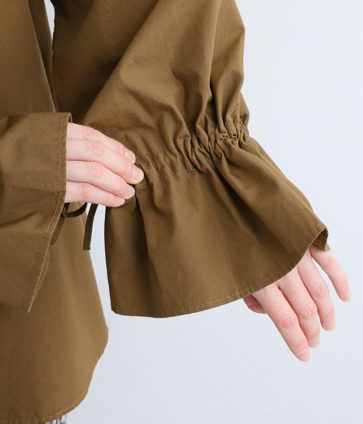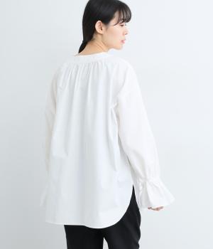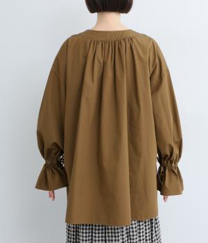 袖のデザインが特徴的なマンシュデコールシャツです。袖をクシュッと絞ることで、フリルのようなボリューム感が楽しめます。フロントのボタンやゆとりのあるシルエット、スリット入りの裾など、どこから見ても絵になる1枚です。