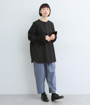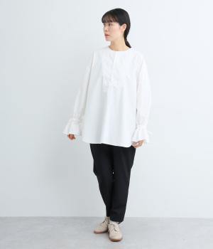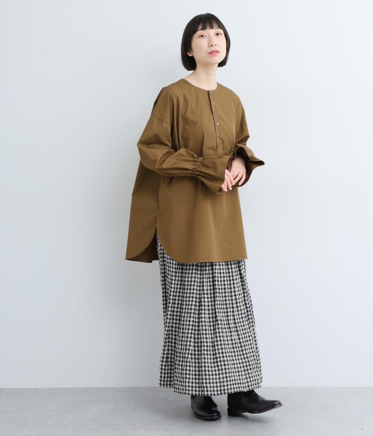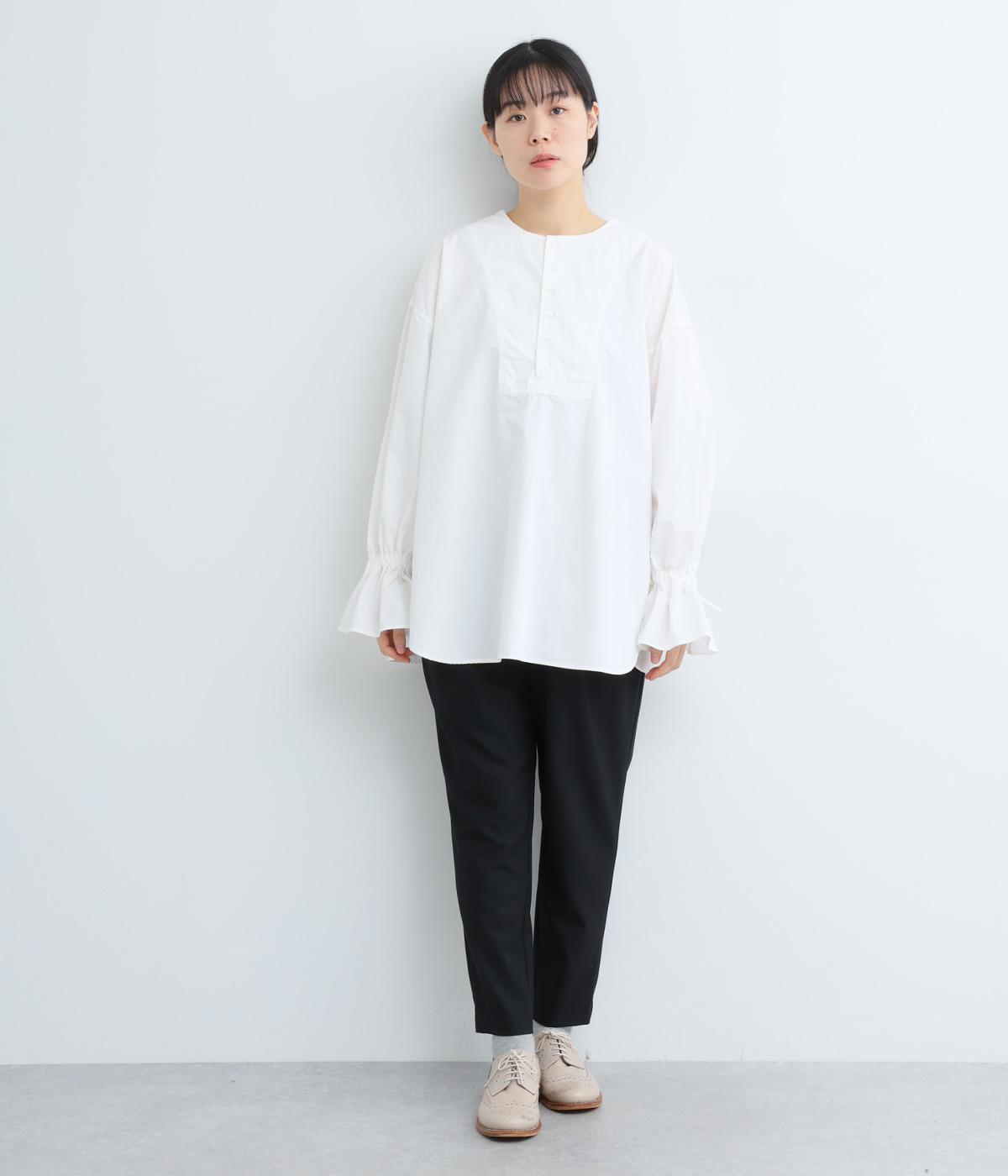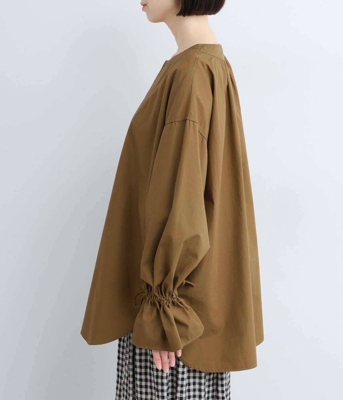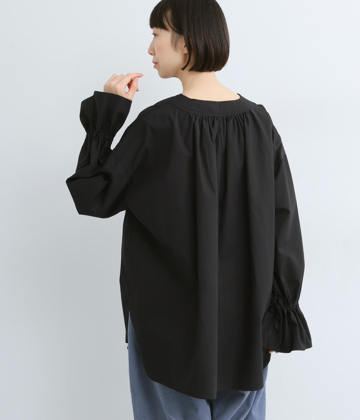 袖のデザインが特徴的なマンシュデコールシャツです。袖をクシュッと絞ることで、フリルのようなボリューム感が楽しめます。フロントのボタンやゆとりのあるシルエット、スリット入りの裾など、どこから見ても絵になる1枚です。