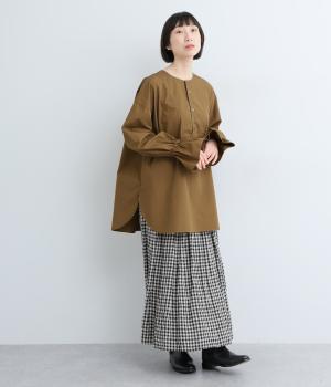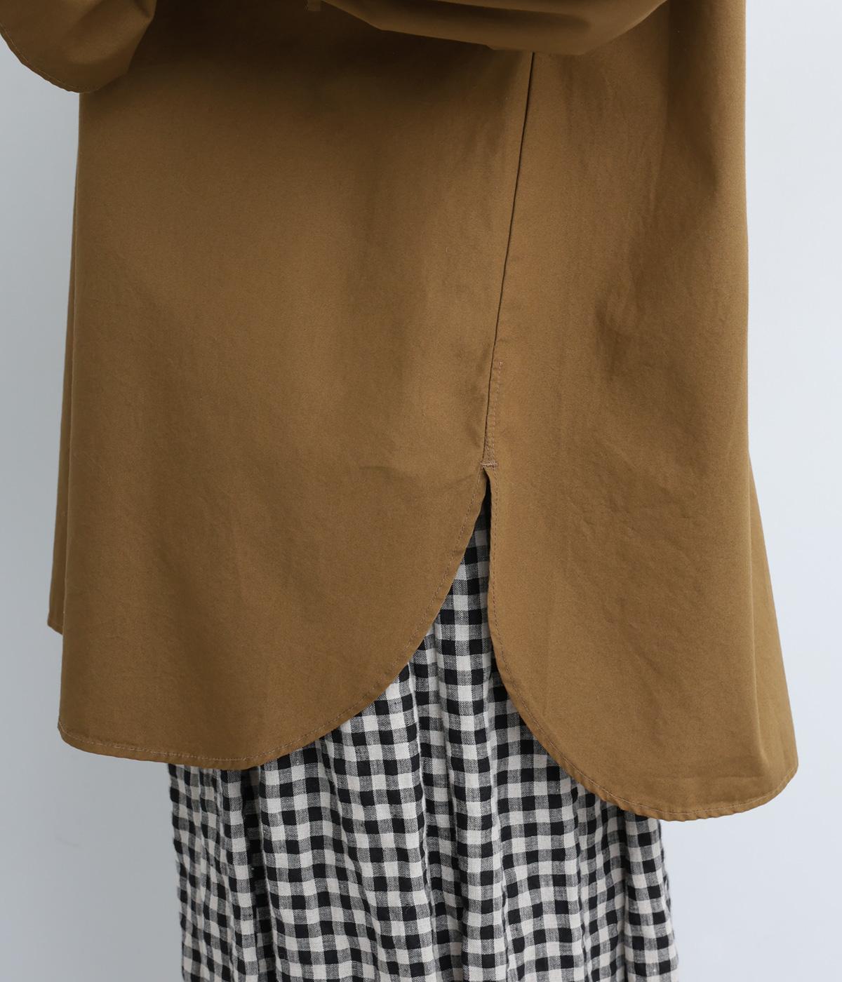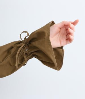 しっかりとしたハリのあるコットンウェザーを使用。丈夫ながらも軽やかで扱いやすい素材です。天然素材ならではの、着るほどになじむナチュラルな風合いです。