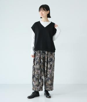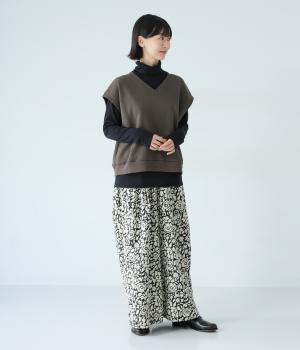 肩先をおおうゆったりとした身幅がポイントの裏毛ベスト。抜け感のあるVネックが顔まわりをすっきりと見せてくれます。無駄のないシンプルなデザインで、大人らしいこなれ感ただよう重ね着スタイルに導く一着です。