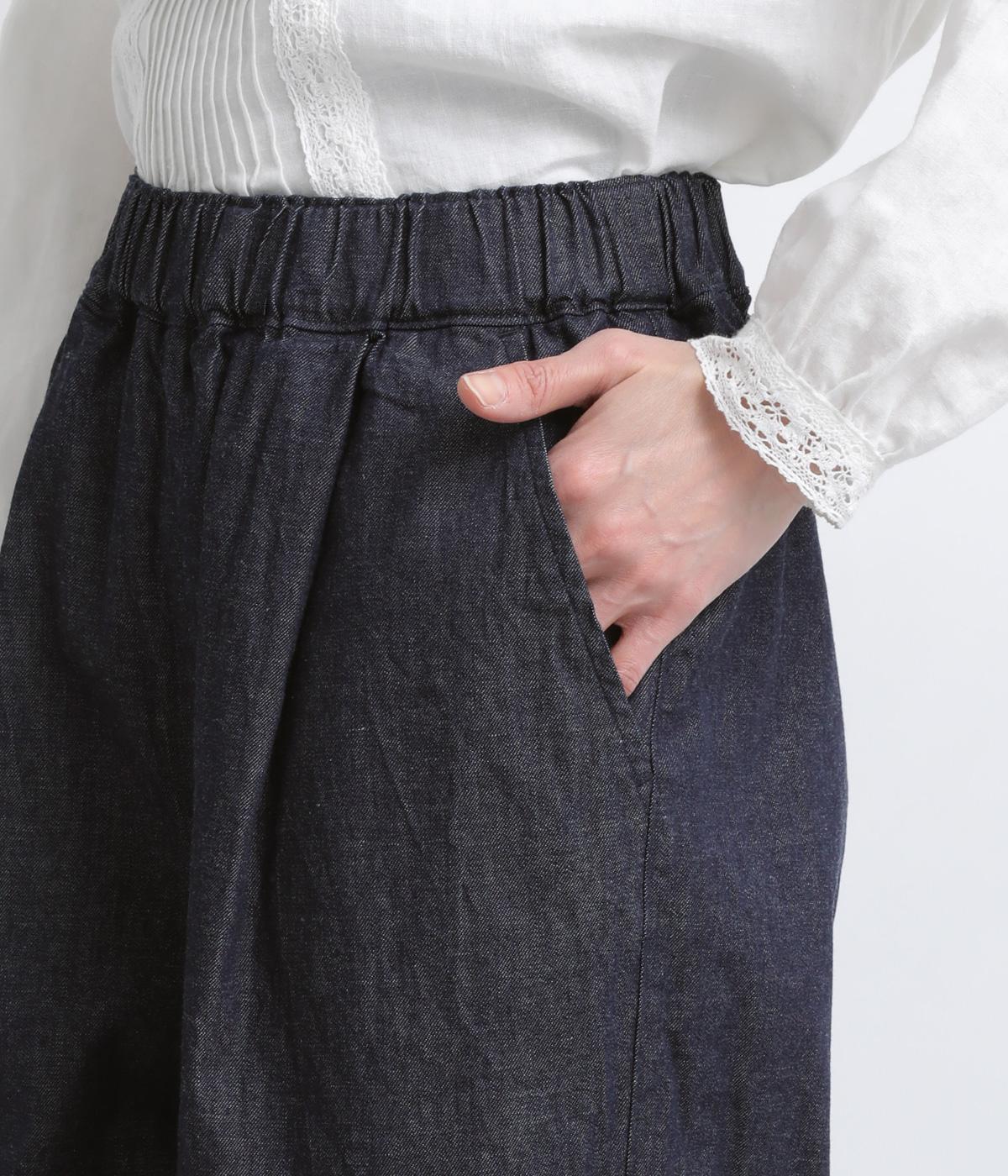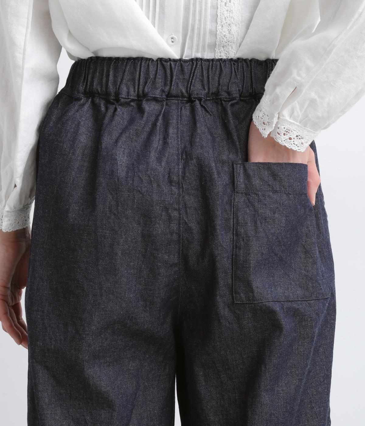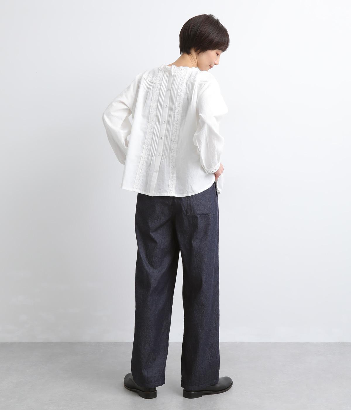 やや薄手で軽やかなコットンデニム生地で仕立てました。ほどよいハリを持ちながらもしなやかさがあり、動きにやさしくなじむのが魅力です。さらりとした肌ざわりと洗いざらしのような自然なシワが、こなれた表情を引き立てます。