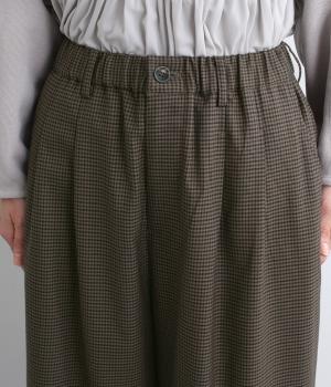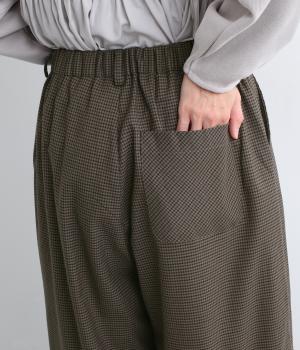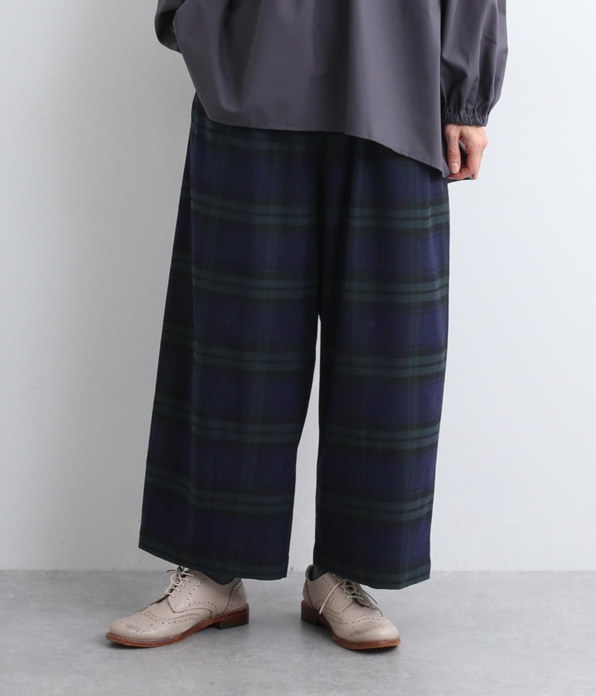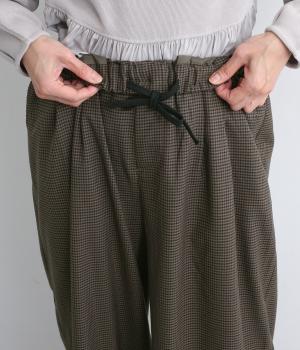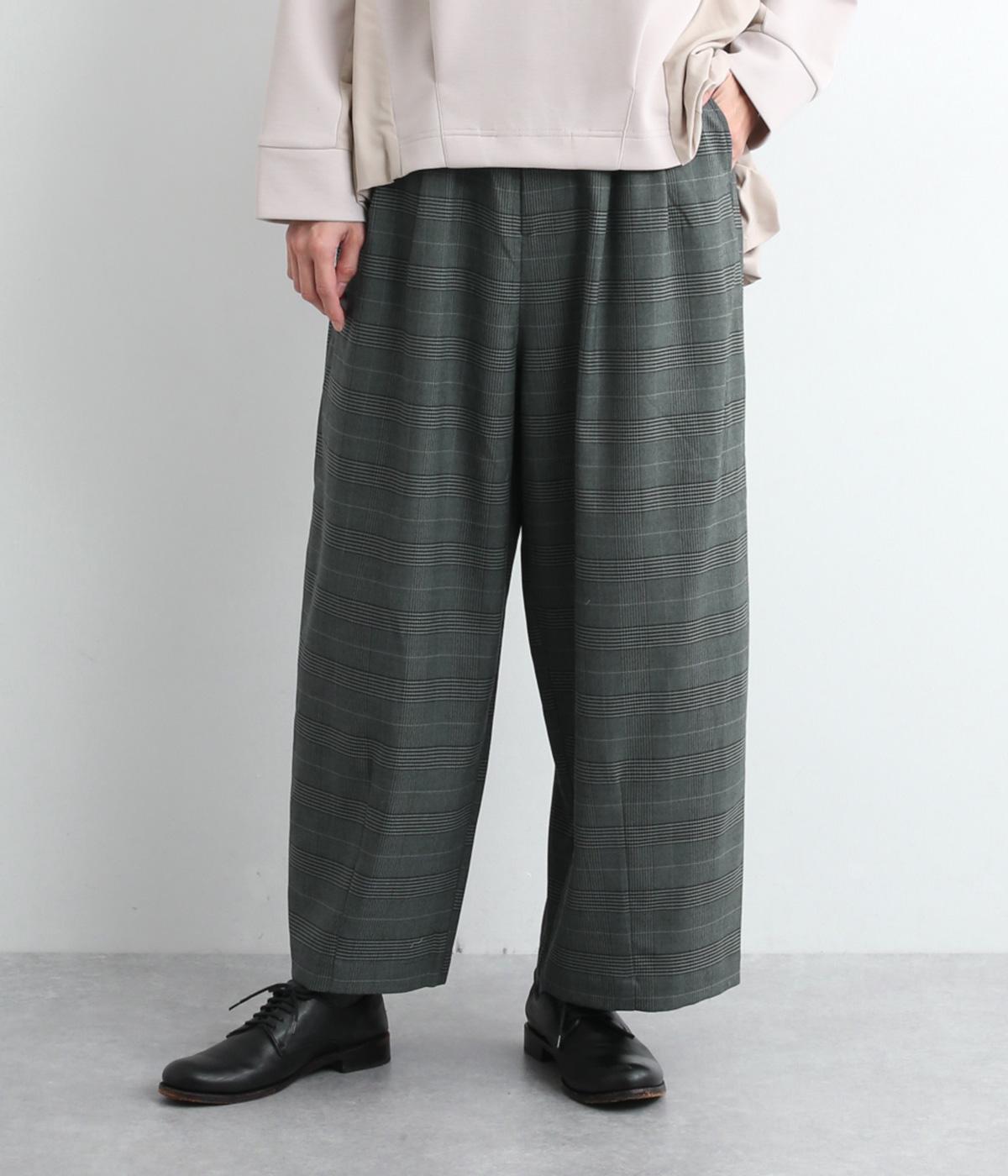 着こなしをトラッドな雰囲気にまとめてくれるチェック柄パンツ。腰まわりはゆったりと、裾はダーツで適度にすっきり見せたコクーンシルエット仕立て。前ファスナーで脱ぎはきしやすく、ウエストはゴム&内紐入りでデイリーに活躍。