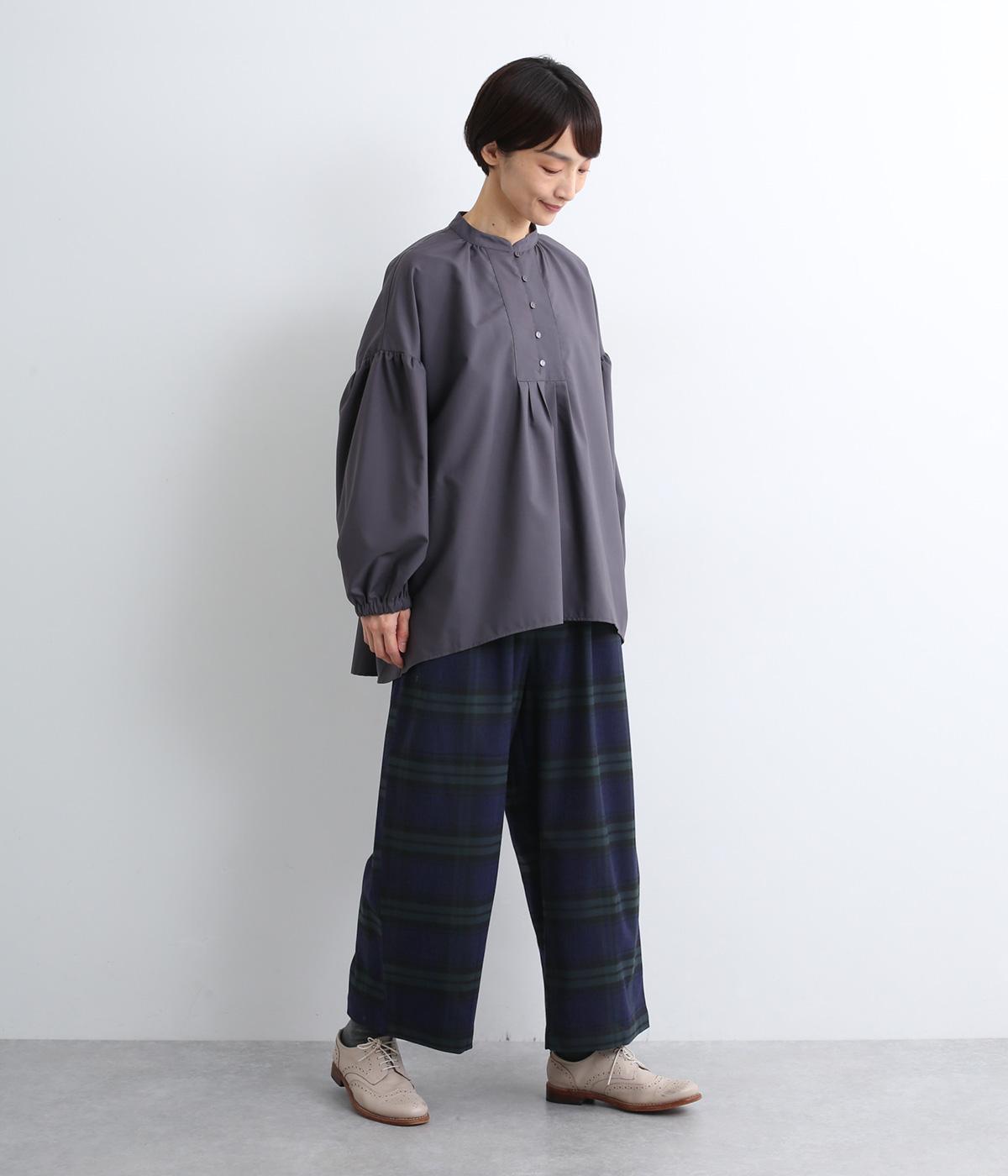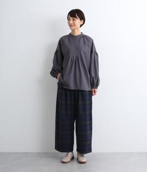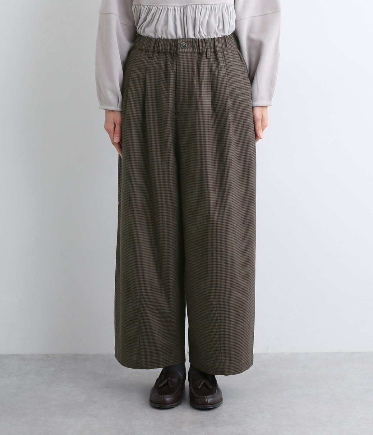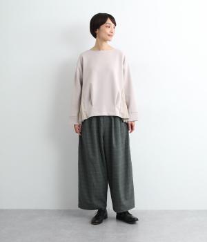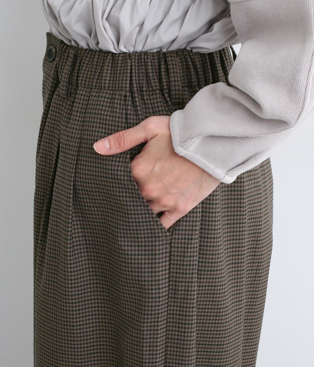着こなしをトラッドな雰囲気にまとめてくれるチェック柄パンツ。腰まわりはゆったりと、裾はダーツで適度にすっきり見せたコクーンシルエット仕立て。前ファスナーで脱ぎはきしやすく、ウエストはゴム&内紐入りでデイリーに活躍。