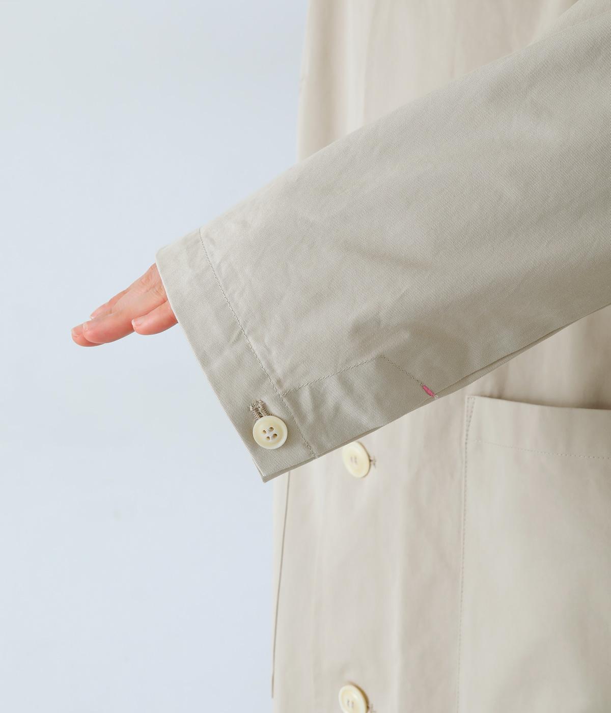 さらりとした肌ざわりのコットンツイル生地で仕立てました。ほどよい厚みとハリがあり、シルエットを美しく見せてくれます。ほどよいカジュアルさと上品さをあわせ持つ素材です。