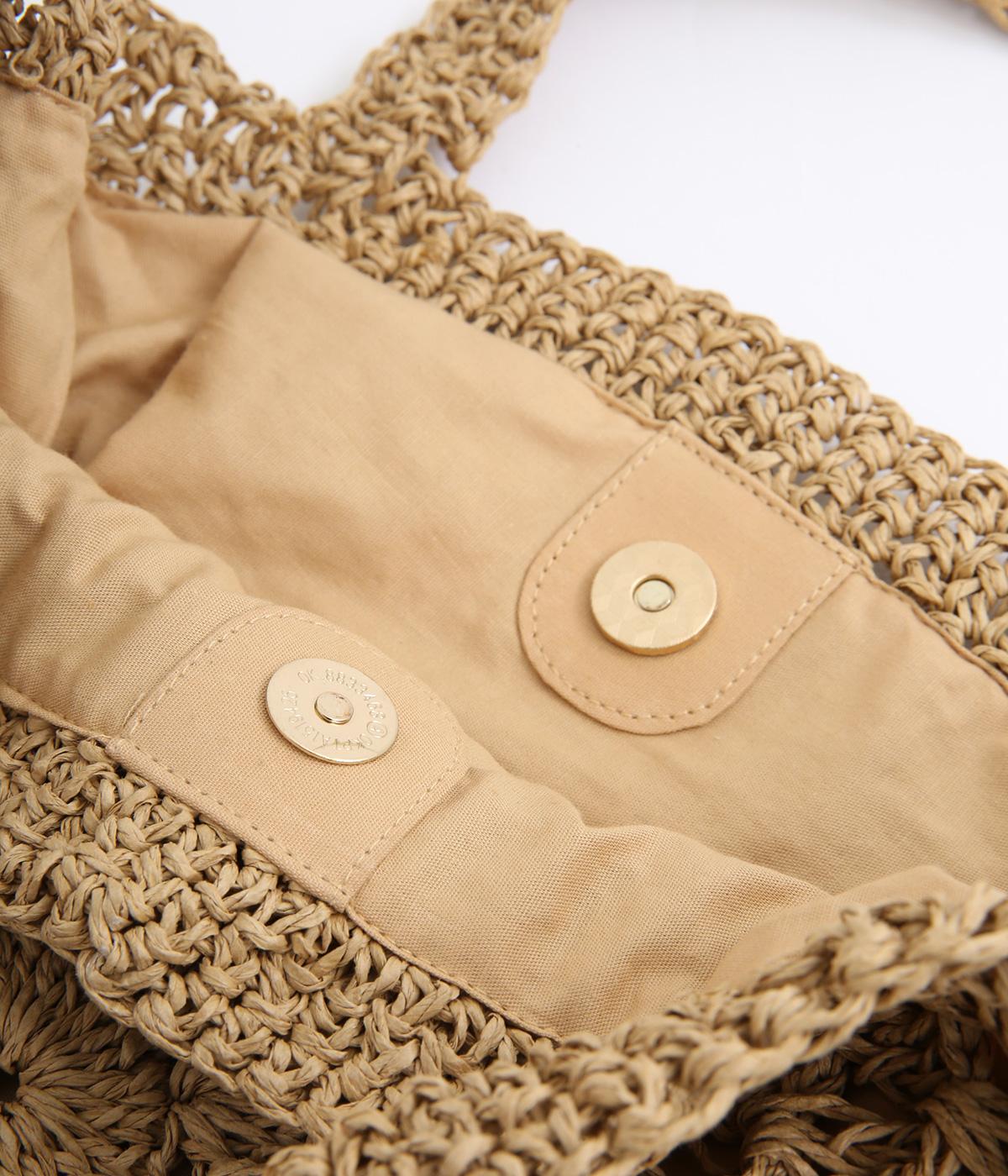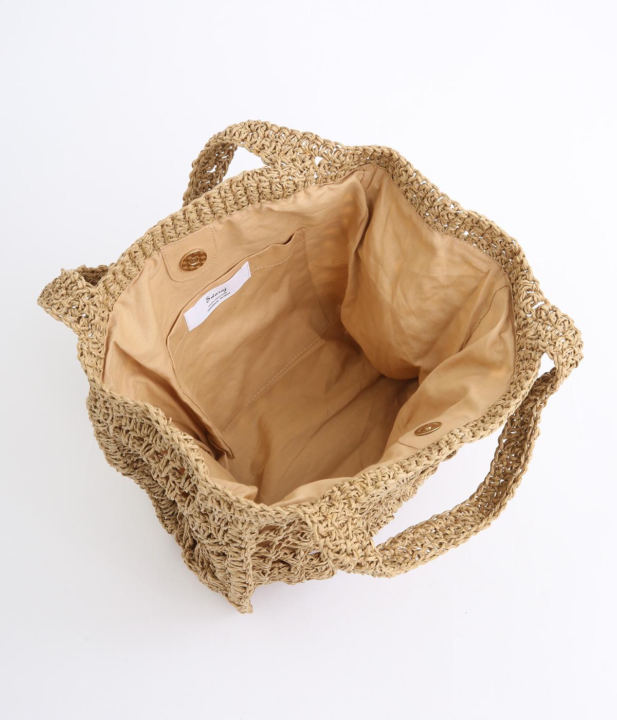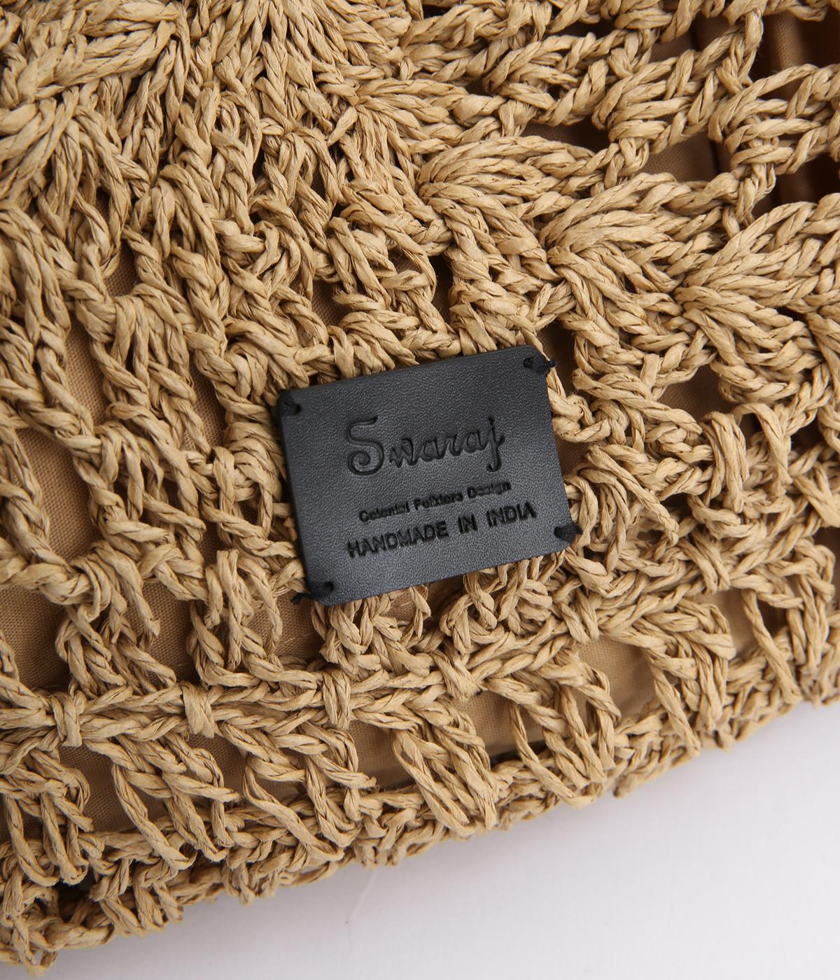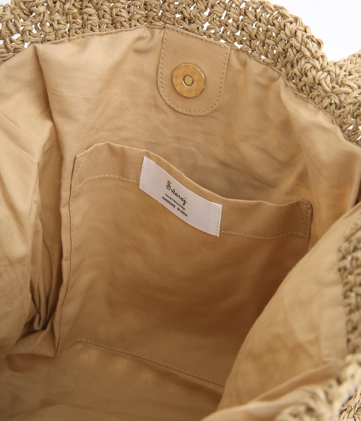 インド製の天然ペーパーラフィアを丁寧に手編みで仕上げました。見た目も涼しく軽やかで、ナチュラルながらも表情豊か。同色系の内布をつけて中身が見えたりこぼれ落ちたりしないようになっています。