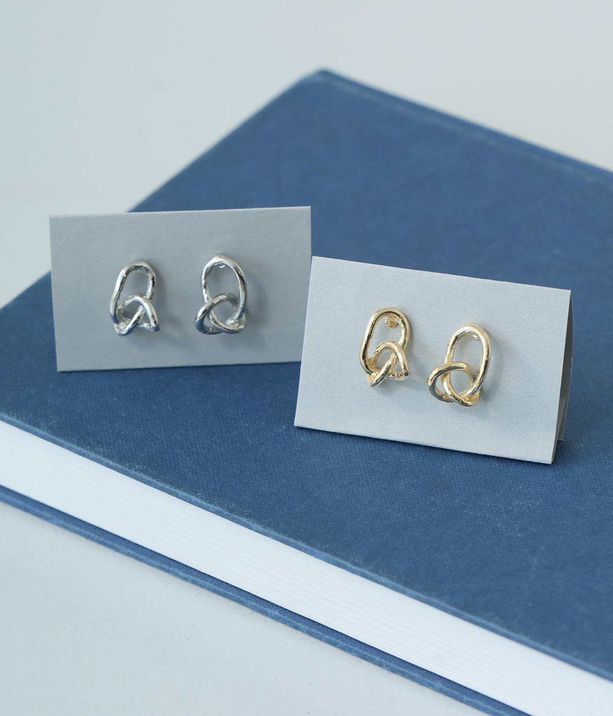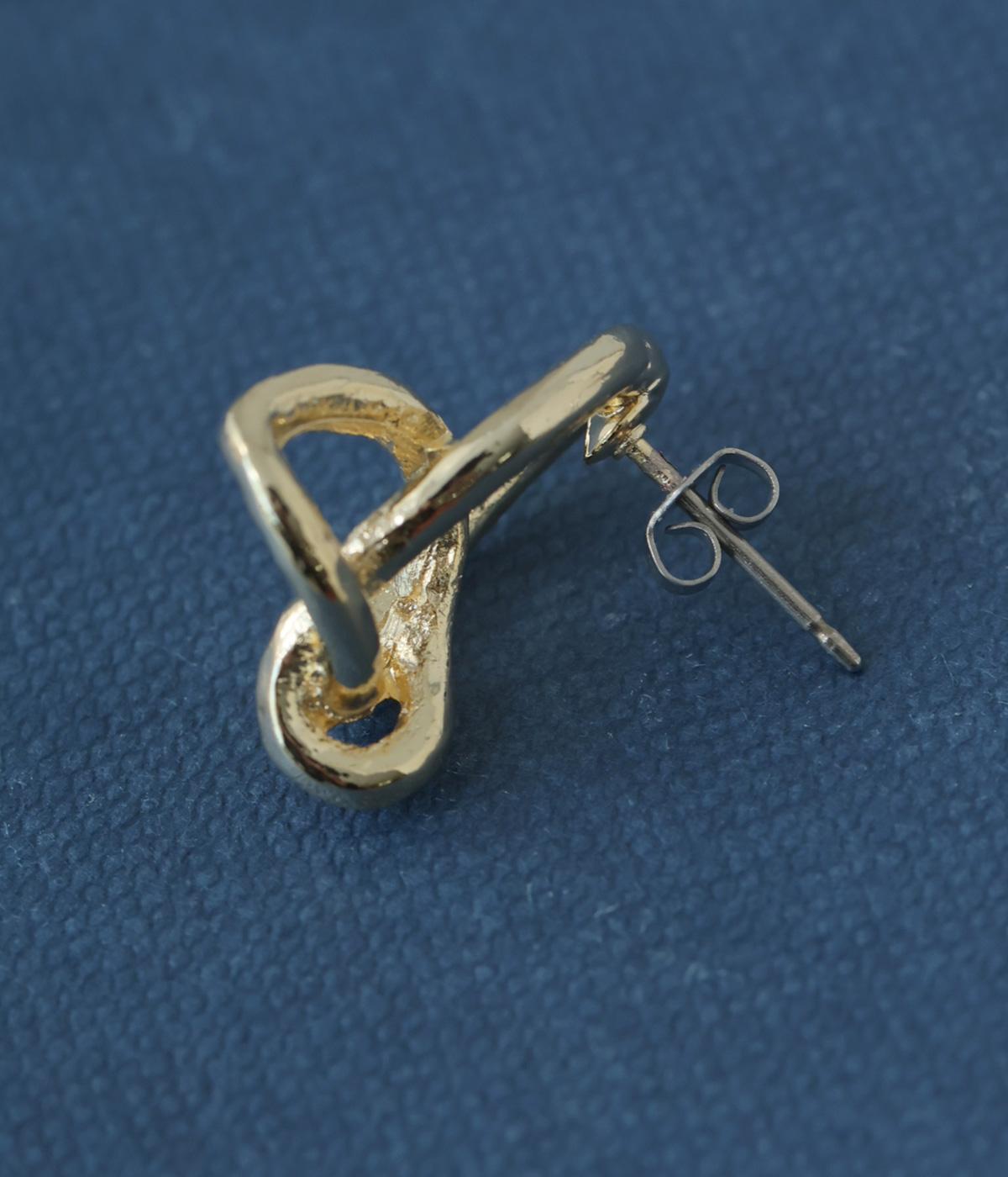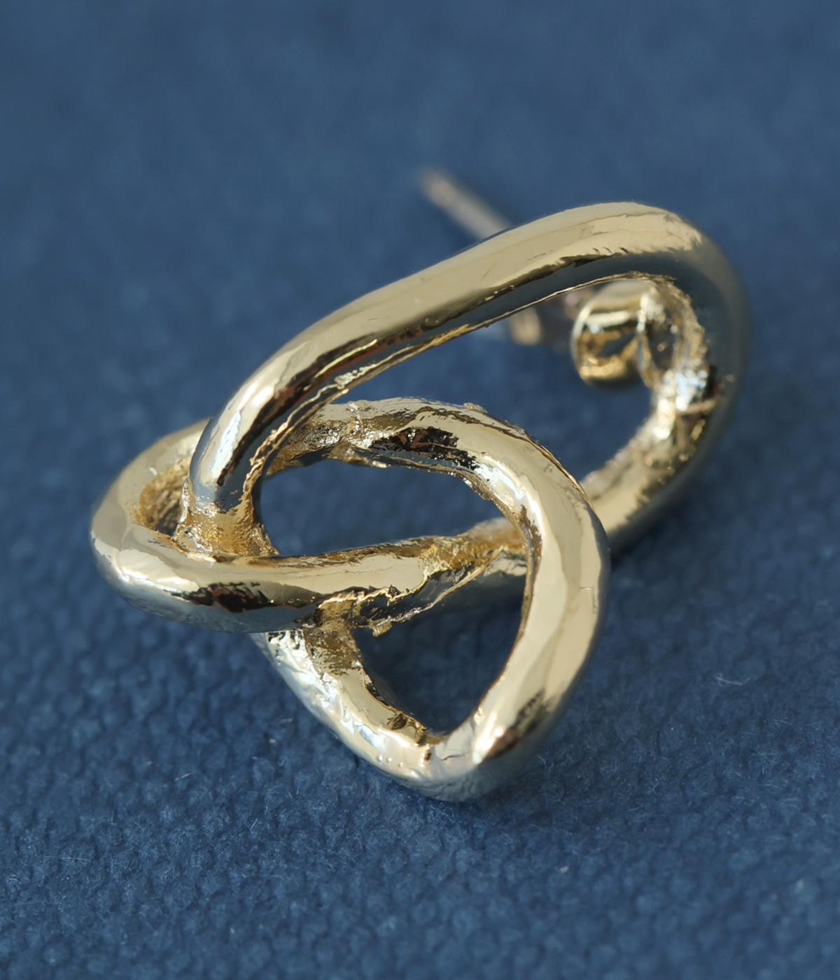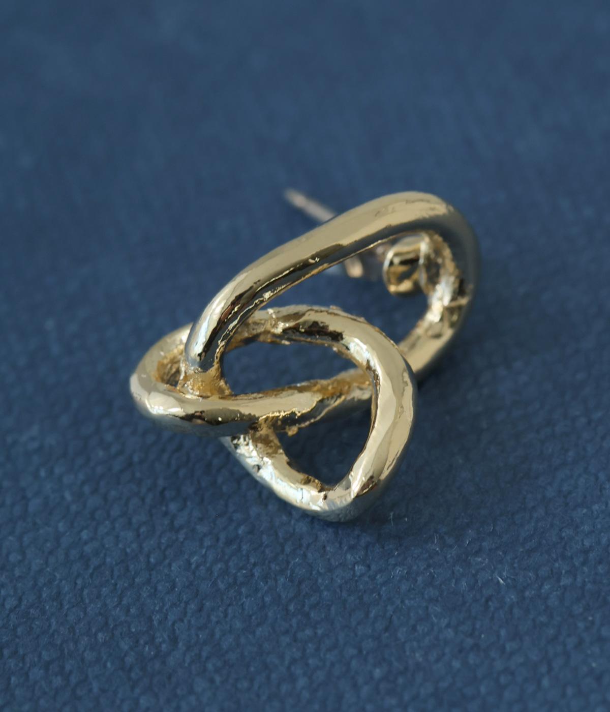 線を絡めたようなタングルデザインを小ぶりに仕立てたピアス。立体感のあるフォルムが、耳もとにさりげない表情を添えます。シンプルながらも動きのあるデザインで、日常の装いにほどよいアクセントを加えてくれるアイテムです。