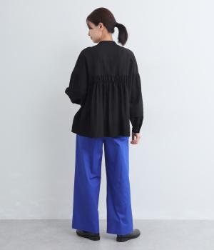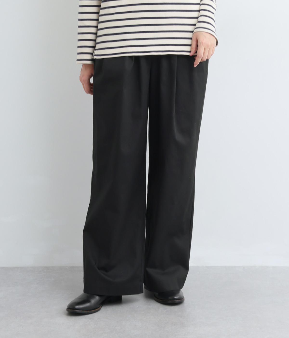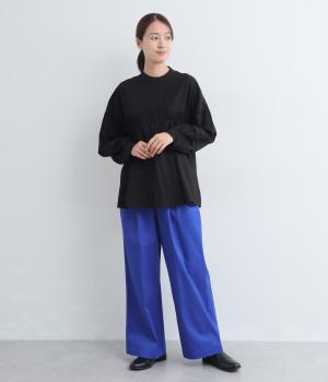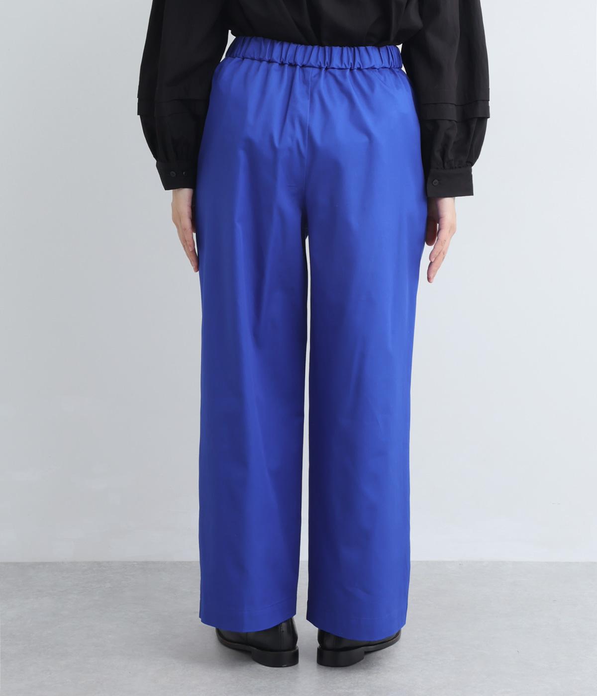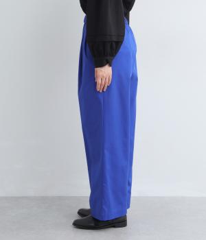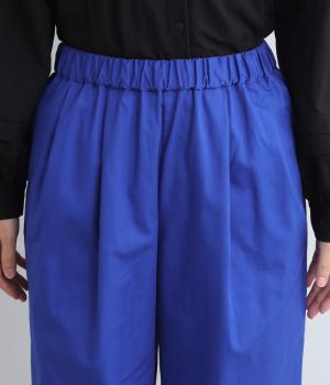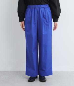タックを入れたワイドパンツは、すっきりとしたストレートラインで幅広いスタイリングに活躍。ほどよいハリ感と発色の良さが着こなしにメリハリを与えます。ウエストはオールゴムに内紐入りでフィット感の微調整も◎。