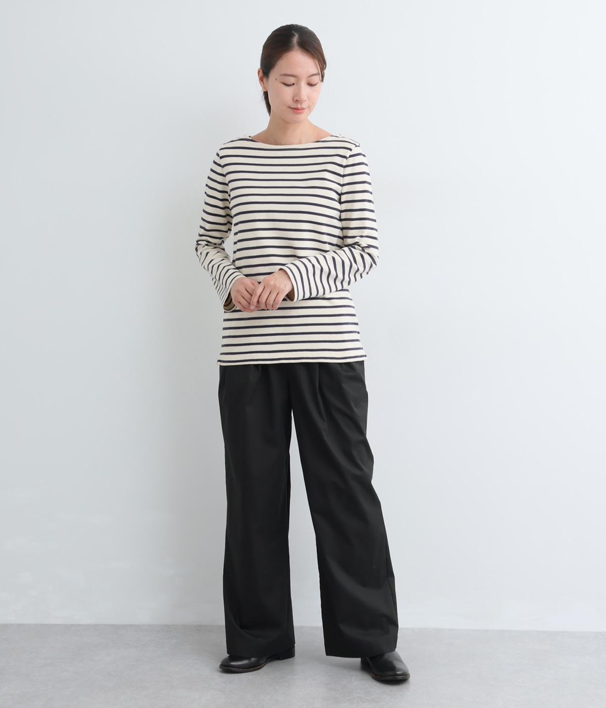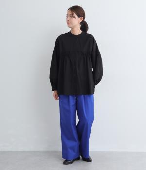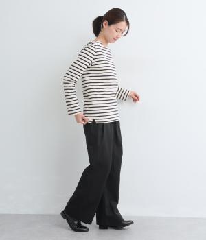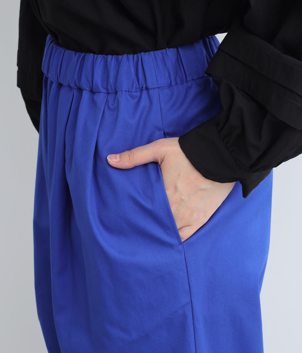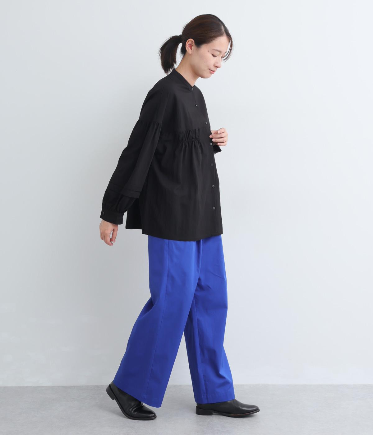 タックを入れたワイドパンツは、すっきりとしたストレートラインで幅広いスタイリングに活躍。ほどよいハリ感と発色の良さが着こなしにメリハリを与えます。ウエストはオールゴムに内紐入りでフィット感の微調整も◎。