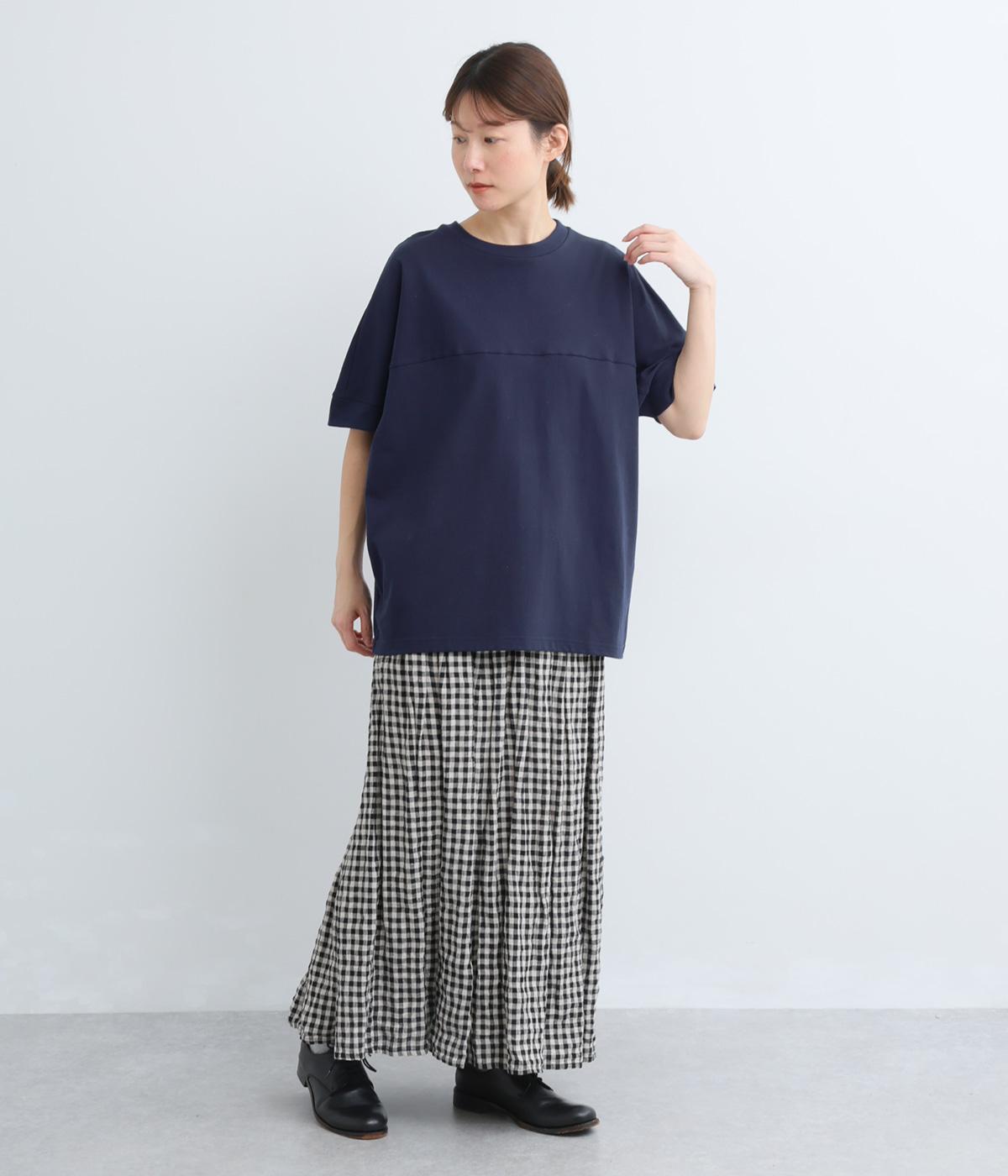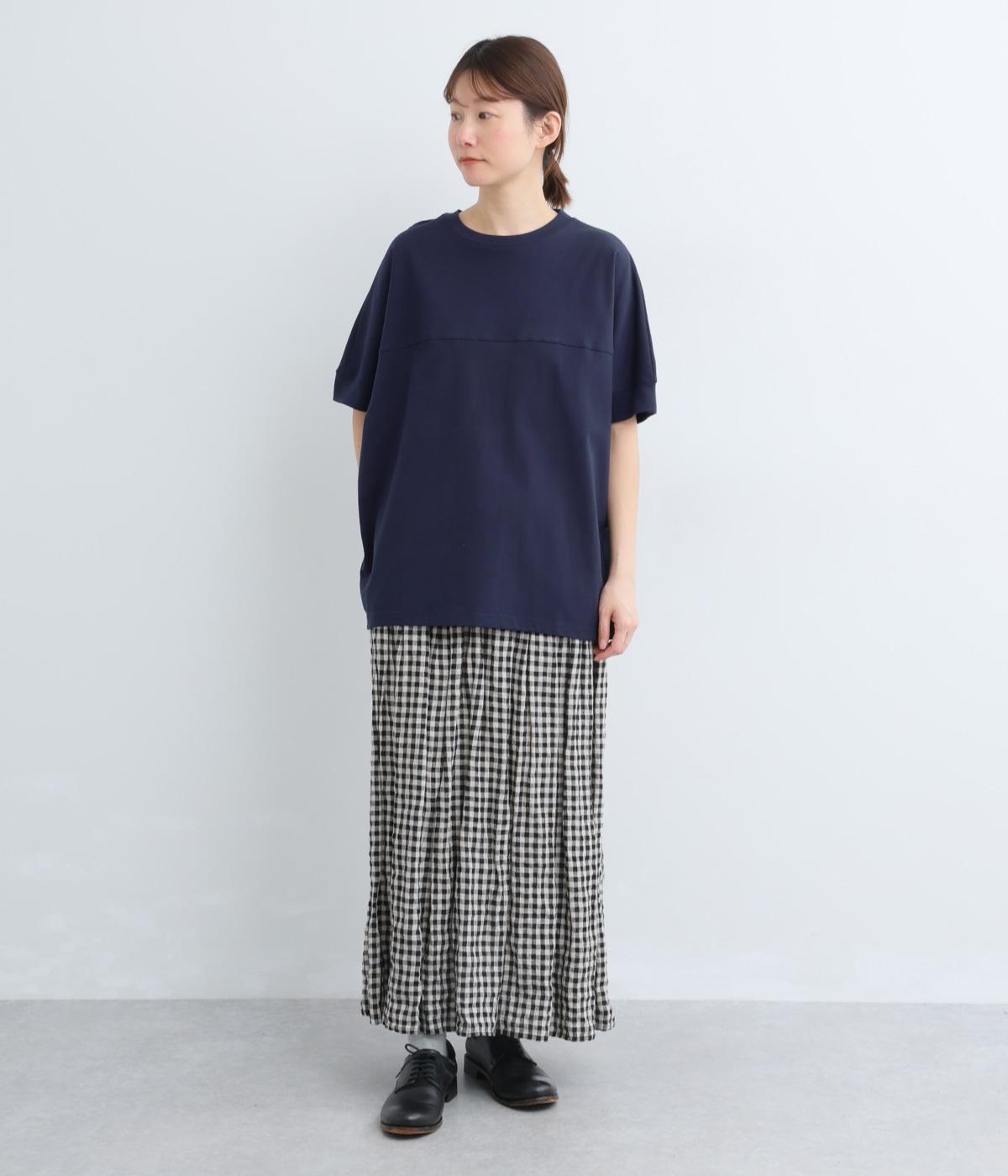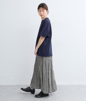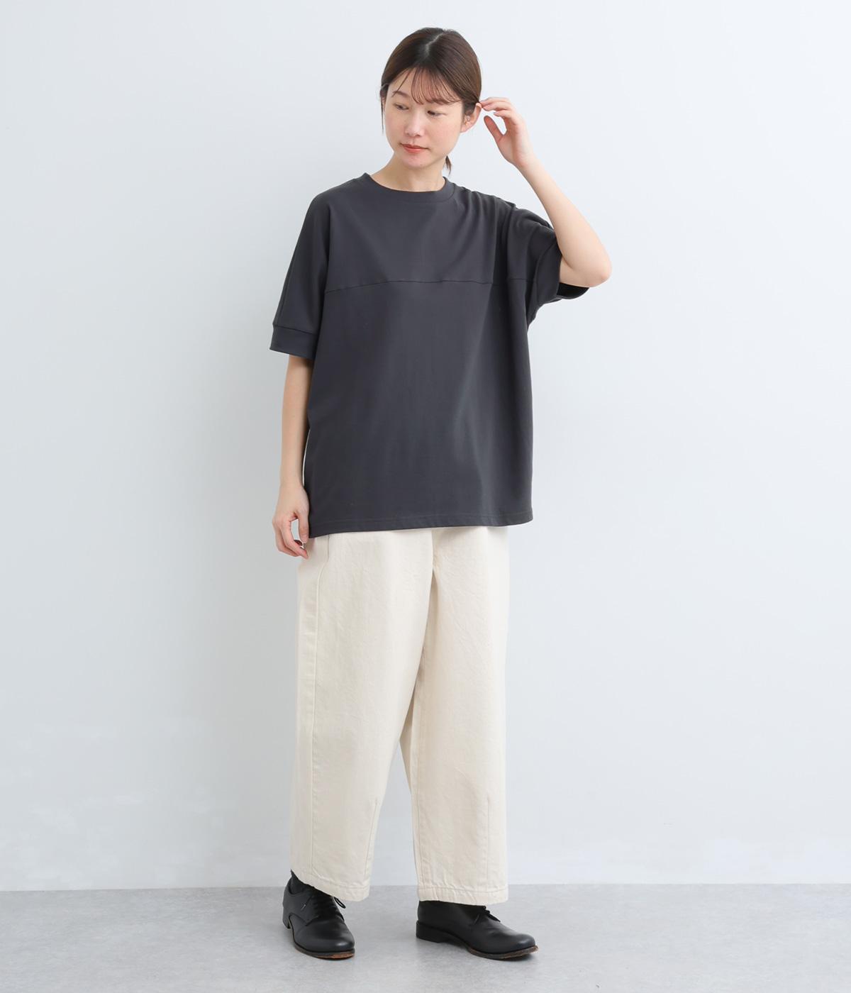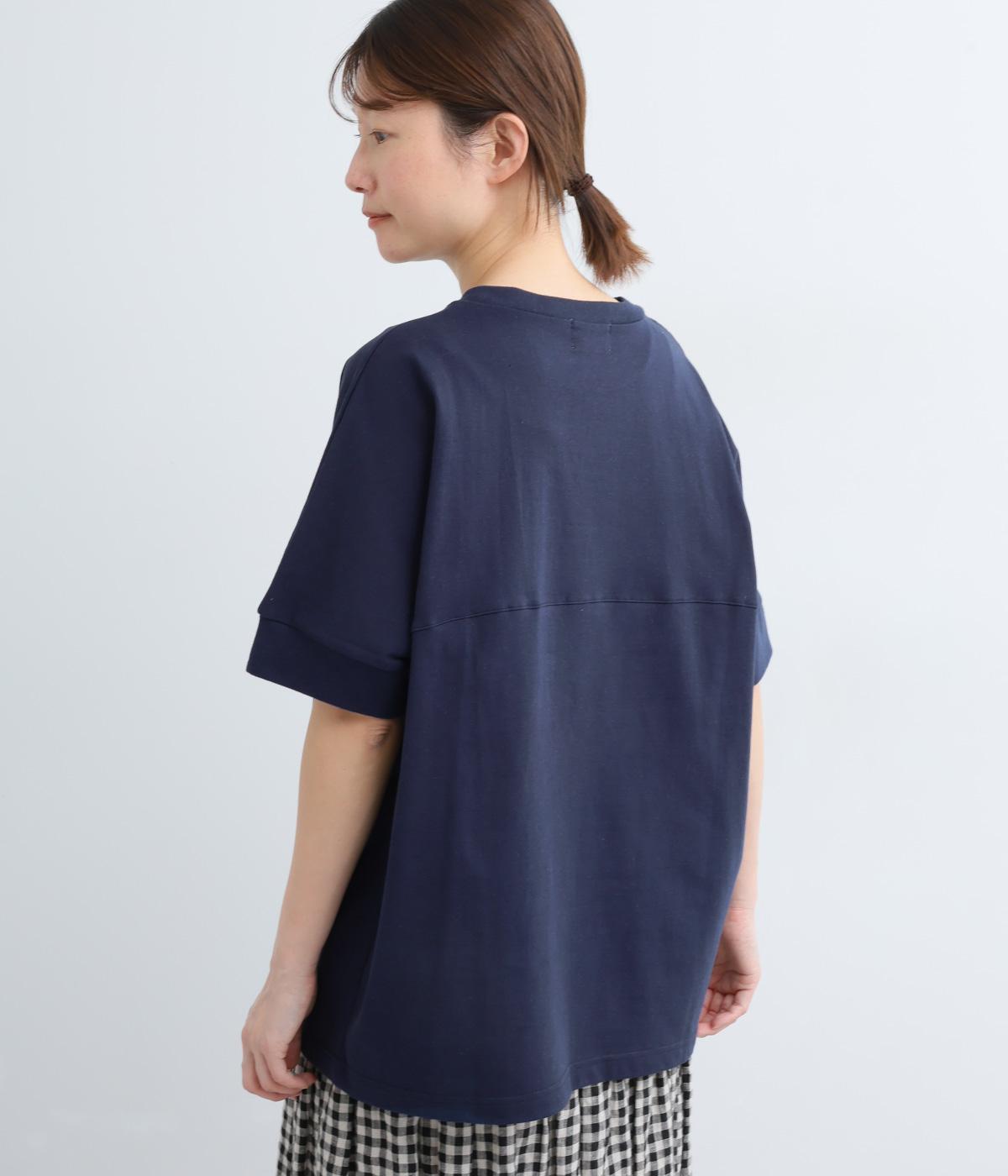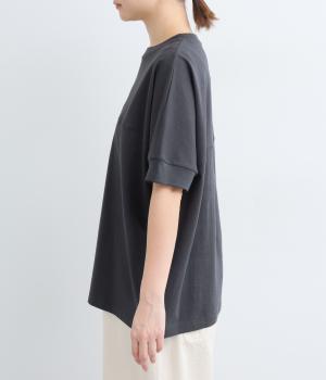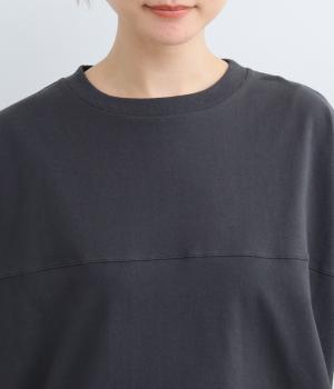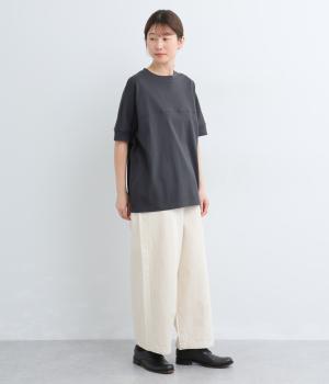 空気を含んだほどよい厚さのコットン天竺生地です。首元と袖口には心地いい伸縮性のリブを合わせました。やわらかな肌ざわりでデイリー使いにぴったりな素材感です。
