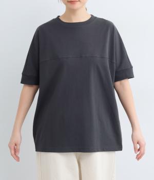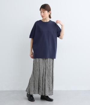 ベーシックなプルオーバーに切り替えをあしらい、アクセントを加えました。ふんわりとしたシルエットで、リラックス感のある着心地です。さまざまなボトムスになじみ、一枚あると便利な万能トップスです。