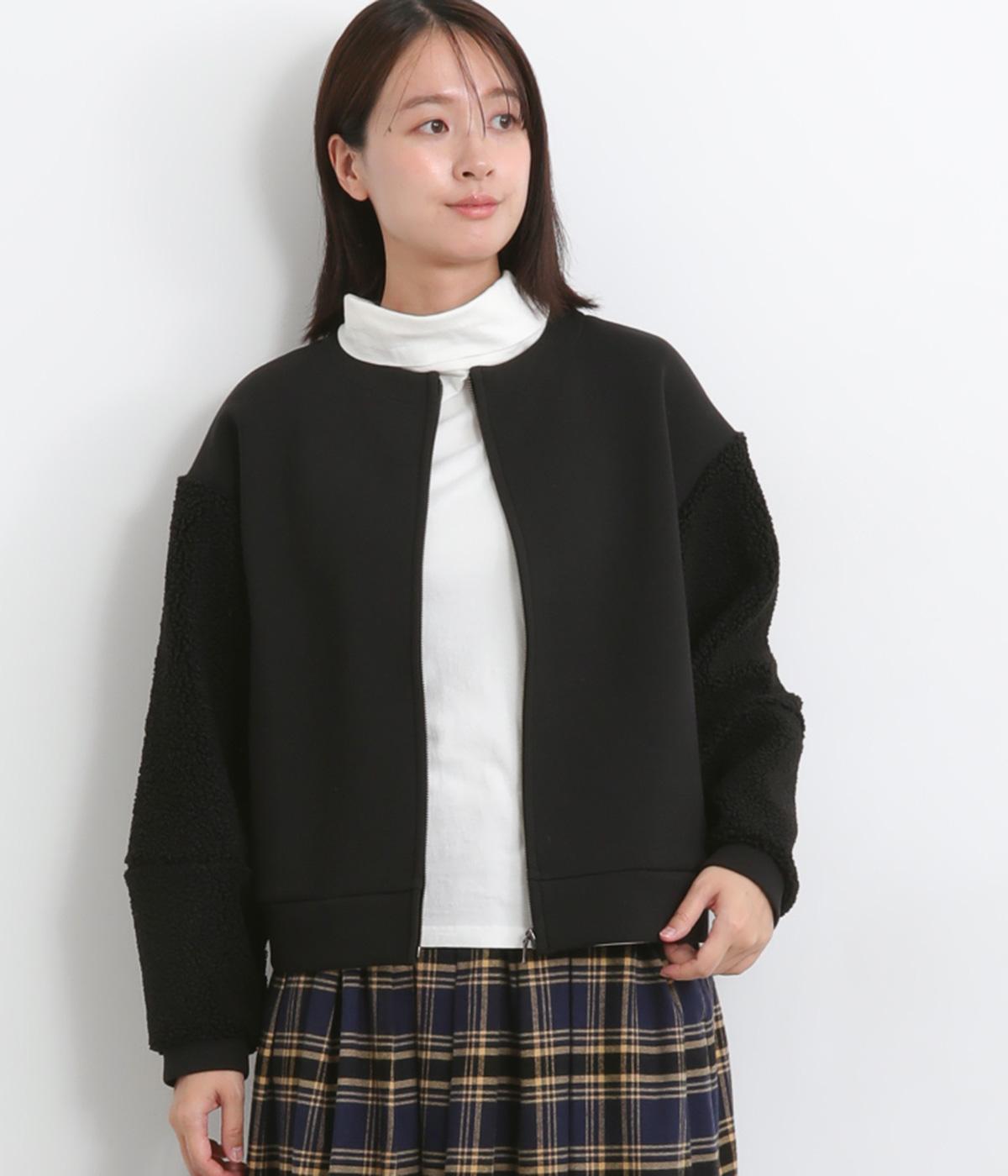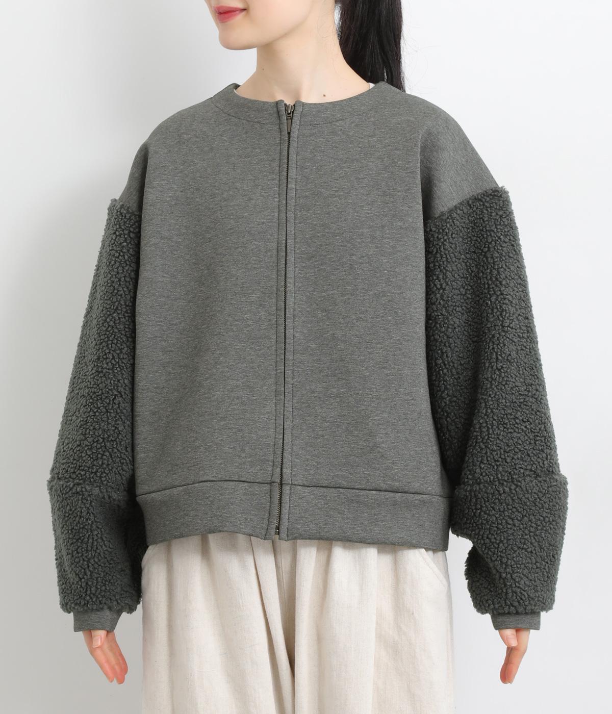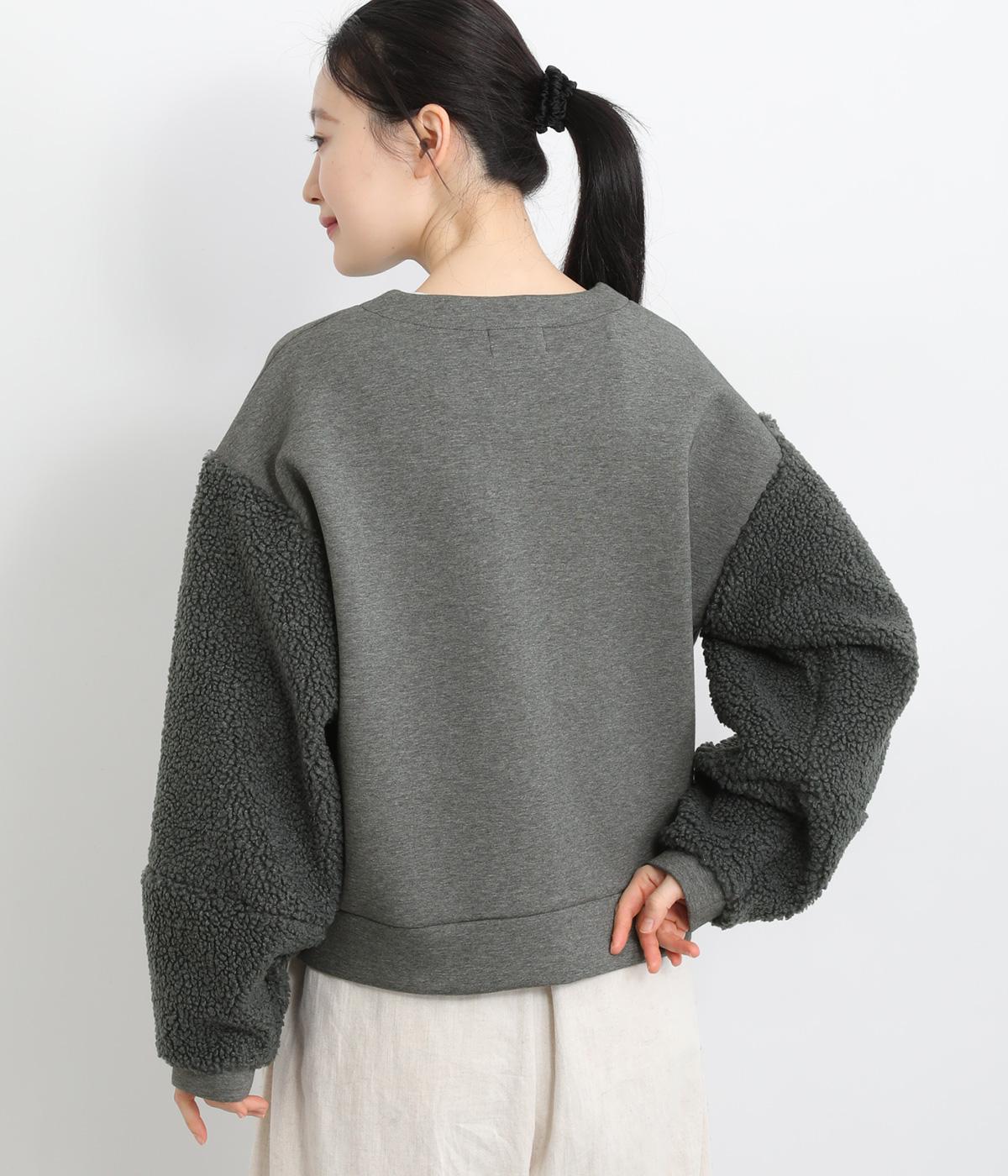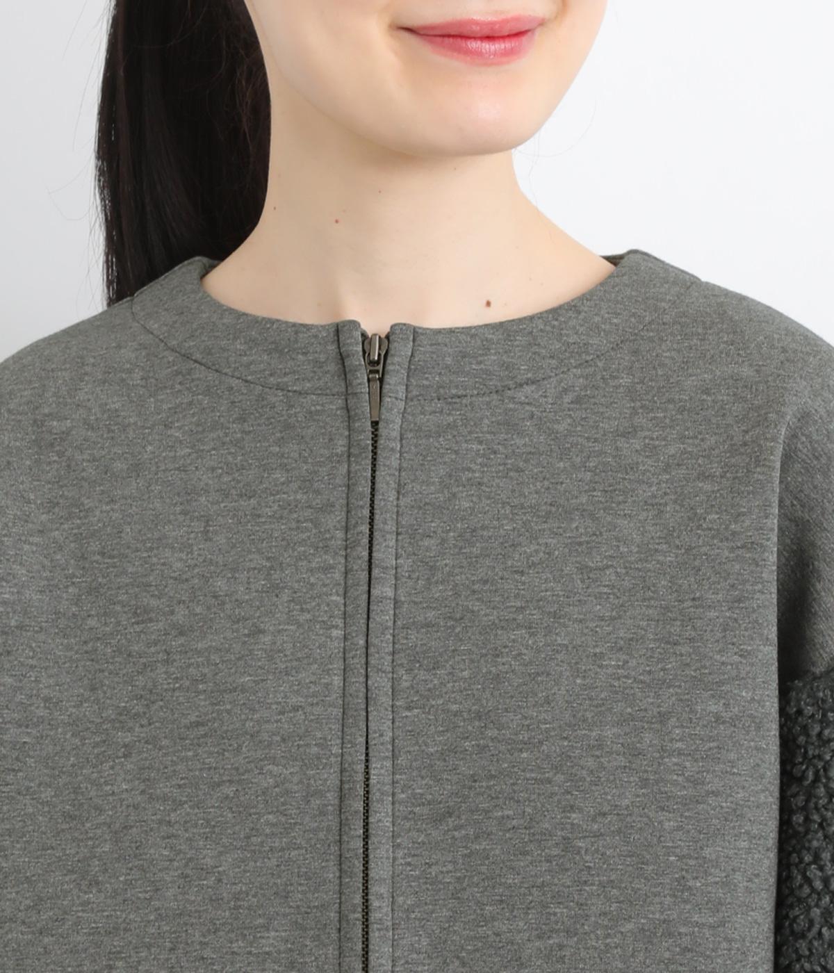 もっちりとしたやわらかな生地をベースに、袖はもこもことした表面感のあるプードルパイルに切り替えた異素材使い。どちらも適度な肉感と伸縮性が着心地のいい生地感です。