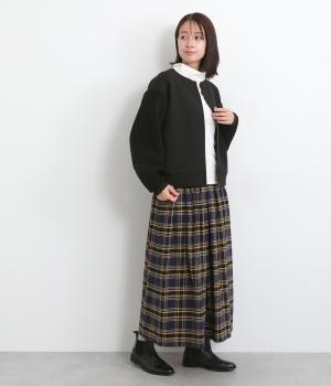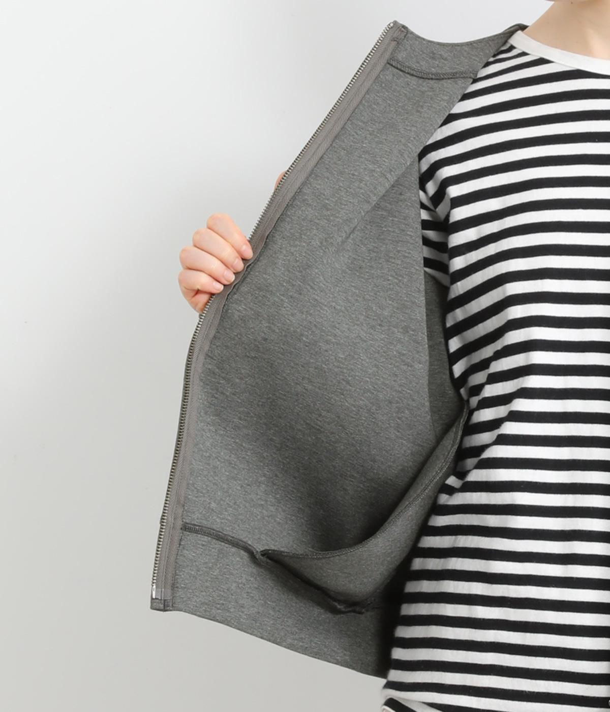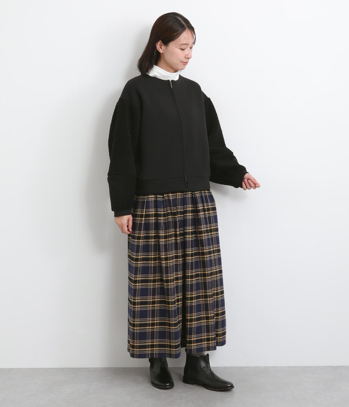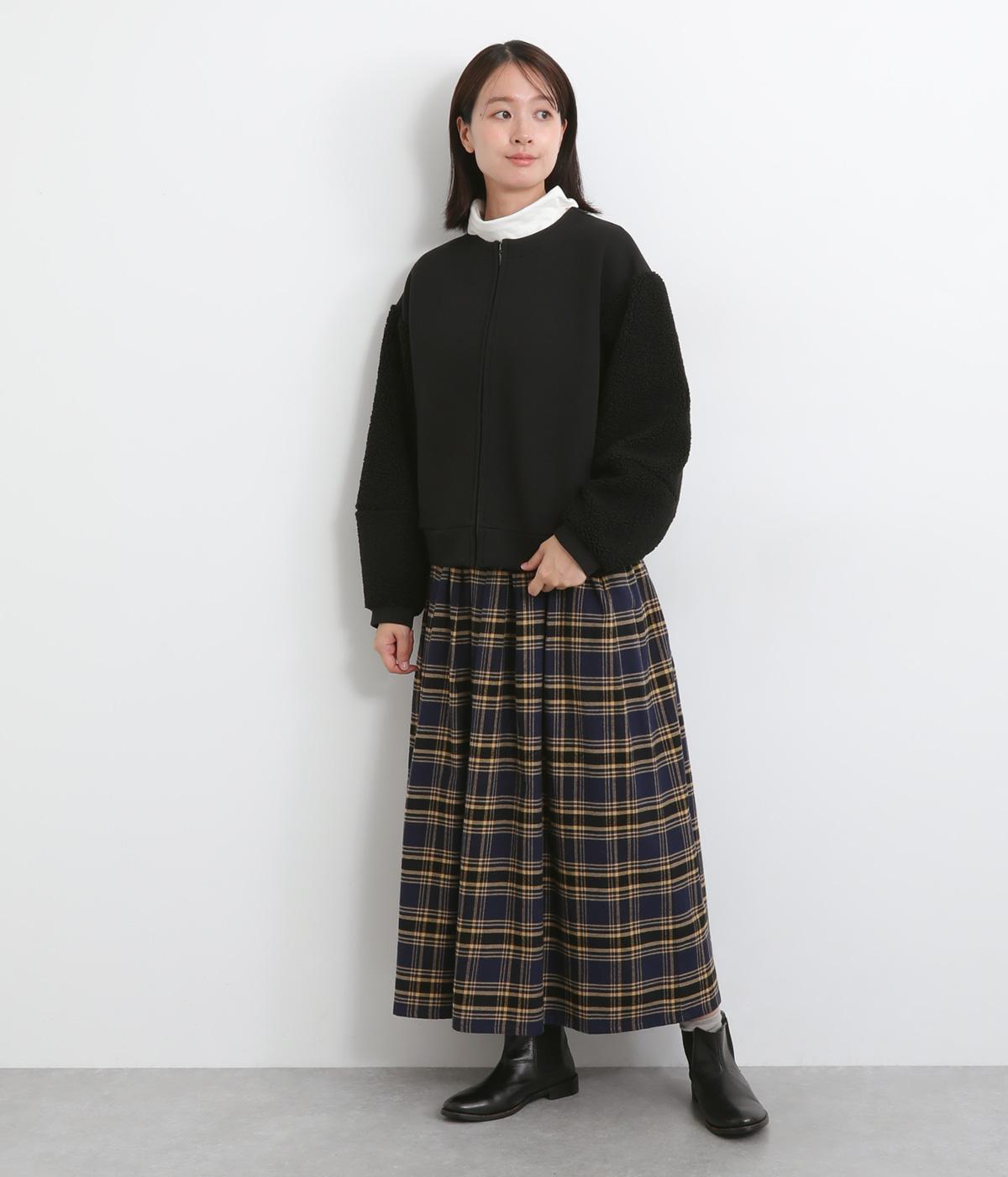 もっちりとしたやわらかな生地をベースに、袖はもこもことした表面感のあるプードルパイルに切り替えた異素材使い。どちらも適度な肉感と伸縮性が着心地のいい生地感です。