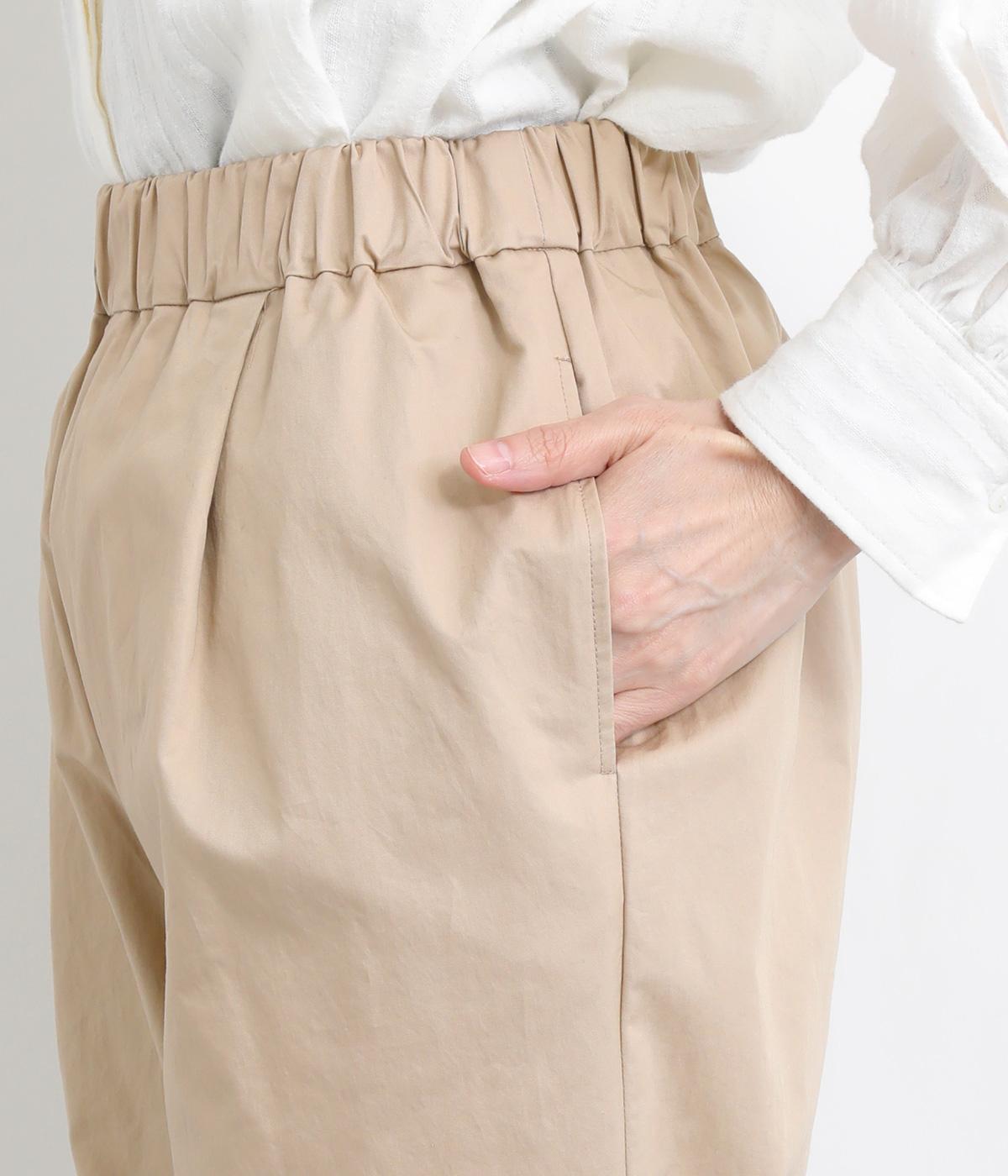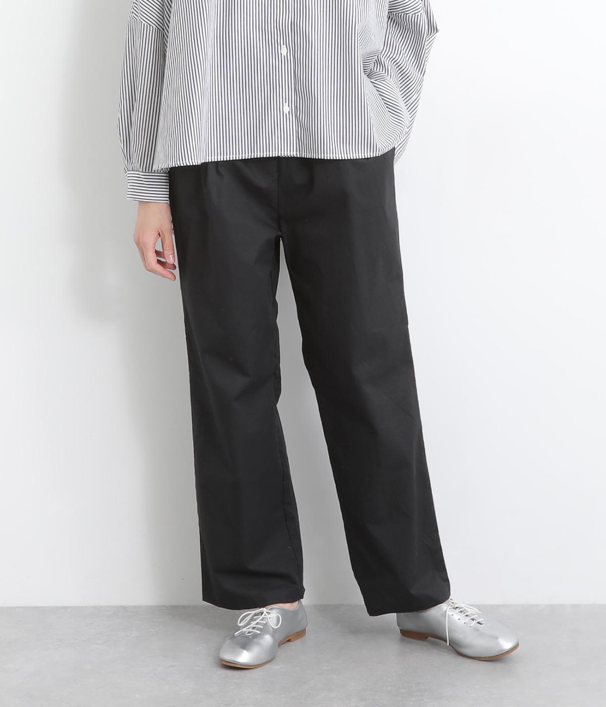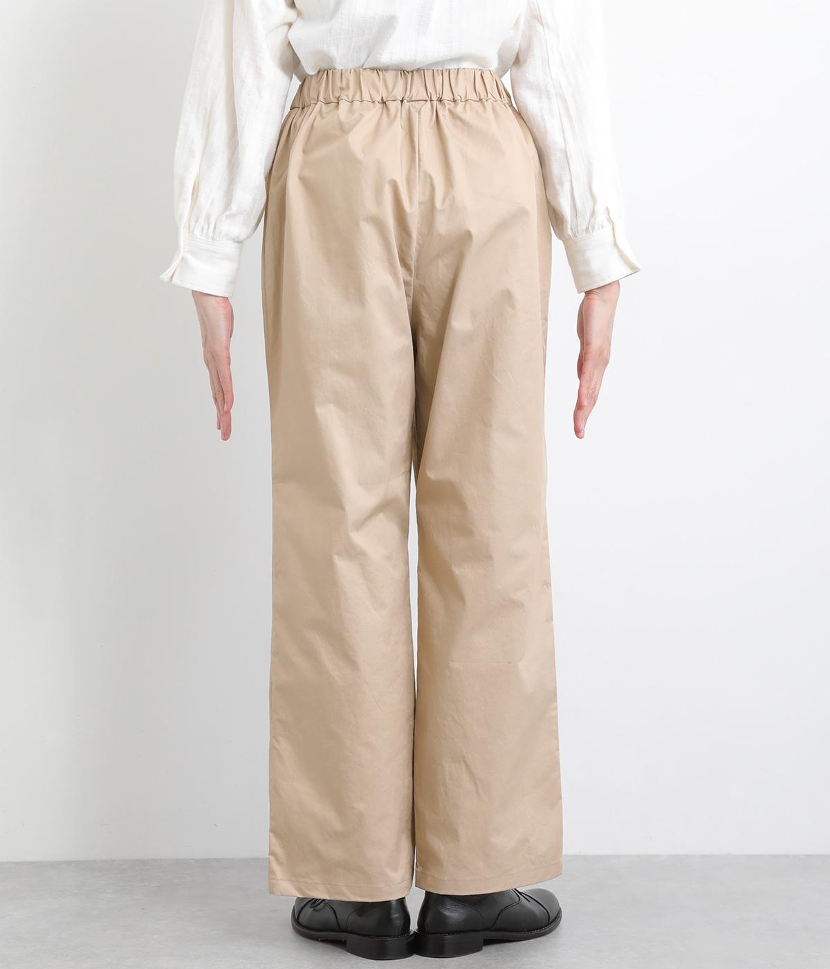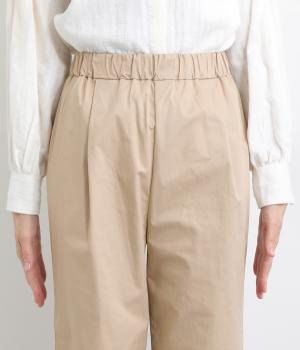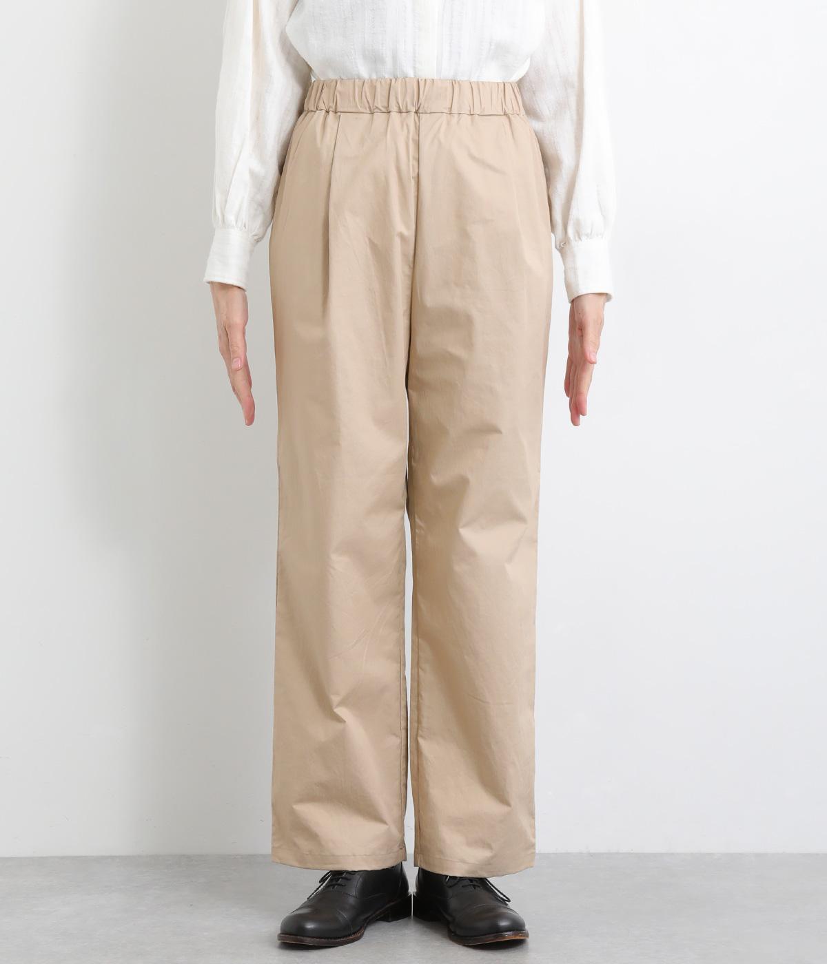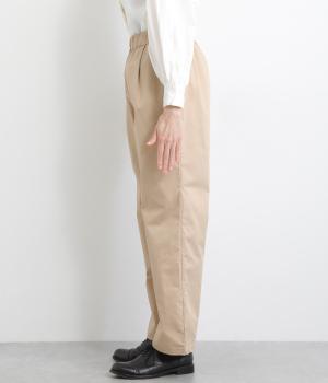 タックを入れて適度にゆとりを持たせつつもすっきりと仕上げたストレートパンツです。ニュートラルなアイテムで、マニッシュからきちんと感ある装いまで幅広く活躍。ウエストはぐるりとゴムを入れたリラックス仕様で、内紐で調整可能にしました。