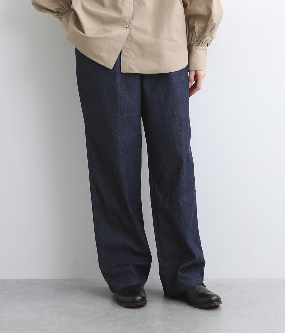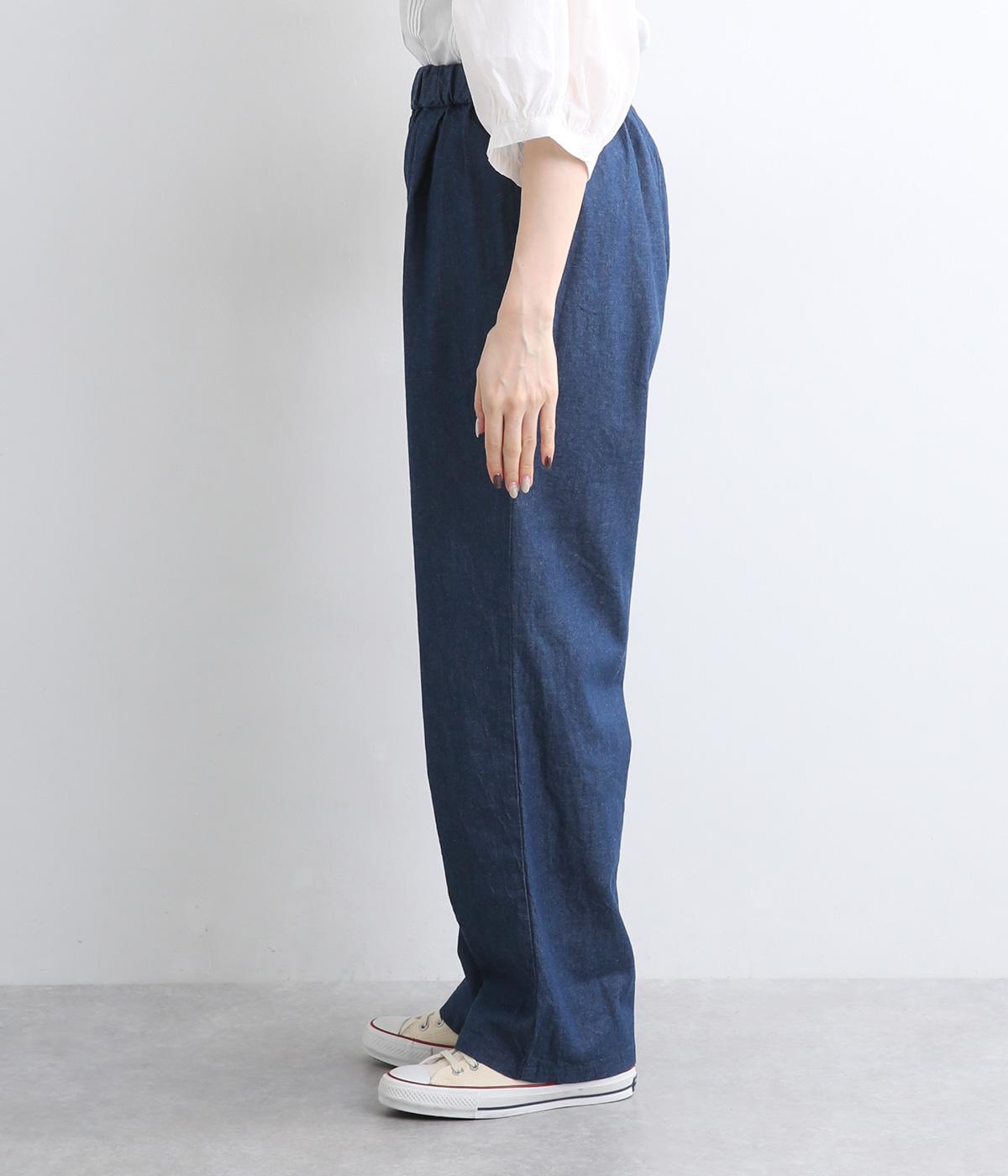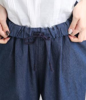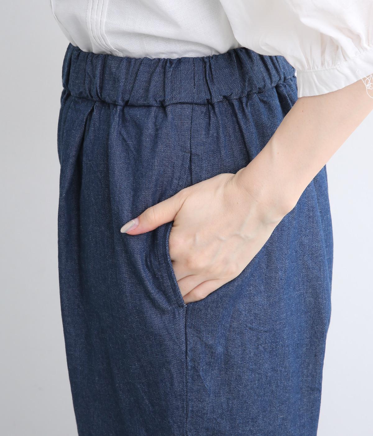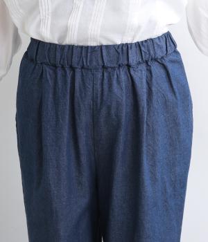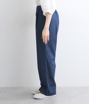 ウエスト下にワンタック入れることで、腰まわりをすっきりと見せているのがポイント。裾に向かって細くなるテーパードラインは、トップスとのバランスがとりやすく様々なスタイリングが楽しめます。ウエストはフィットが心地よいゴム&内紐。