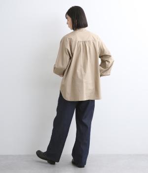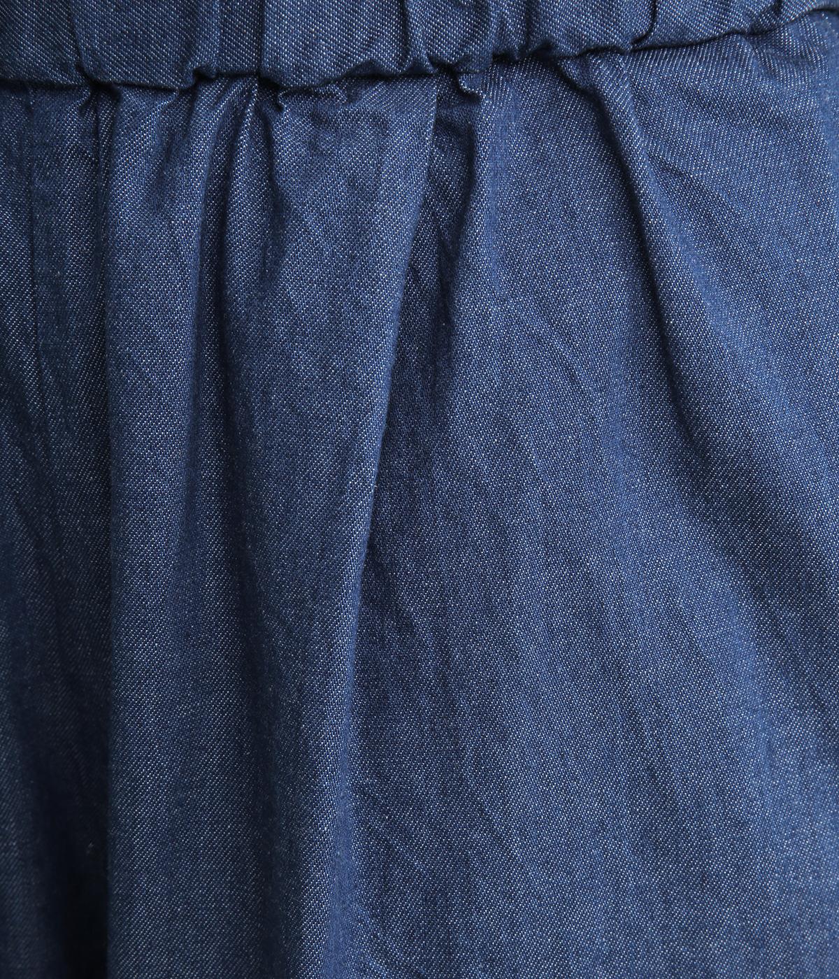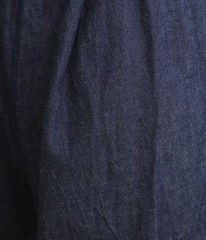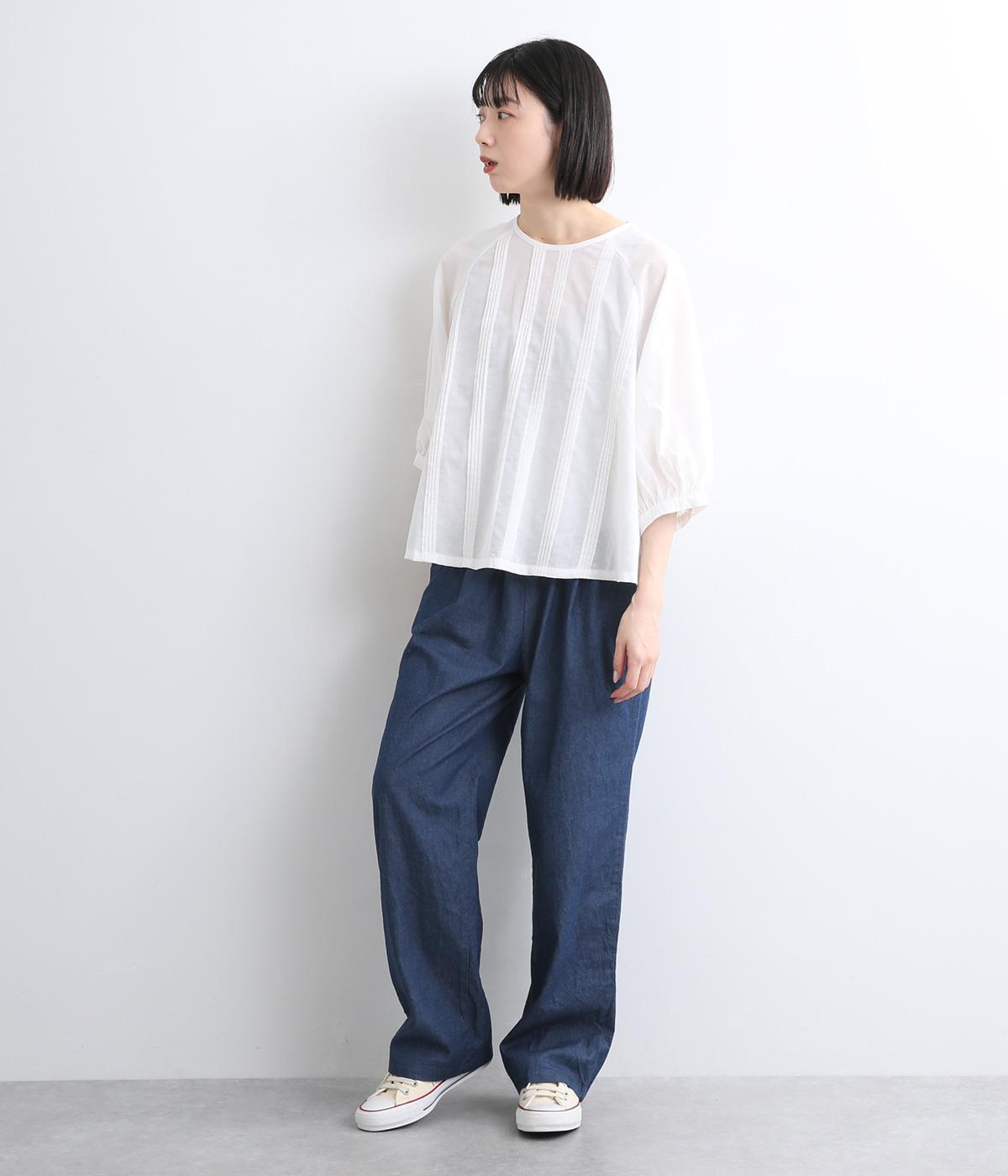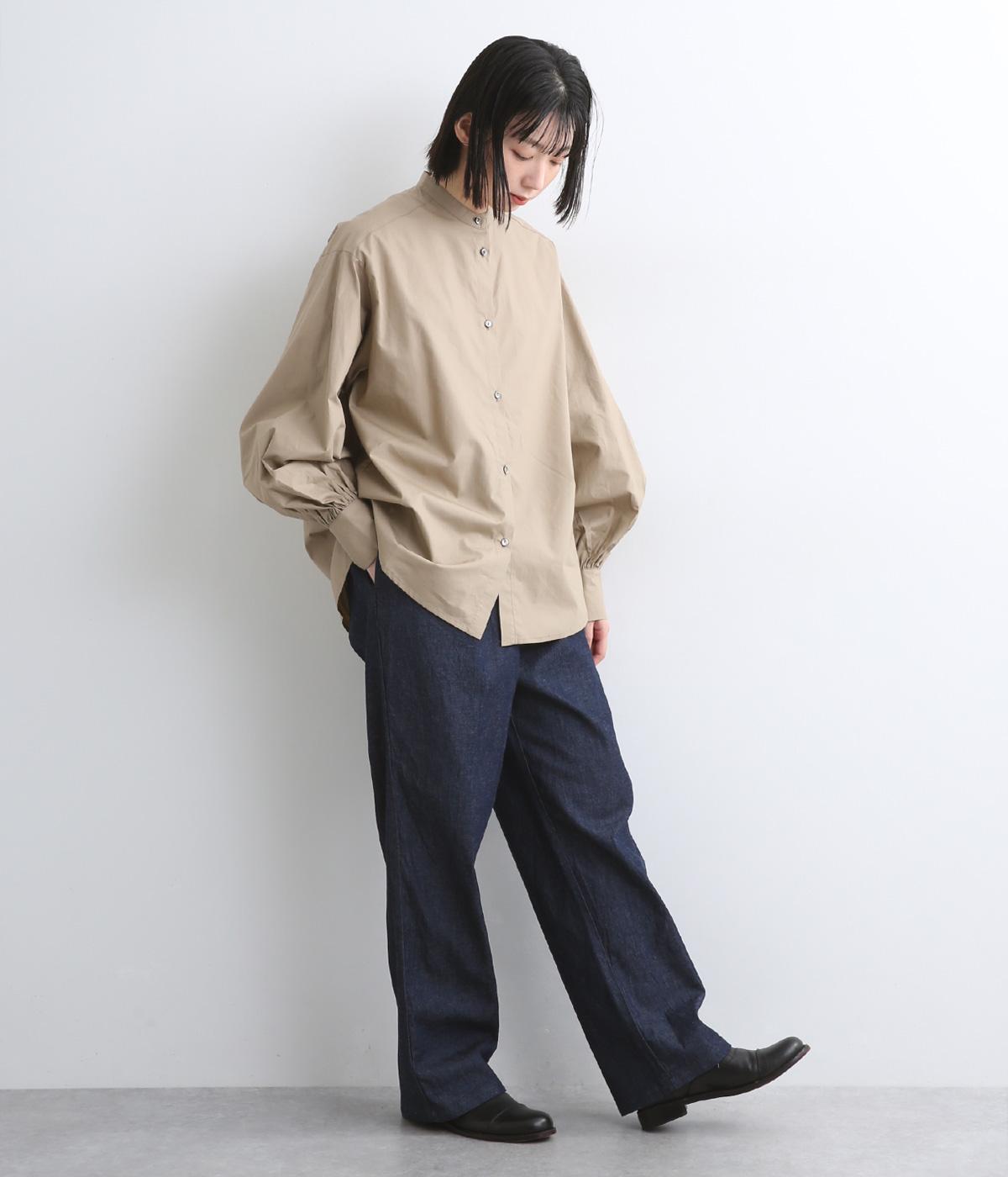 さらりとした肌ざわりのよいコットンデニムで仕立てました。表面のほどよいツヤ感がカジュアルさをおさえて、きれいめスタイルにもマッチします。