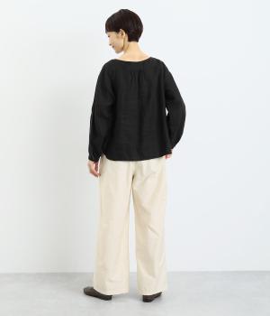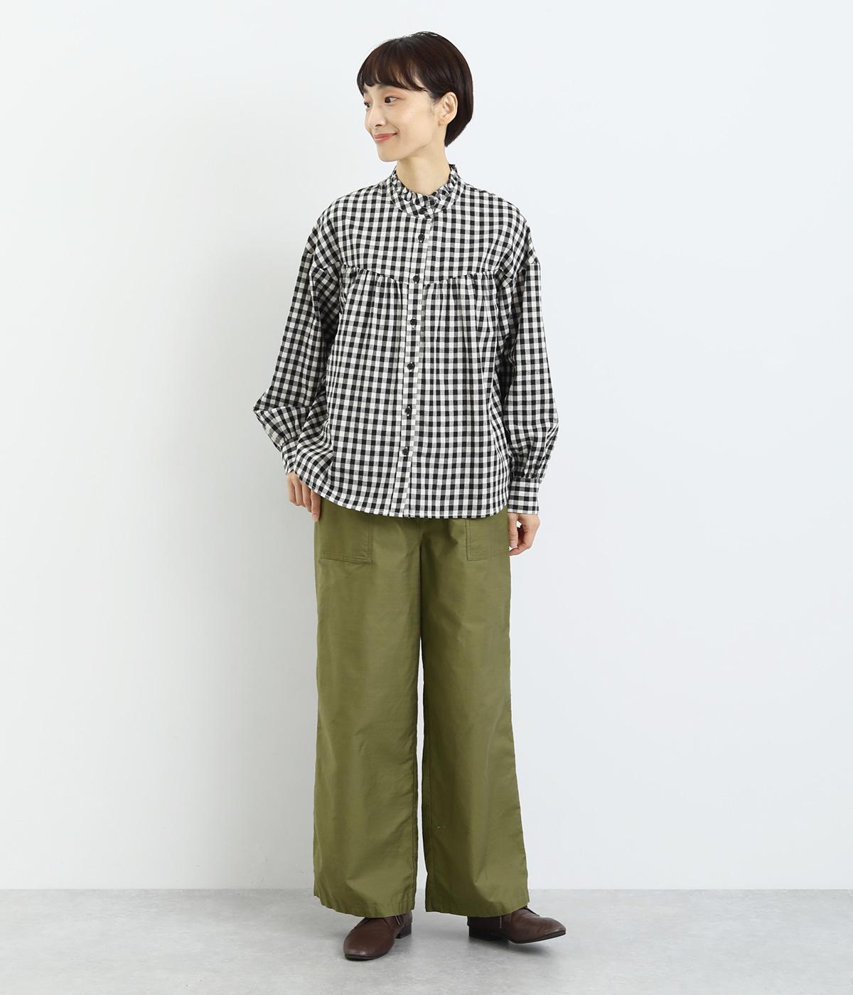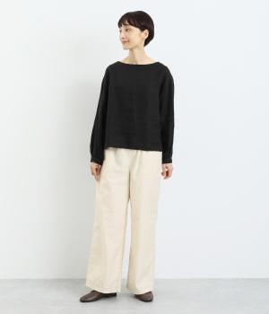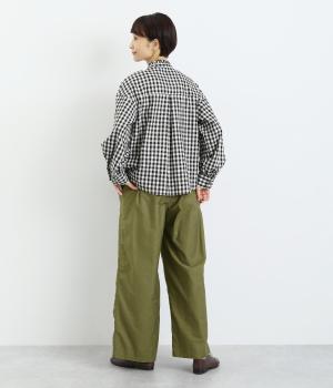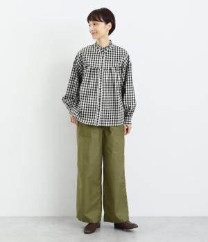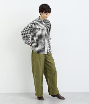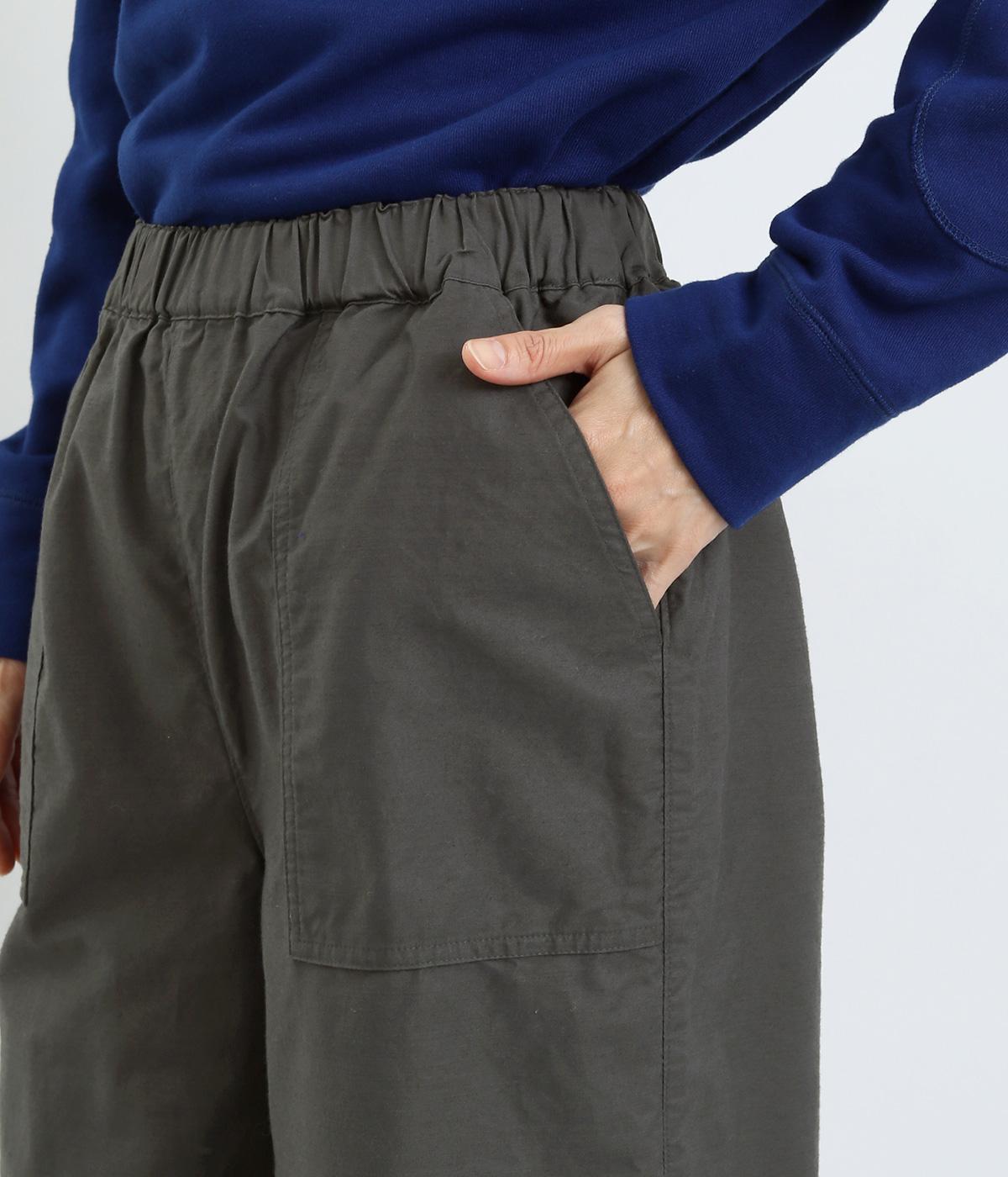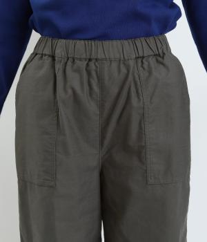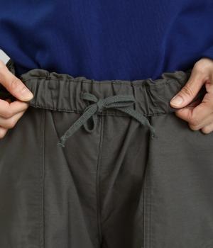 シックで整った品を感じさせるフォルムは、どんなスタイルとも合わせやすく、コーディネートを素敵にしてくれるアイテムです。フロントにある大きめのパッチポケットがほどよい抜け感を演出。腰まわりは総ゴムと紐で調整可能。動きやすさと安心感もかねそなえた一着です。