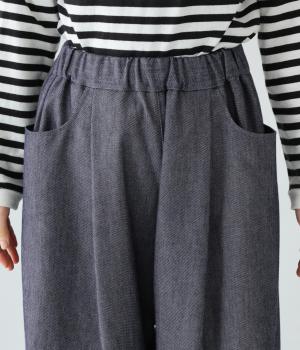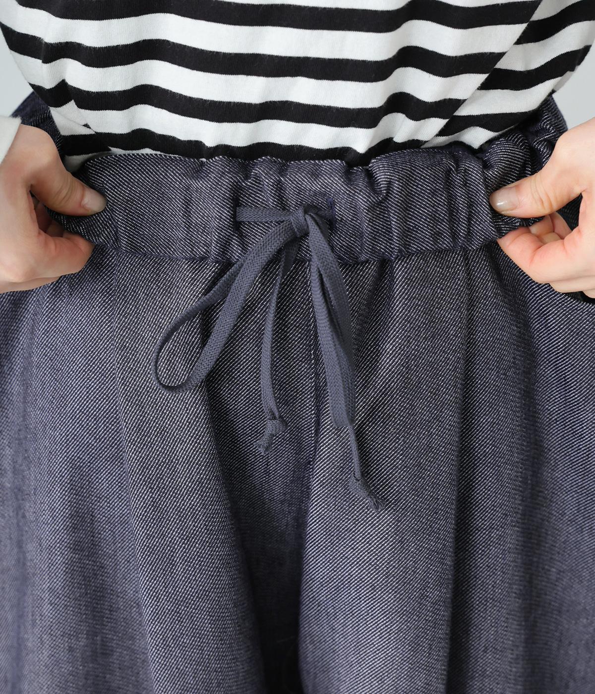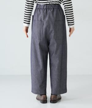 ワイドシルエットのきれいめに穿きこなせるデニムパンツ。腰まわりや太もも部分はゆったりとしたつくりで体のラインを拾いにくく、足首に向かって徐々に細くなっていくデザインが◎。ウエストは窮屈さを感じにくいオールゴム。