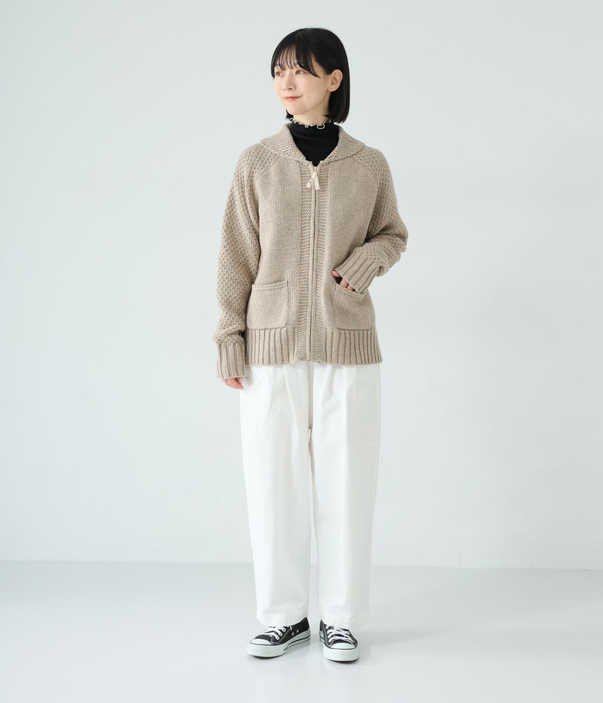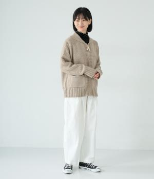 しっかりとした厚みとハリ感のあるタフなコットンツイル生地です。大人カジュアルスタイルを引き立てる、綿ならではのナチュラルな風合いが◎。季節をとわずデイリーに活躍します。