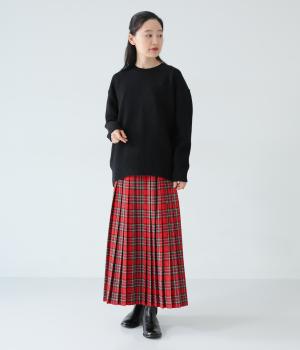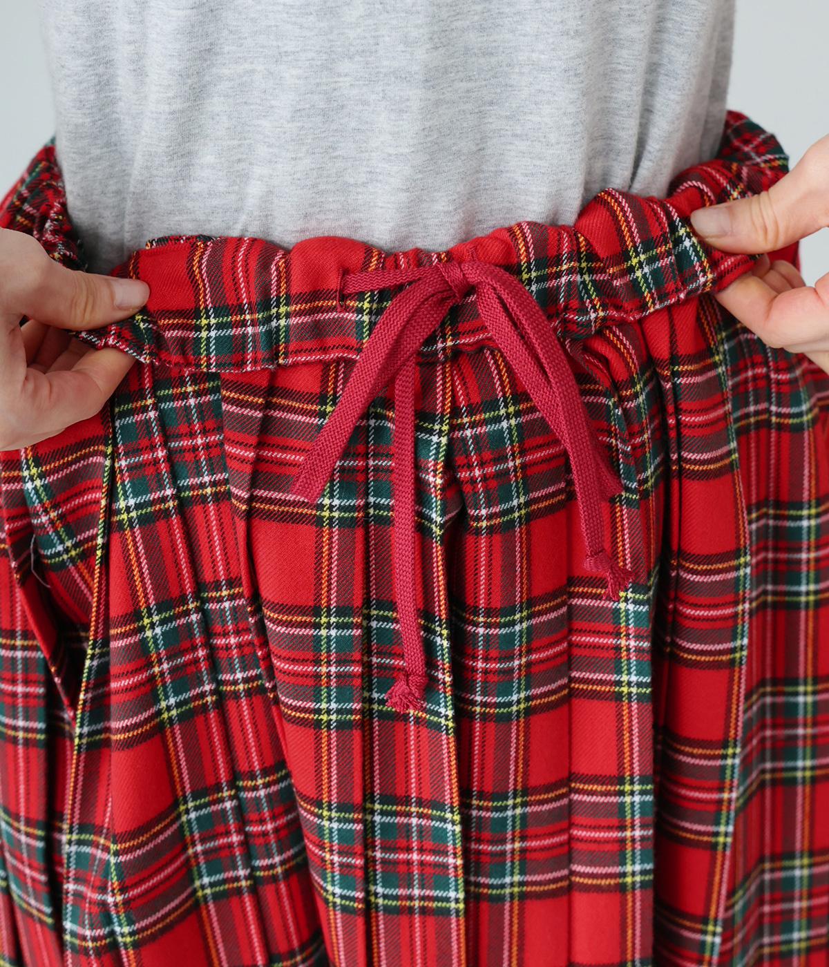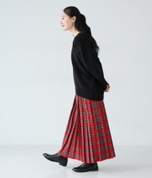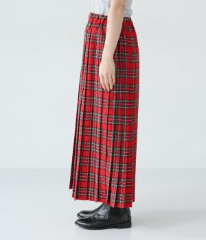美しいプリーツ加工と英国風のタータンチェックがトラッドな雰囲気を醸し出すロングスカート。流行に左右されない王道のデザインは、大人のコーディネートにもぴったり。ウエストはオールゴム仕様で、紐で調節ができます。
