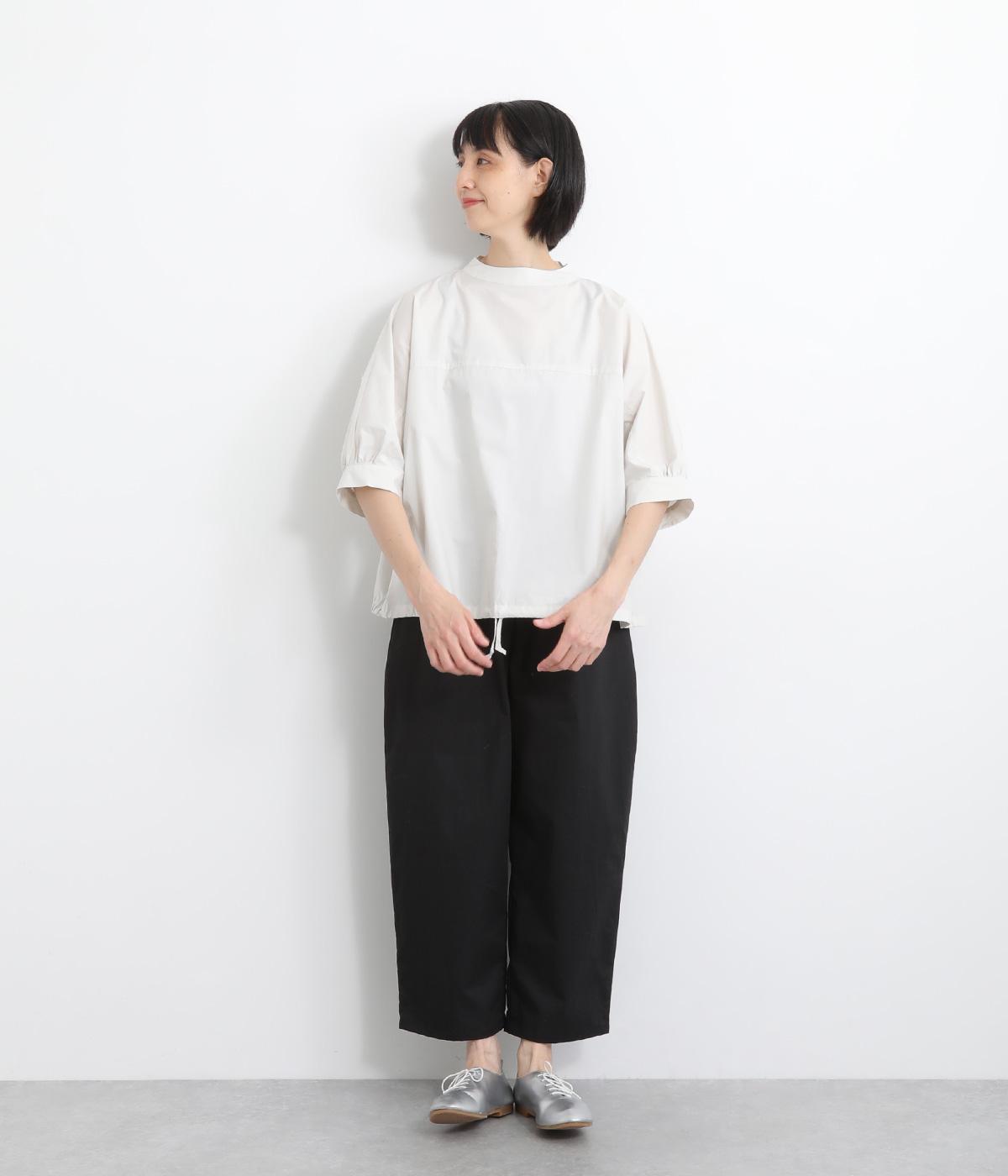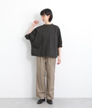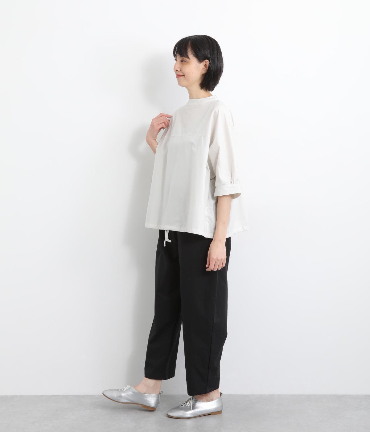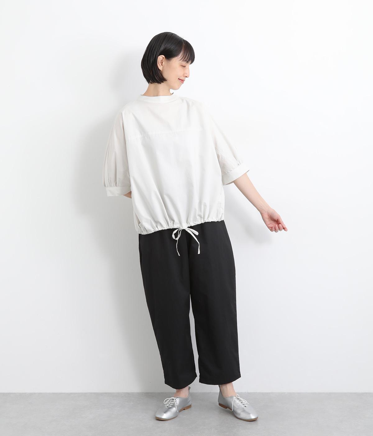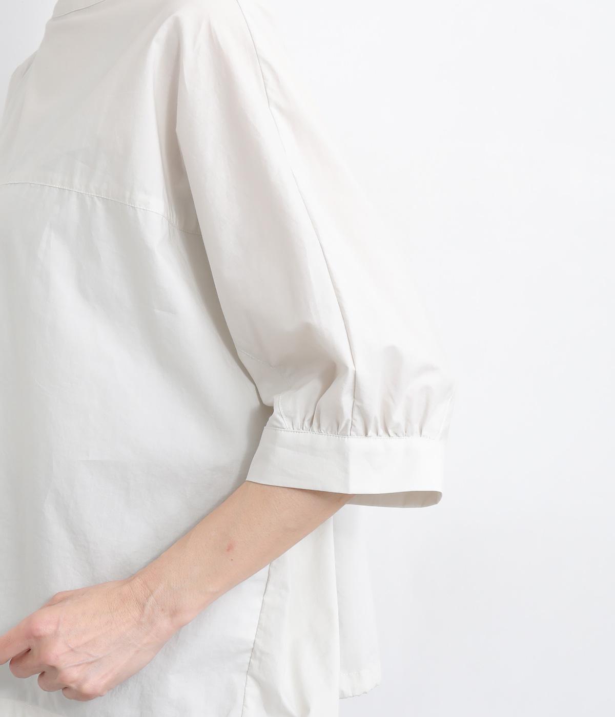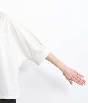 薄手でほのかにシャリ感のある、着心地軽やかなコットン生地を使用しています。ハリとふくらみがあるのでシルエットをきれいに描き、肌にもまとわりつきにくく通気性も◎。