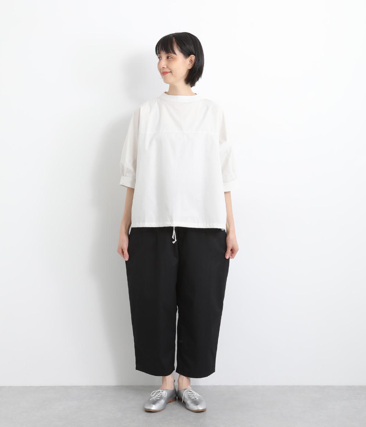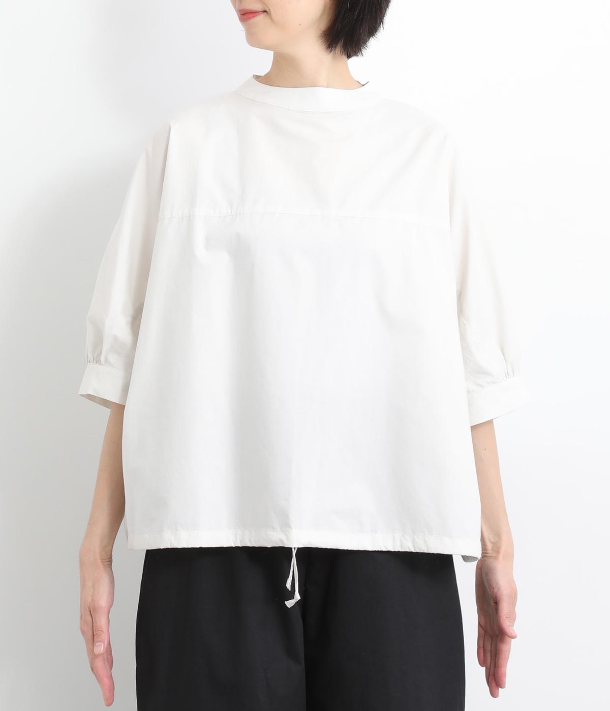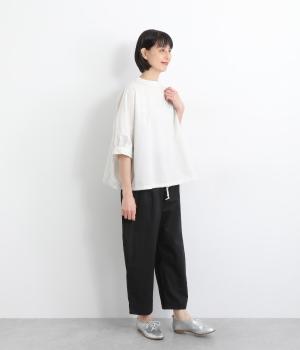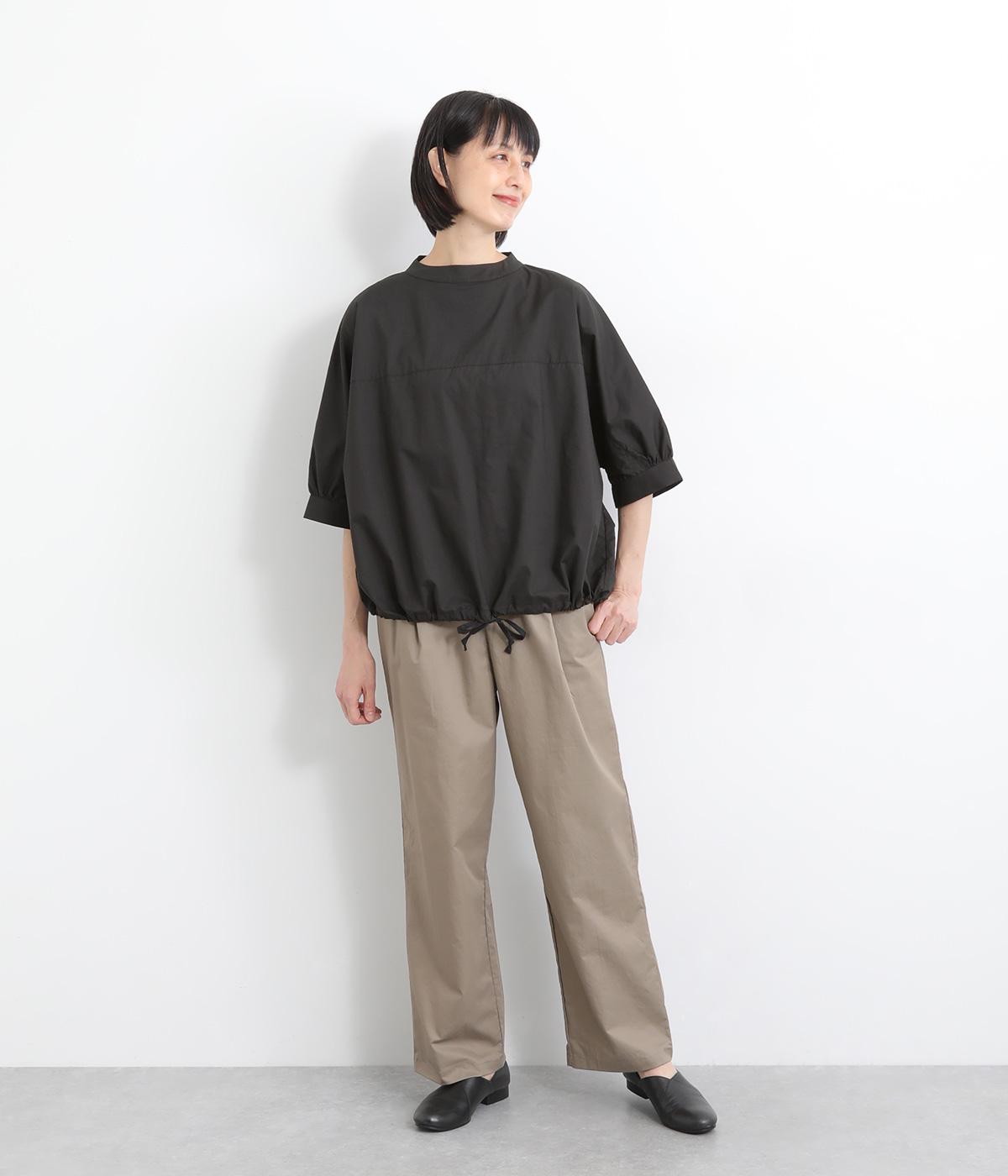 薄手でほのかにシャリ感のある、着心地軽やかなコットン生地を使用しています。ハリとふくらみがあるのでシルエットをきれいに描き、肌にもまとわりつきにくく通気性も◎。