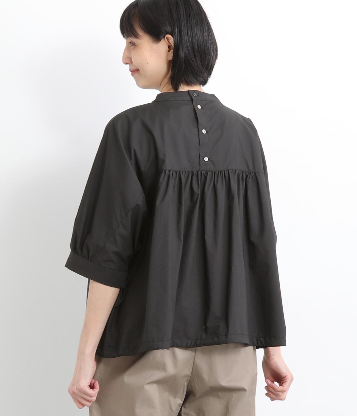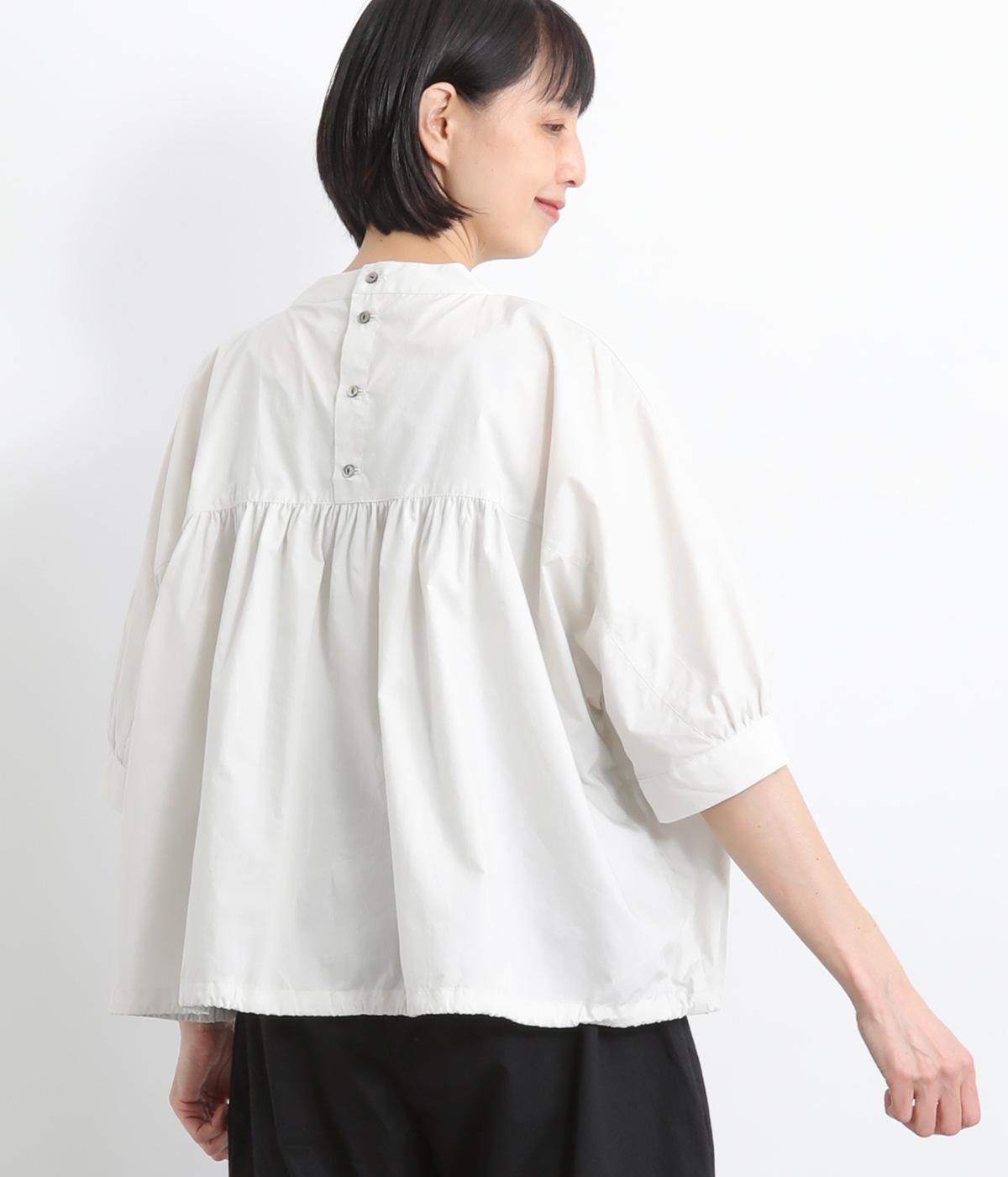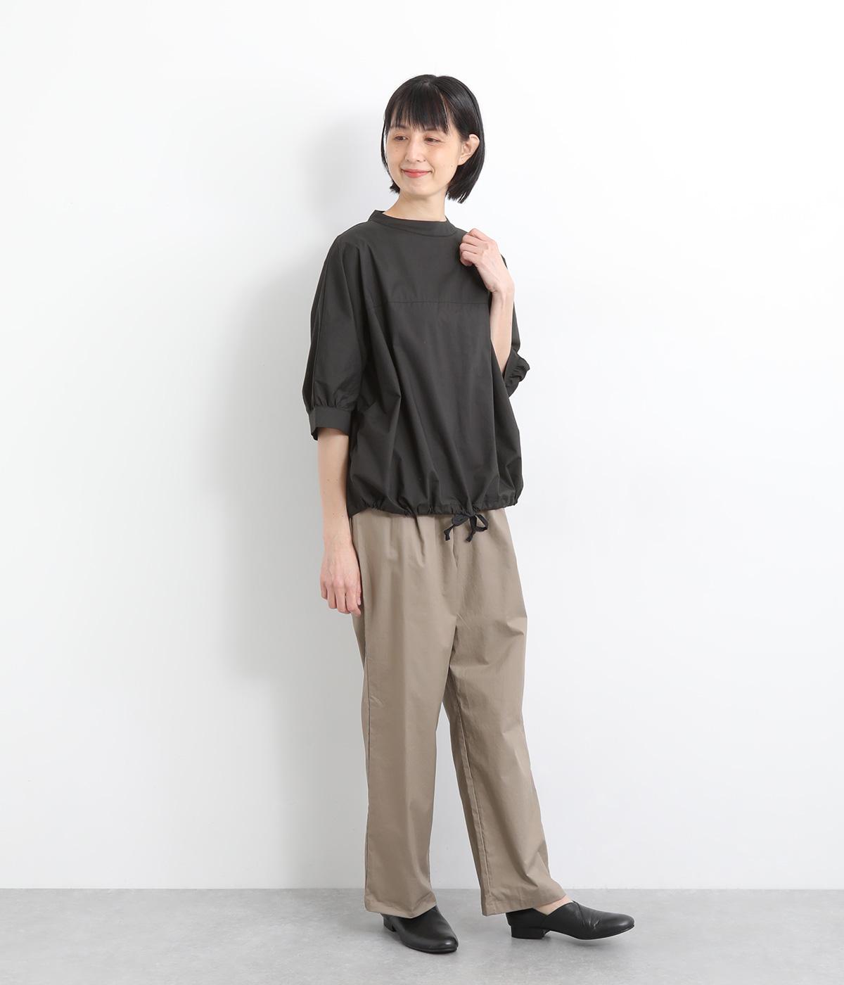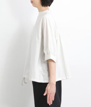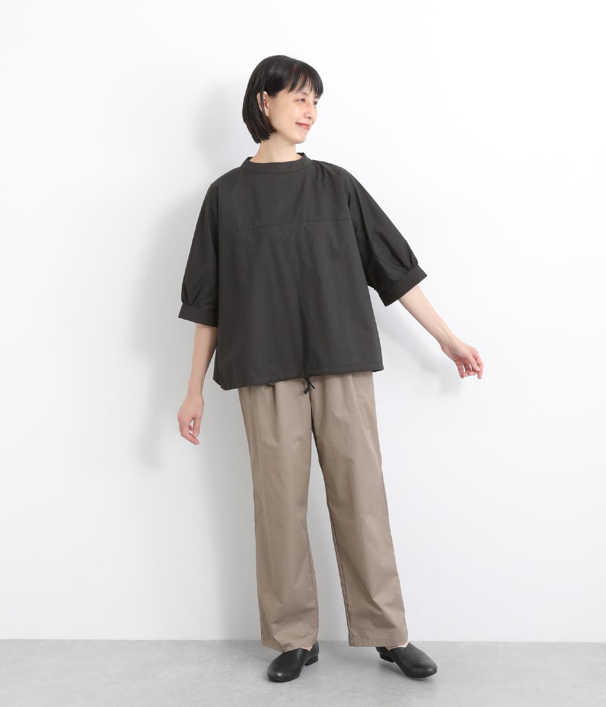 薄手でほのかにシャリ感のある、着心地軽やかなコットン生地を使用しています。ハリとふくらみがあるのでシルエットをきれいに描き、肌にもまとわりつきにくく通気性も◎。