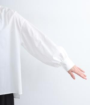 さらっとしたさわやかな心地よさのあるコットン生地を使用しています。薄手で軽く、適度なふくらみもあって着心地も快適。きれいめにもナチュラルにも着こなせる生地感です。