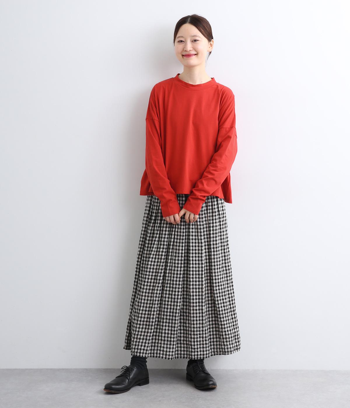 ドロップショルダーで、ゆとりを持たせたワイド幅のシルエットがシンプルながらもこなれ感を演出するプルオーバーです。メイン使いはもちろん、インナーとしても活躍する一枚。コンパクトな着丈が着まわし力抜群です。