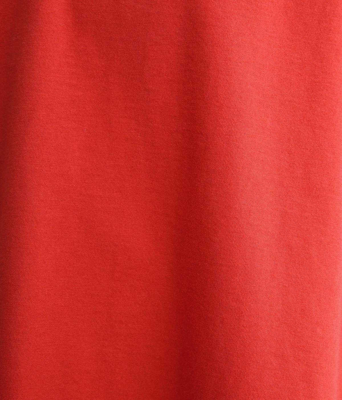 適度にストレッチがきいていて、やわらかな手ざわりのコットン天竺を使用しました。ストレスフリーな軽い着心地も魅力の生地です。