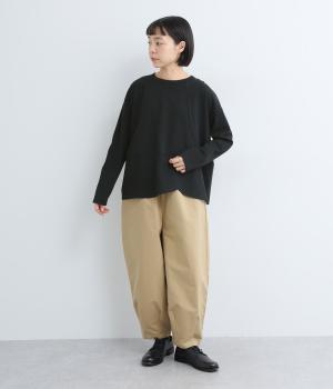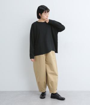 切り替えや重ねデザインで定番カットソーアイテムをアップデート。シンプルな無地でアイテム合わせしやすく、ヘムラインで動きをプラス。肩から袖にかけてゆったりとさせ、着心地の良さにもこだわりました。