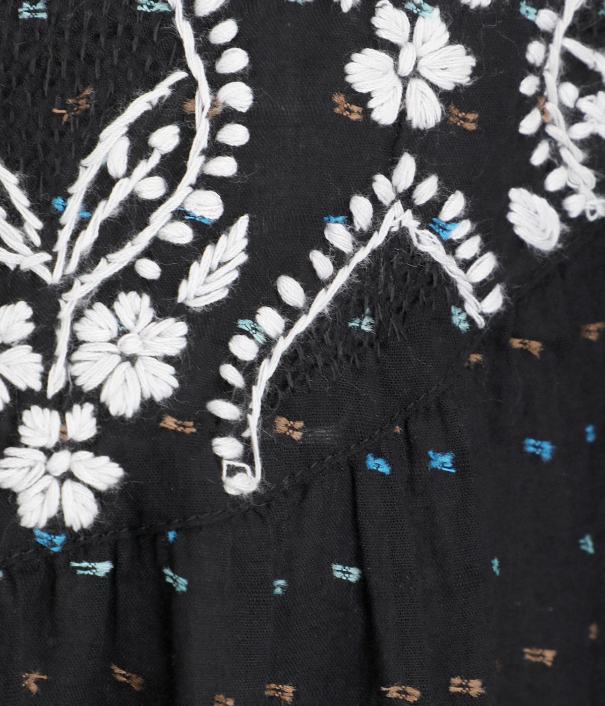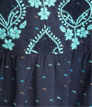 ふんわりと軽やかな生地に、インドの伝統的なラクノウ刺しゅうをほどこしました。一針ずつ丁寧に仕上げた手刺しゅうは、透かし模様のように繊細でやわらかな表情が魅力です。